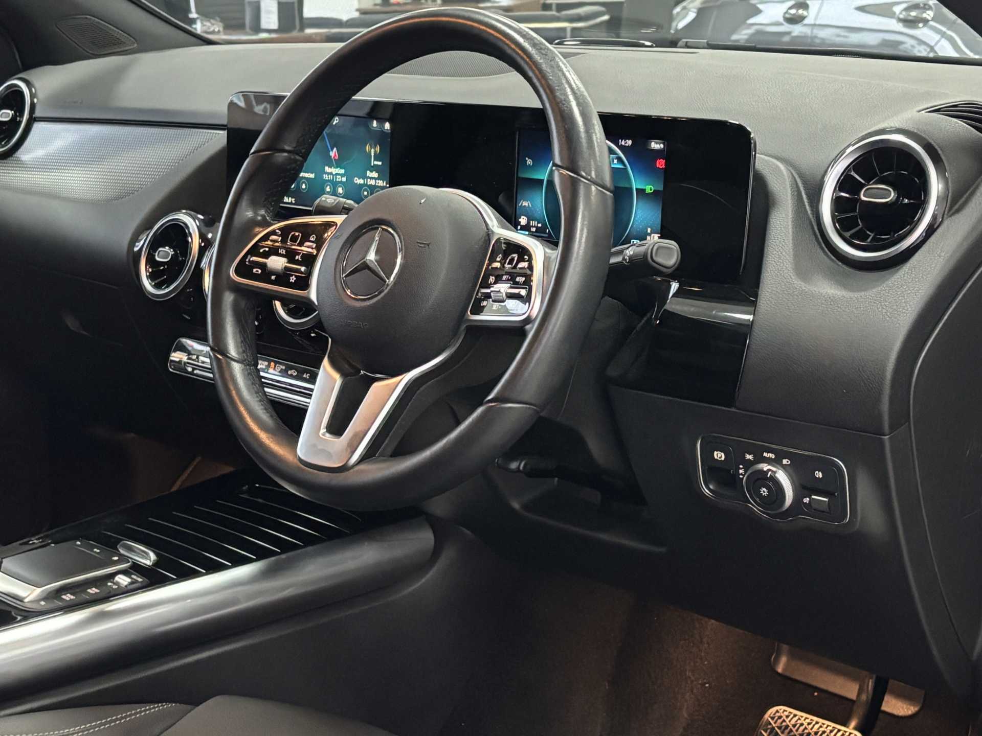"features": "180 degree reversing camera with parking guidelines, 7 inch digital instrument cluster display, 7\" touchscreen media display, Active lane keeping assist, Attention assist, Cruise control + speed limiter, DYNAMIC SELECT with a choice of driving modes (ECO, Comfort, Sport, Sport+ and Individual), Easy-pack tailgate, ECO start/stop function, Fluid level warning indicator for fuel, oil, coolant and washer fluid, Hard-disk navigation, Hey Mercedes Voice activation, Lamp failure indicator, Mercedes me connect including emergency call system, accident recovery, breakdown and maintenance management, Multi function trip computer, Outside temperature gauge, Owners manual and service booklet in English, Pre-installation for Vehicle Monitoring, Pre-installation for Vehicle set up, Pre-installation of private car share, Radio aerial integrated into front and rear windshields, Service indicator (ASSYST), Speed limit assist, Speed sensitive power steering, Status display for rear seat belts in instrument cluster, Comfort suspension, Rear axle multi-link, 2 USB ports (type C) in rear stowage compartment and one in front of center console, Bluetooth connectivity including audio streaming, DAB Digital radio, MBUX multimedia system with DAB digital radio and touchpad including satellite navigation, Media interface, Mercedes-Benz sound system - 100W, Adaptive brake lights, Aerial for GPS, Aluminium roof rails, Automatic headlamp activation, Beltline strips and weather strip in chrome, Black grained claddings with chrome parts, Body colour bumpers, Body colour door handles, Body colour door mirrors, Car wash function, Dark chrome front and rear apron trim, Electric front windows, Electric rear windows, Electrically adjustable and heated door mirrors with integrated LED indicators, Exhaust system with dual flow exhaust pipes (non-functional), Front bumper with underride guard in high gloss chrome, Front door sills with Mercedes-Benz lettering, Heated glass rear windscreen + timer control, Heated windscreen wash system, Interior mirror with black reading lamps and frameless, LED high performance headlamps with integrated LED daytime running lights, LED tail lights in two piece design, LED third brake light, Rain sensor windscreen wipers, Rear fog lights, Roof spoiler, Simulated body styling underguard in matt chrome, Single lamella radiator grille painted in silver matt with chrome inlay and black dots, 12V power socket in centre console, 3 spoke leather multifunction sports steering wheel, 40:20:40 split folding rear seat backrests, Adjustable head restraints, Air conditioning - Two zone thermotronic luxury automatic climate control with display, Artico man-made leather/Fleron fabric upholstery, Auto Mercedes-Benz child seat recognition sensor, Black roof lining, Comfort seats, Courtesy light in boot, Floor mats in velour, Front centre armrest with stowage, Gearshift paddles, Heated front seats, Illuminated glovebox, Leather trimmed gearknob, Luggage net on driver/front passenger seat backrest, Manually height and reach adjustable steering column, Multi-gesture touchpad control on center console, Net in front passenger footwell, Stowage compartment in centre console, Stowage compartment with retractable cover, Sunvisors with illuminated vanity mirrors, Twin front cup holders, Two outer rear seat isofix and top tether child seat fixing points, Comfort seat pack - GLA Class, Interior lighting with light and sight pack - GLA, Load compartment pack - GLA, 3 rear 3 point seatbelts, ABS with Brake Assist, Active bonnet pedestrain safety measure which detects an impact and raises bonnet by 65mm, Active brake assist includes forward collision warning system with autonomous braking, Adaptive brake assist with hold function and hill start assist, Bonnet with power domes, Brake pad wear warning indicator, Childproof locks manually operated for rear doors and electrically operated for rear power windows, Crash responsive emergency lighting, Driver and passenger head and side airbags, Drivers knee airbag, Dual stage driver/passenger airbags, Electronic parking brake, ESP curve dynamic assist, ESP with ASR, Front and rear seatbelt reminder, Front passenger seat occupancy sensor, Tyre pressure monitoring system, Warning triangle and first aid kit, Window airbags, Alarm system with immobiliser and interior protection -Thatcham category 1, Keyless Go starting function, Remote central locking and crash sensor with emergency opening function, Vehicle key with decorative surround in chrome, Chrome air vent surrounds, Spiral look trim, 18\" 5 twin spoke light alloy wheels aerodynamically optimised painted in black with a high sheen finish, Summer tyres, Tirefit tyre sealant kit, ",