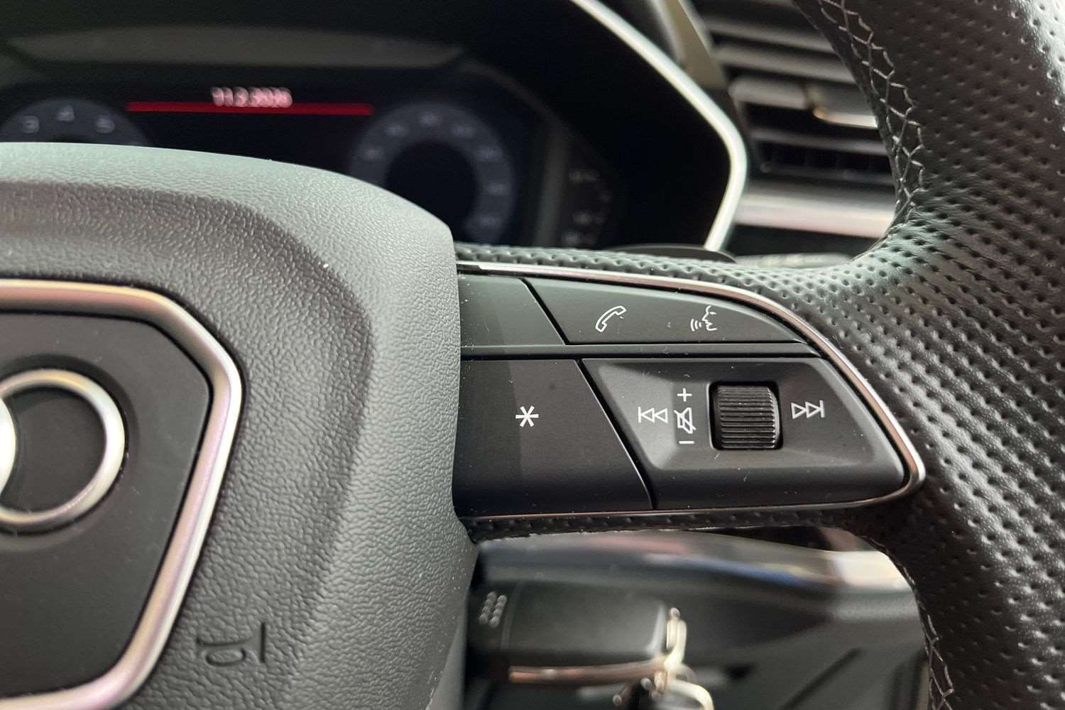 "3 spoke leather wrapped multi function steering wheel",
