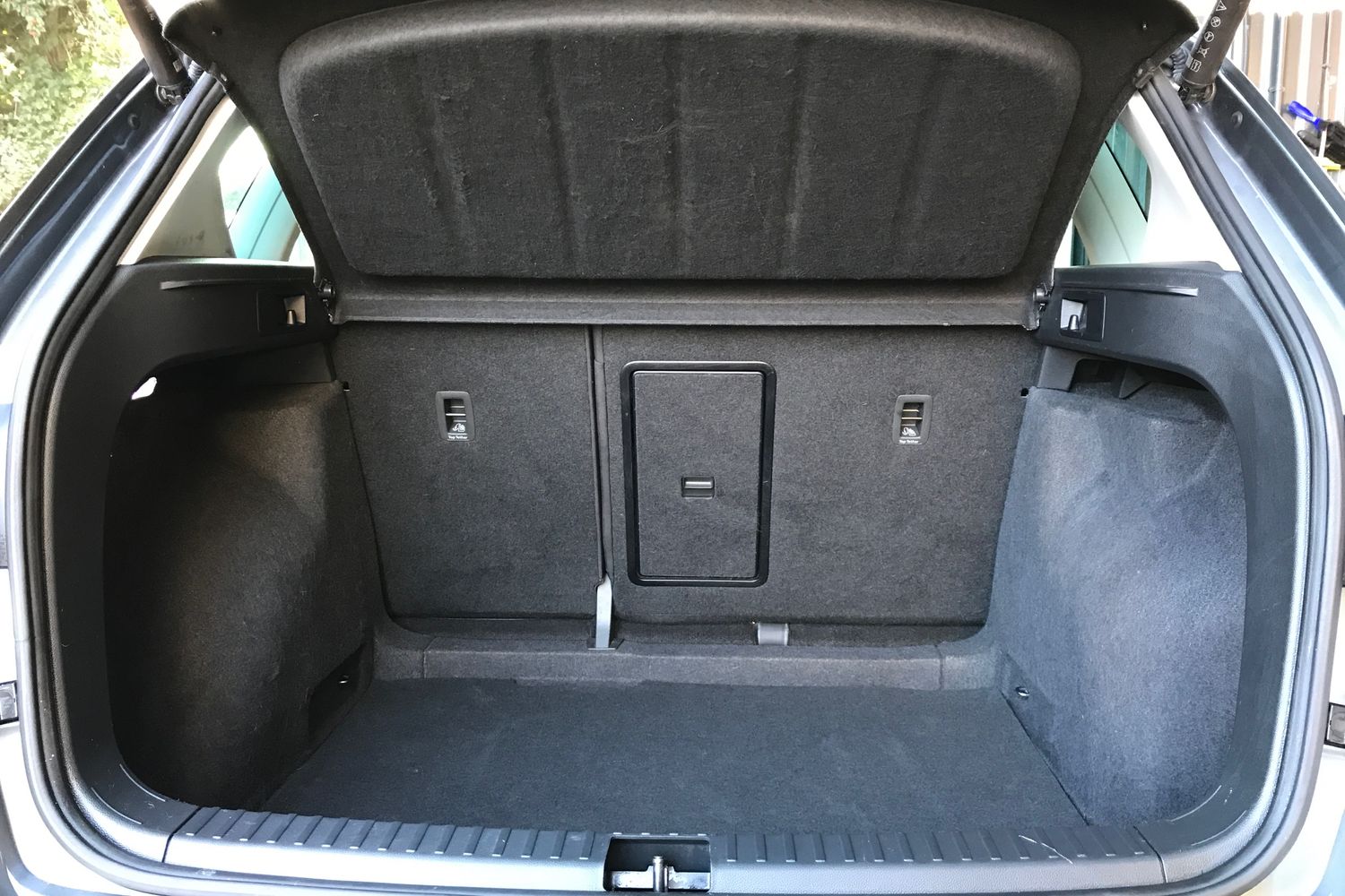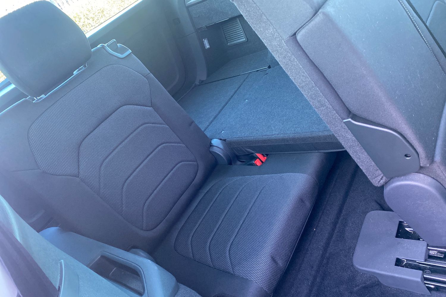 "Rear bench seat, split folding, longitudinally movable and folding with load-through hatch and centre armrest",