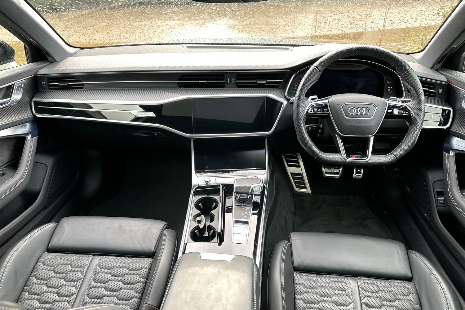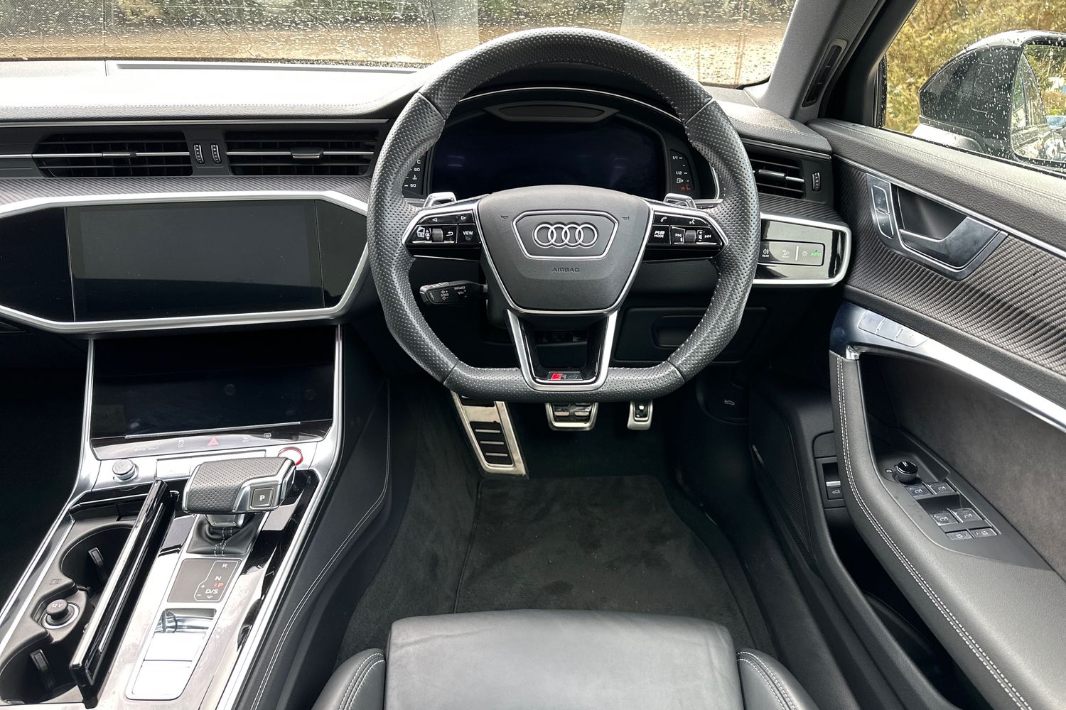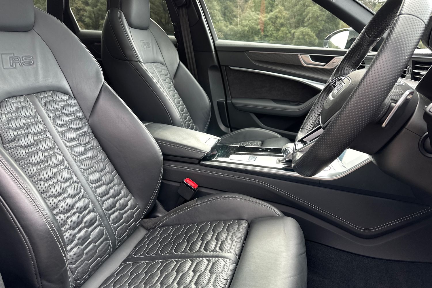 "S badging on the steering wheel",