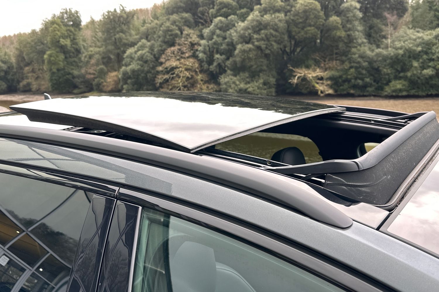 "Front and rear side air inlets in grained matt black with dark liquid chrome frame",