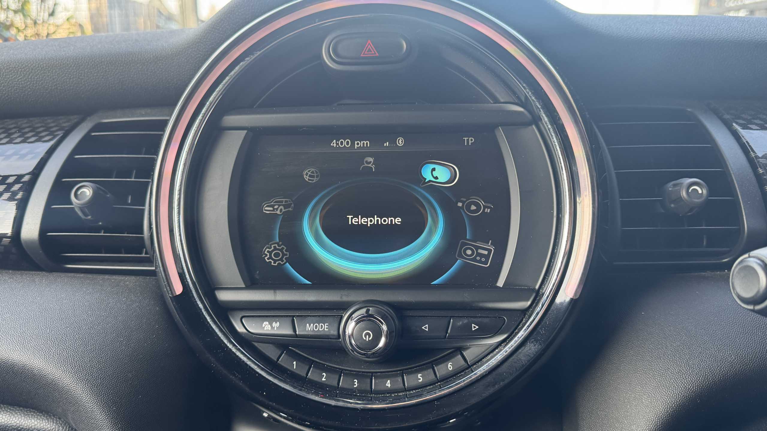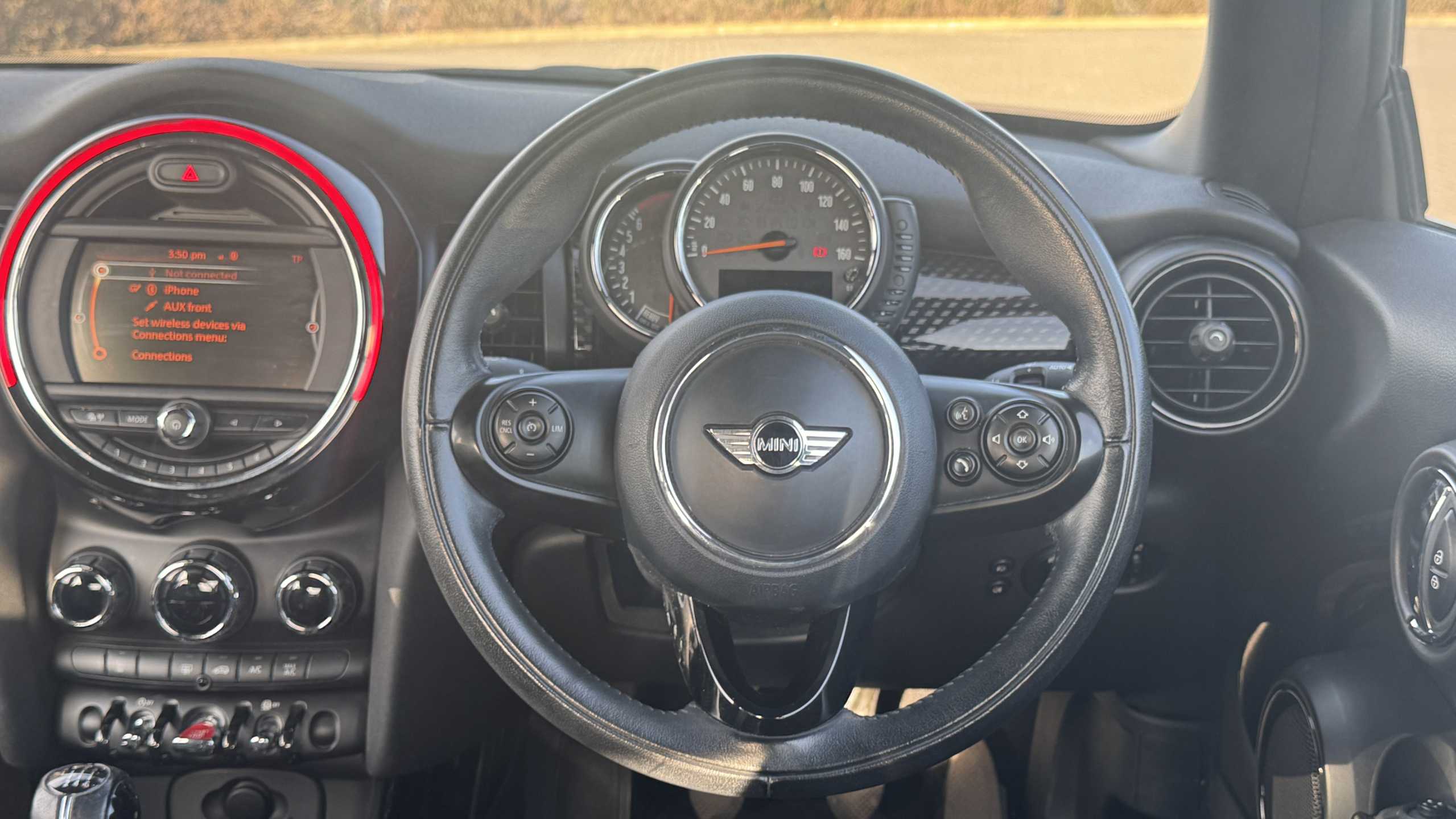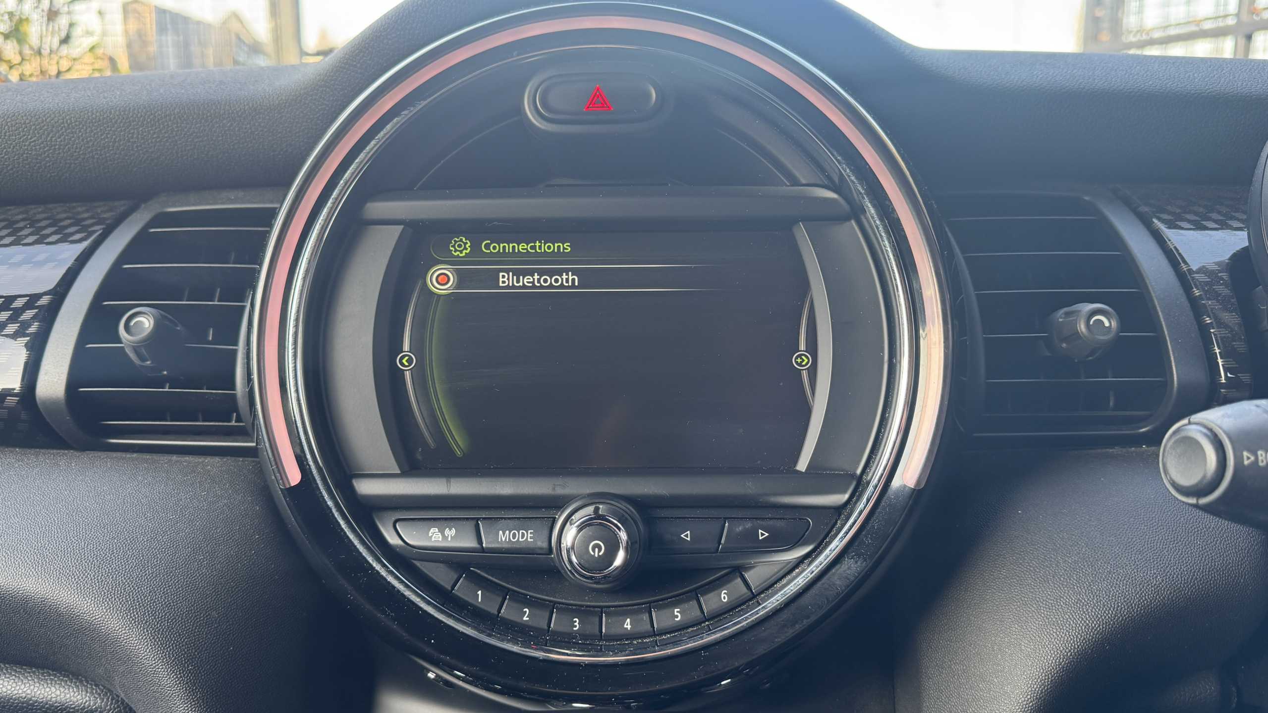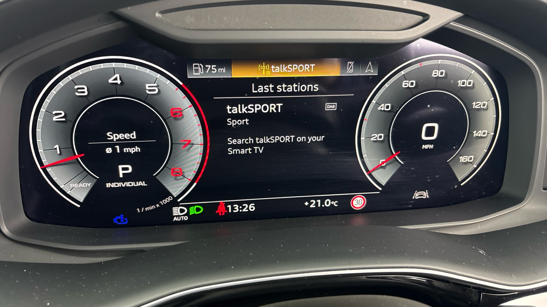 "Central analogue rev counter with black dial face",