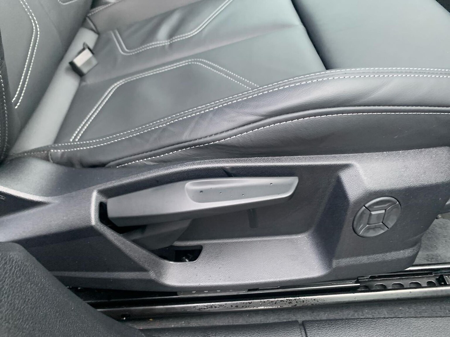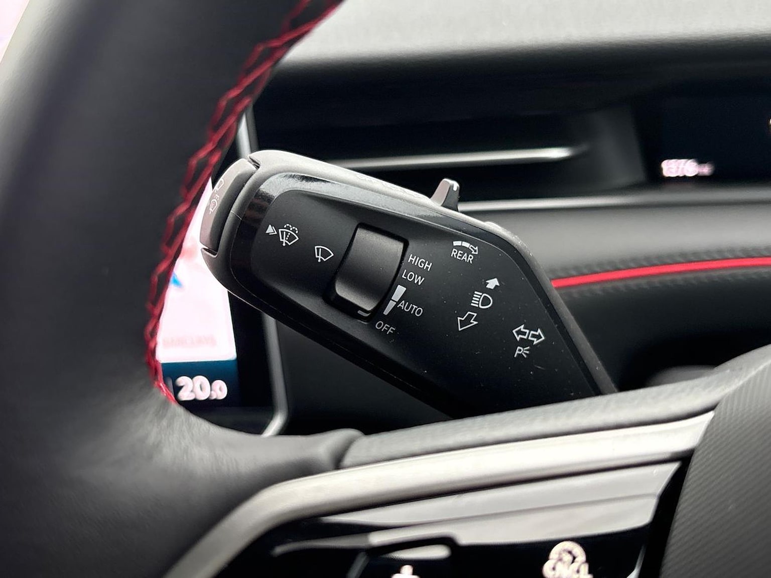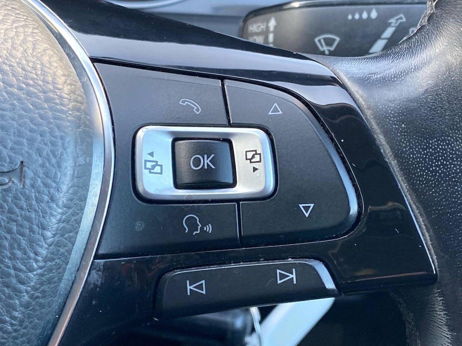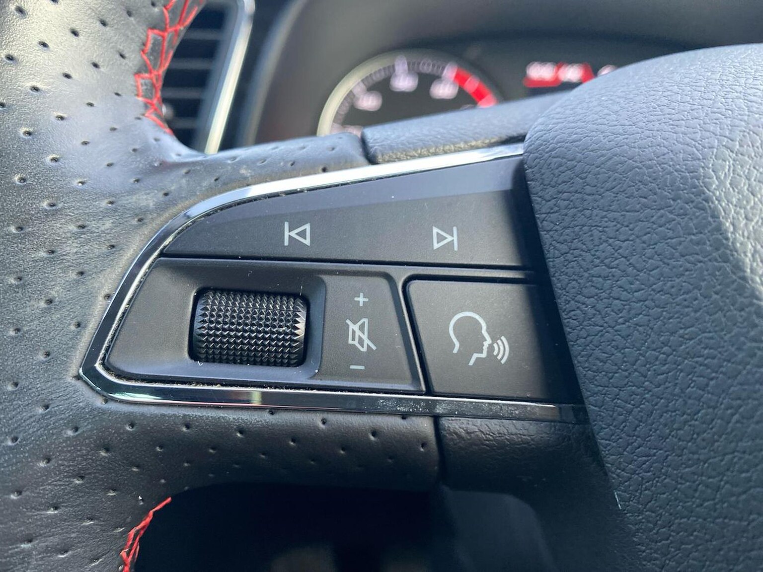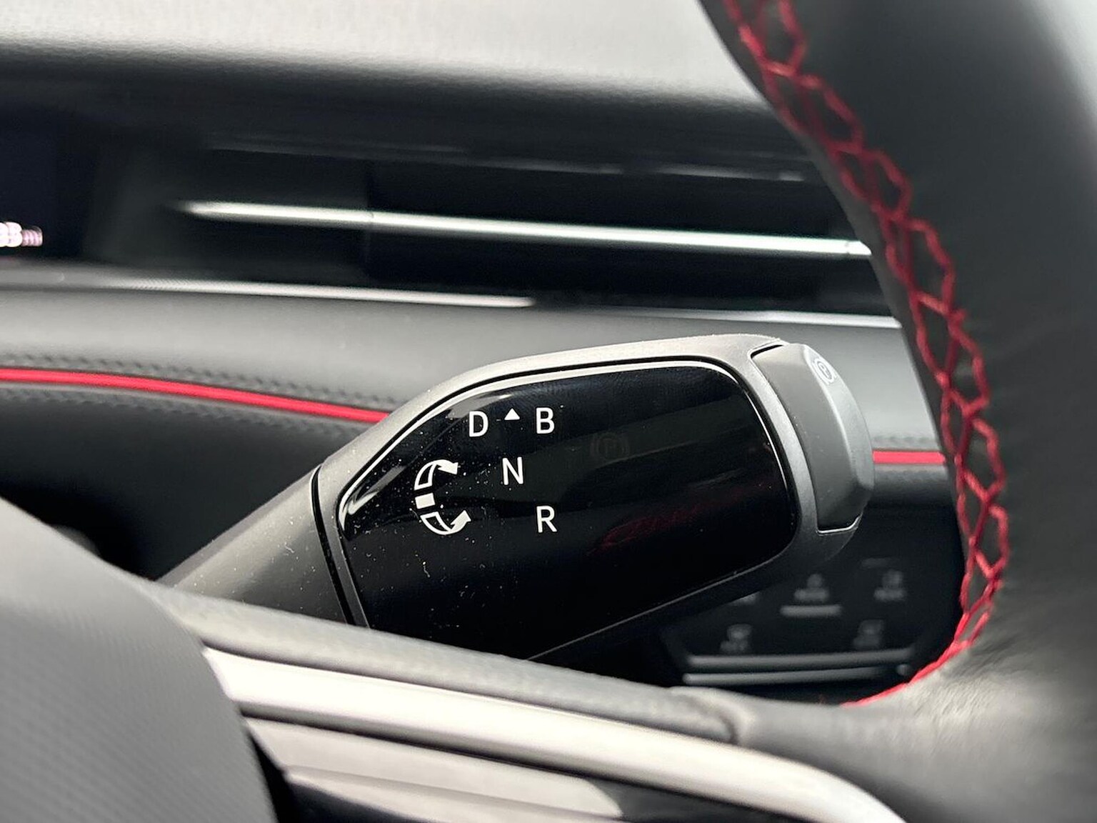 "3 spoke flat bottomed multi-function plus leather steering wheel with S badging, grips in preforated leather, contrast stitching and paddle shift",
