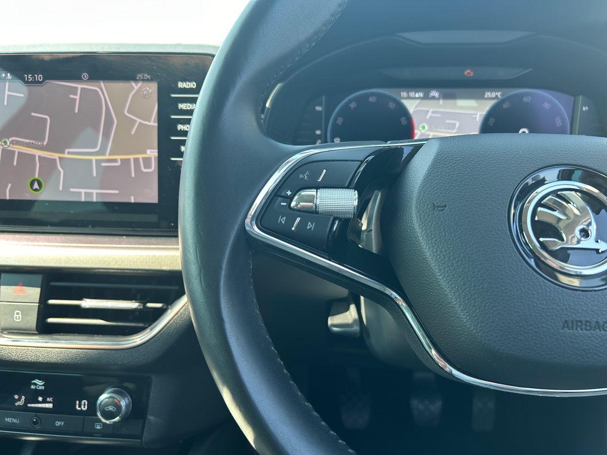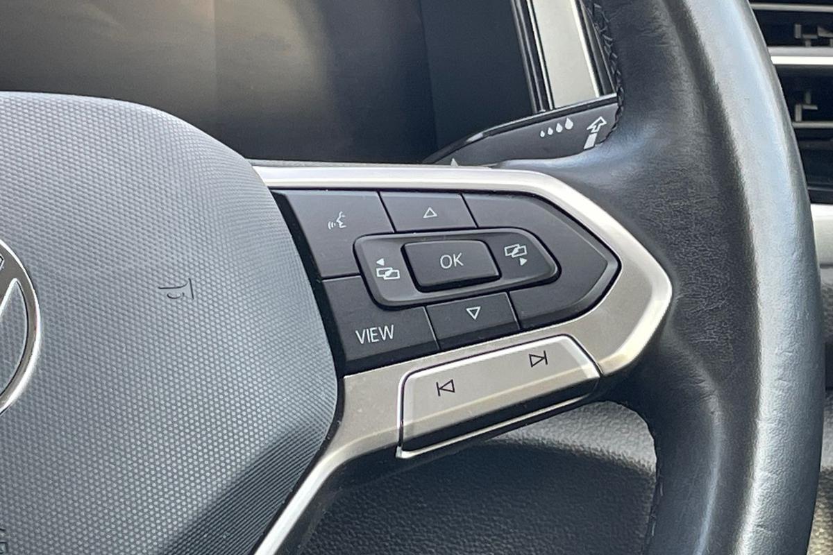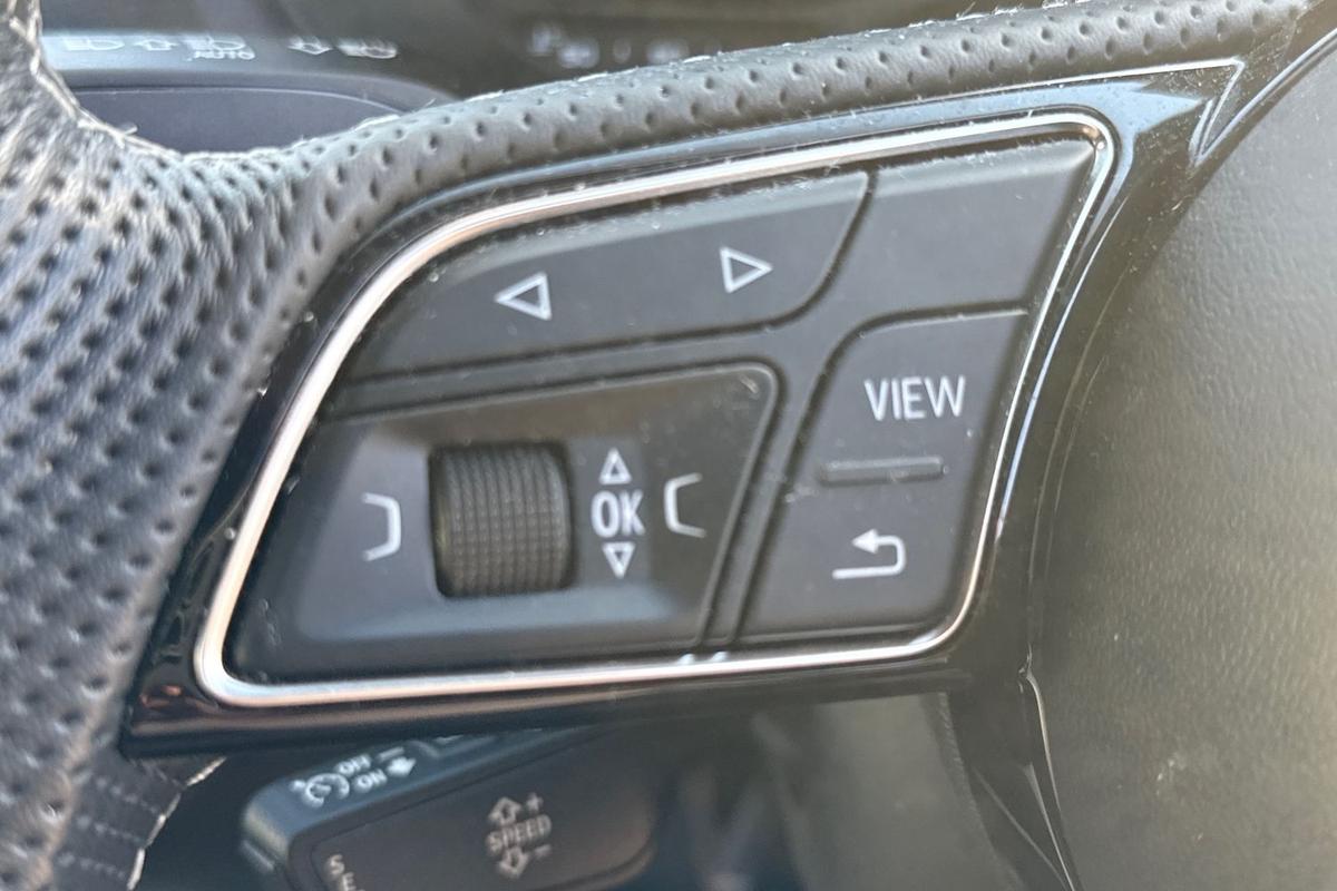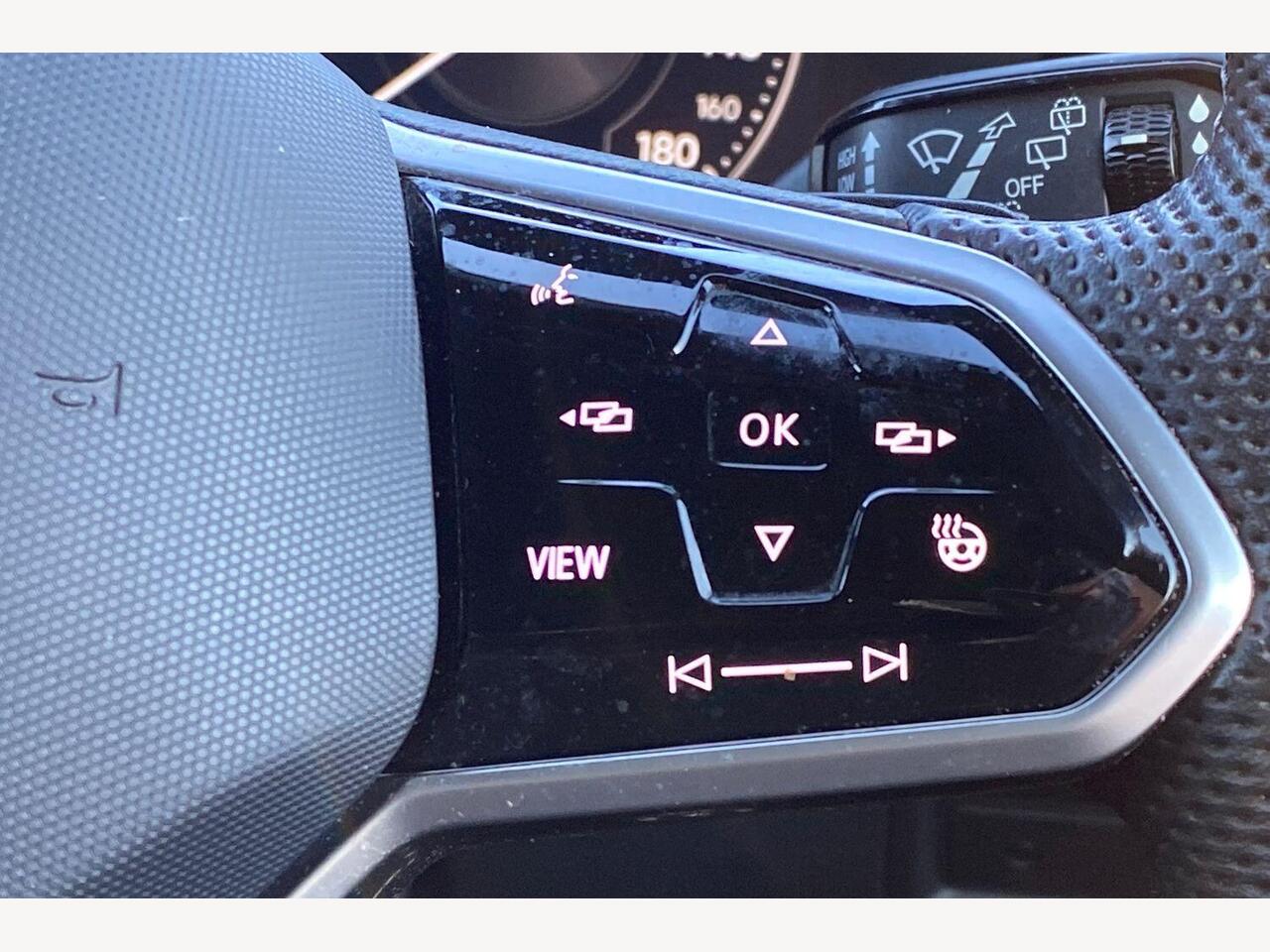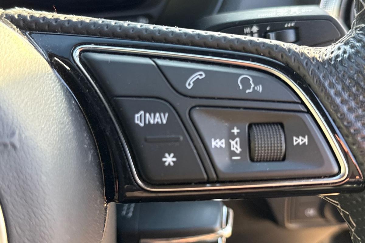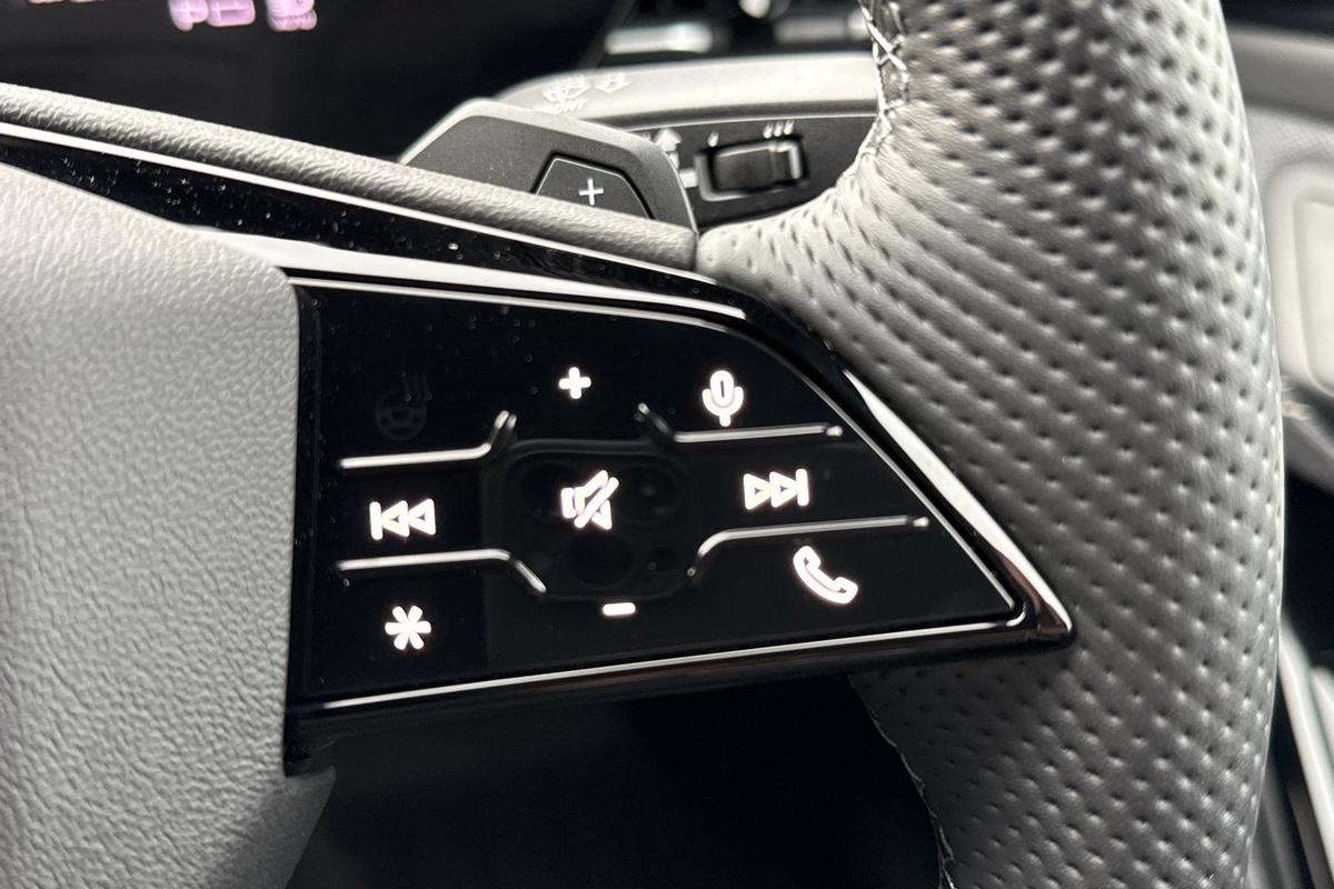 "Steering wheel touch control buttons for audio and onboard settings",