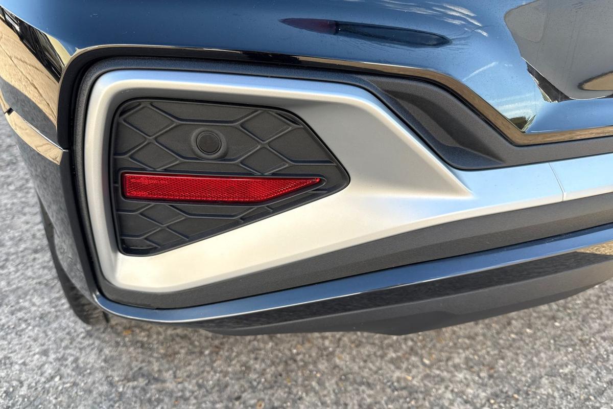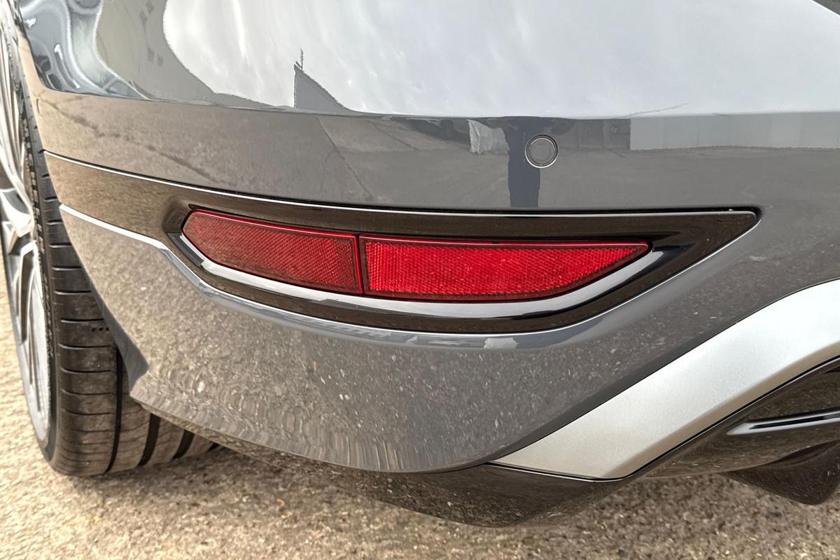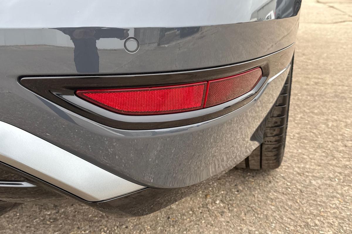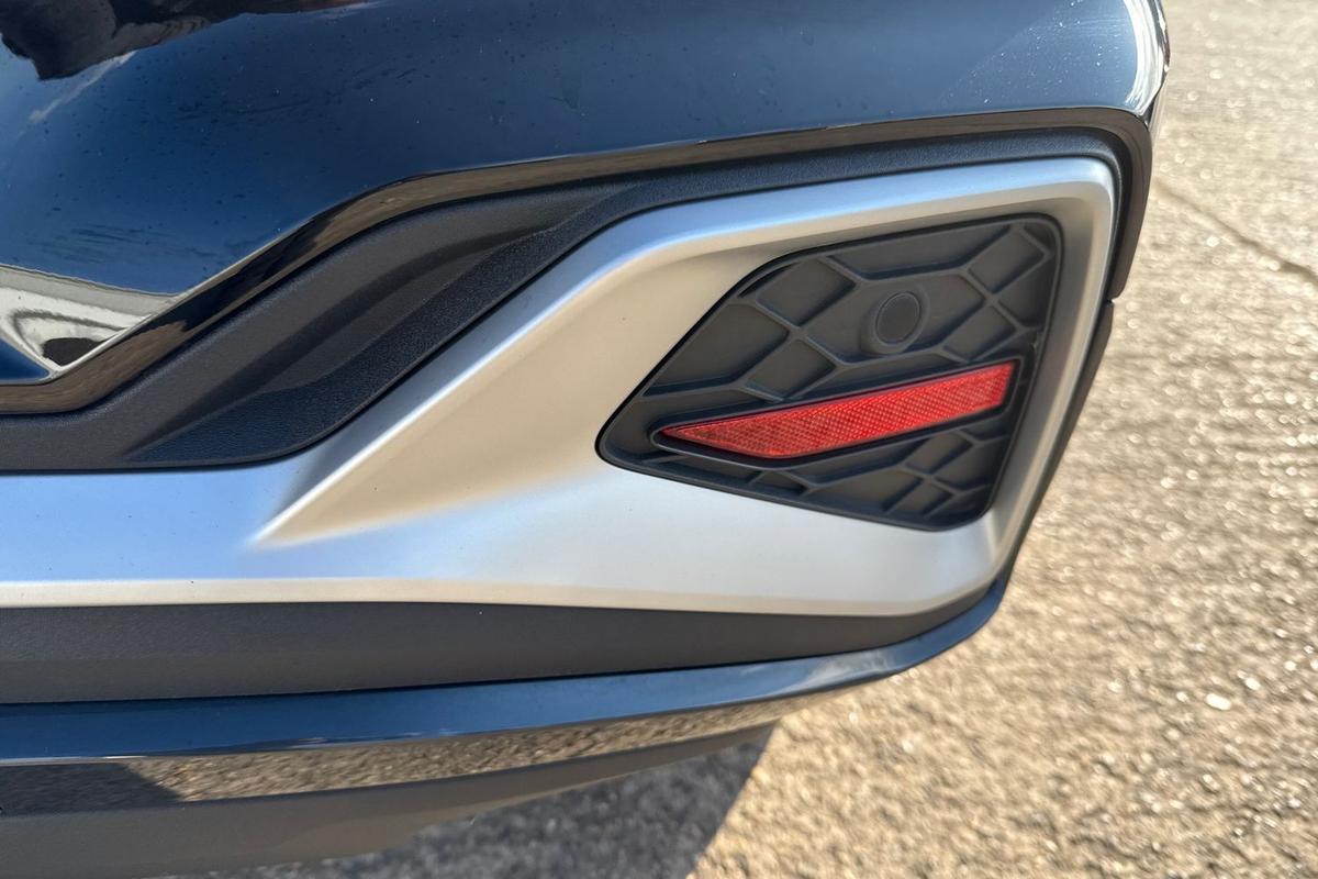 "Visible twin pipe exhaust system integrated into bumper"