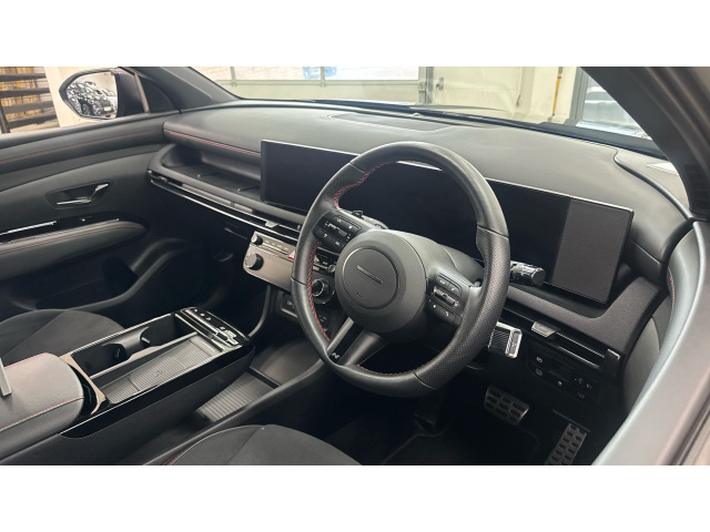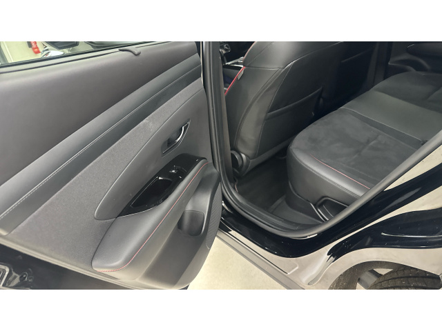 "features": "12.3\" LCD display with driver's supervision instrument cluster, 12.3\" widescreen navigation with bluelink and mapcare, Bluetooth system, Cruise control - smart adaptive speed control with stop and go function, Digital clock, Drive mode selector, Driver attention warning, E-call, Emergency stop signalling system, Forward Collision Avoidance Assist (FCA) - Car, Pedestrian and Cycle, Forward Collision Avoidance Assist Junction Turning (FCAJX), Front and rear parking sensors, Highway Driving Assist (HDA), Hyundai road side assistance, Intelligent speed limit assist, Lane follow assist, Lane keep assist, Over the air updates(OTA), PAS, Rear camera and guidance parking system, Rev counter, Smart power tailgate, Tailgate open warning light, Trip computer, Trip odometer, Voice recognition, Water temperature gauge, Windscreen washer fluid sensor and warning indicator, Wireless Apple CarPlay/Android Auto, Wireless phone charging pad, 2 front and 2 rear speakers with 2 tweeters, 2 front and 2 rear USB-C ports, DAB Digital radio, Steering wheel mounted audio/phone controls, Adjustable intermittent front windscreen wipers with aero wiper blade, Auto dimming rear view mirror, Automatic defog system, Automatic headlights with dusk sensor, Automatic windscreen wipers with rain sensor, Body colour bumpers, Body colour door mirrors with integrated indicators, Body colour exterior door handles, Body coloured wheel arches, Electrically adjustable, heated and power folding door mirrors, Follow me home headlights, Front and rear electric windows with anti-trap mechanism and one touch control, Front fog lights, Glossy black bumper mouldings, LED 3rd brake light, LED daytime running lights, LED Headlights, LED rear lights, Positioning Lights - LED, Privacy glass - Rear windows and tailgate, Rear side wing doors, Rear wash/wipe with intermittent wipe setting, Roof rails, Soft touch rear door paneling, Tinted glass with windscreen shade band, Trailer stability assist, 12V power outlets in front console and luggage compartment, 3 seat bench in 2nd row, 40/20/40 split folding rear seat, 64 colours interior ambient lighting, Adjustable head restraints (Up and down), Cupholders in rear armrest, Door courtesy lights, Driver and passenger sunvisors with illuminated LED vanity mirrors, Driver's seat manual height adjust, Dual zone climate control, Front and rear door pockets, Front armrest with storage box, Front centre console and door bottle holders, Heated front seats, Heated steering wheel, Height/reach adjustable steering column, Illuminated/air conditioned glove compartment, ISOFIX child seat anchorage points attached on outer rear seats, Leather wrapped steering wheel and gear knob, Leather/faux textile suede upholstery, LED interior lighting, Luggage compartment lighting, Luggage cover, Luggage hooks, Luggage net, Manual height adjustable front passenger seat, Map and reading lights, Metal pedals, Rear seat remote folding function, Rear side window sunblind, Reclining rear seats, Retractable load cover, Single front passenger seat, Sunglasses holder, Touch sensitive climate controls with temperature dials, TUCSON branded metal door scuff plate, Underfloor boot compartment, N Line design package - Tucson, N Line interior design package - Tucson, Trailer wiring package - Tucson, 3x3 point rear seatbelts, Active bonnet, Airbag - Front, front side, curtain and centre front airbags, Anti-lock brake system (ABS), Brake assist function, Childproof rear door locks, Curtain airbag roll over sensor, Downhill brake control, Electric parking brake, Electronic stability control, Front and rear seatbelt reminder, Front passenger airbag deactivation switch, Front seatbelt pretensioners, Hill start assist control (HAC), Multi-Collision braking, Outer rear seatbelt height adjustment, Seatbelt height adjustment for front seats, Traction control, Tyre pressure monitoring system with individual tyre pressure display - TPMS, Vehicle stability management, Deadlocks, Immobiliser, Locking wheel nuts, Remote control central locking, Smart key with keyless entry and engine start/stop button, Speed sensitive auto door locking, Thatcham category 1 alarm, 19\" Alloy wheels, Tyre repair kit, ",