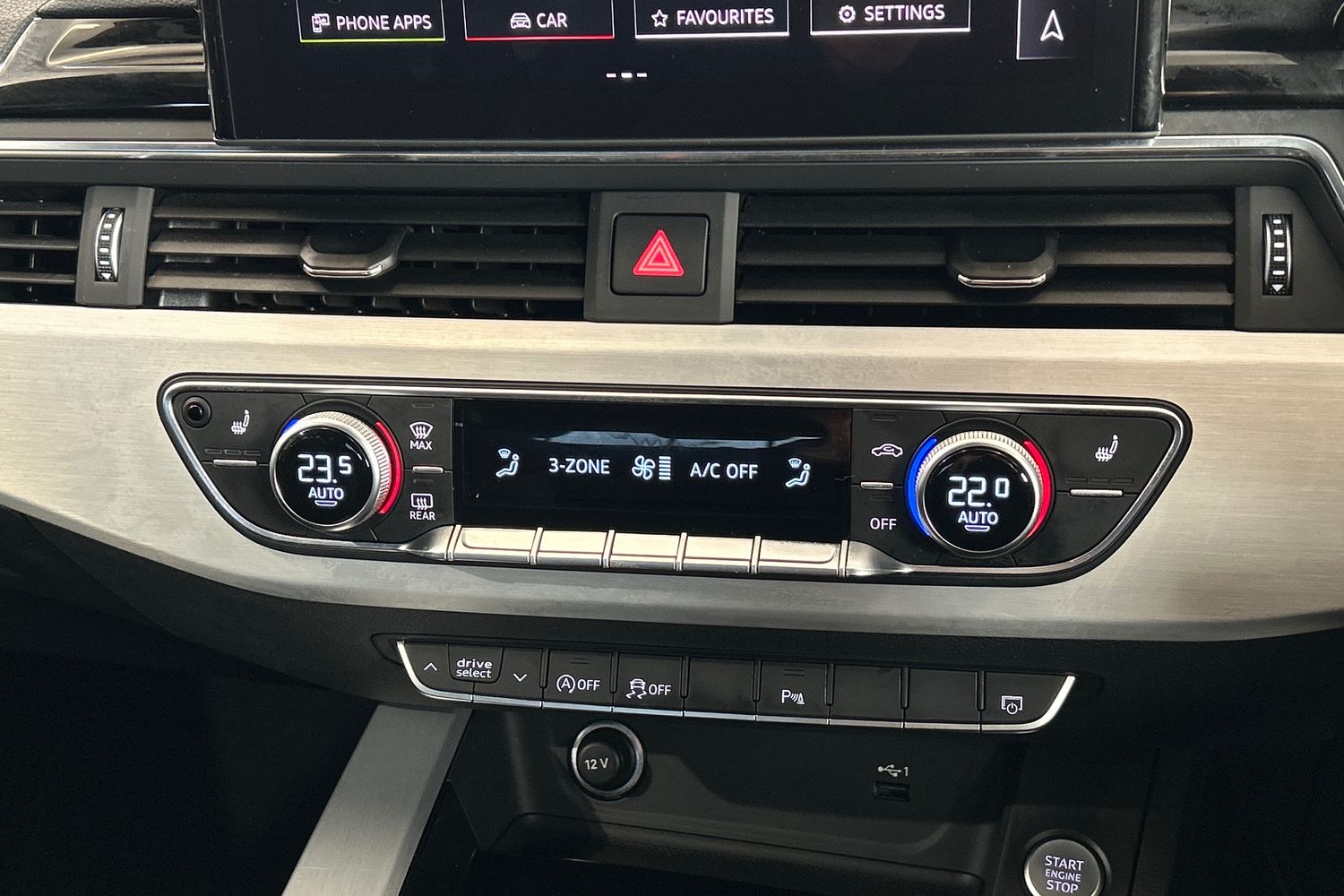 "12V socket in front + rear tunnel console",