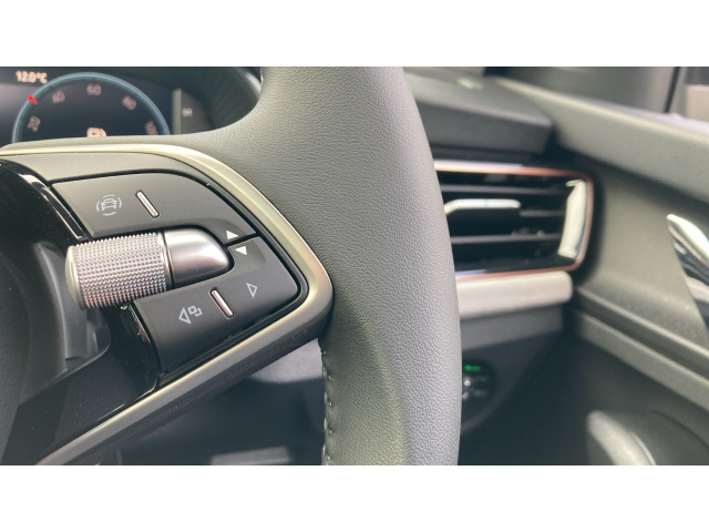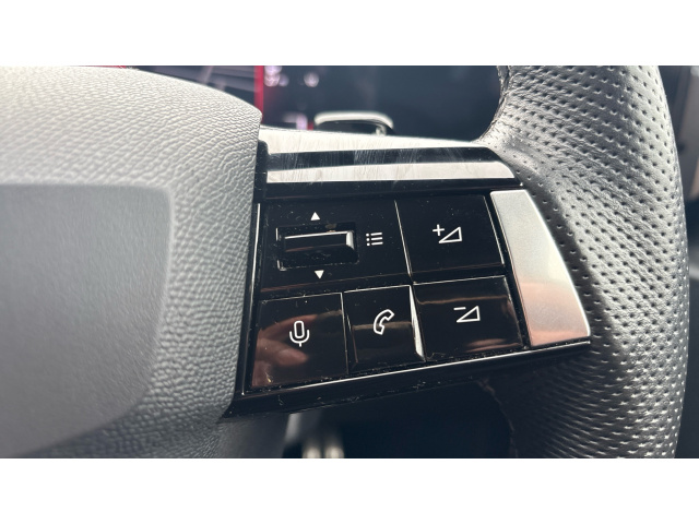 "3 spoke heated flat bottom leather effect steering wheel with satin chrome effect bezel",
