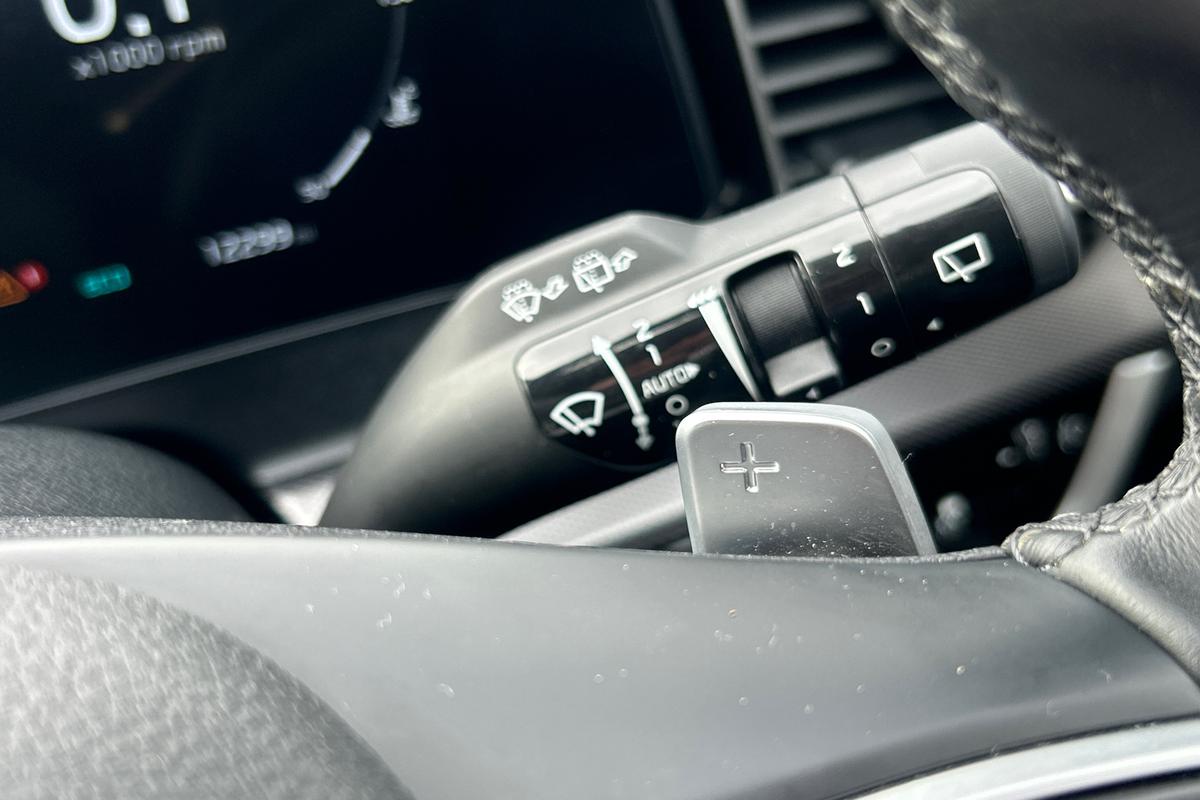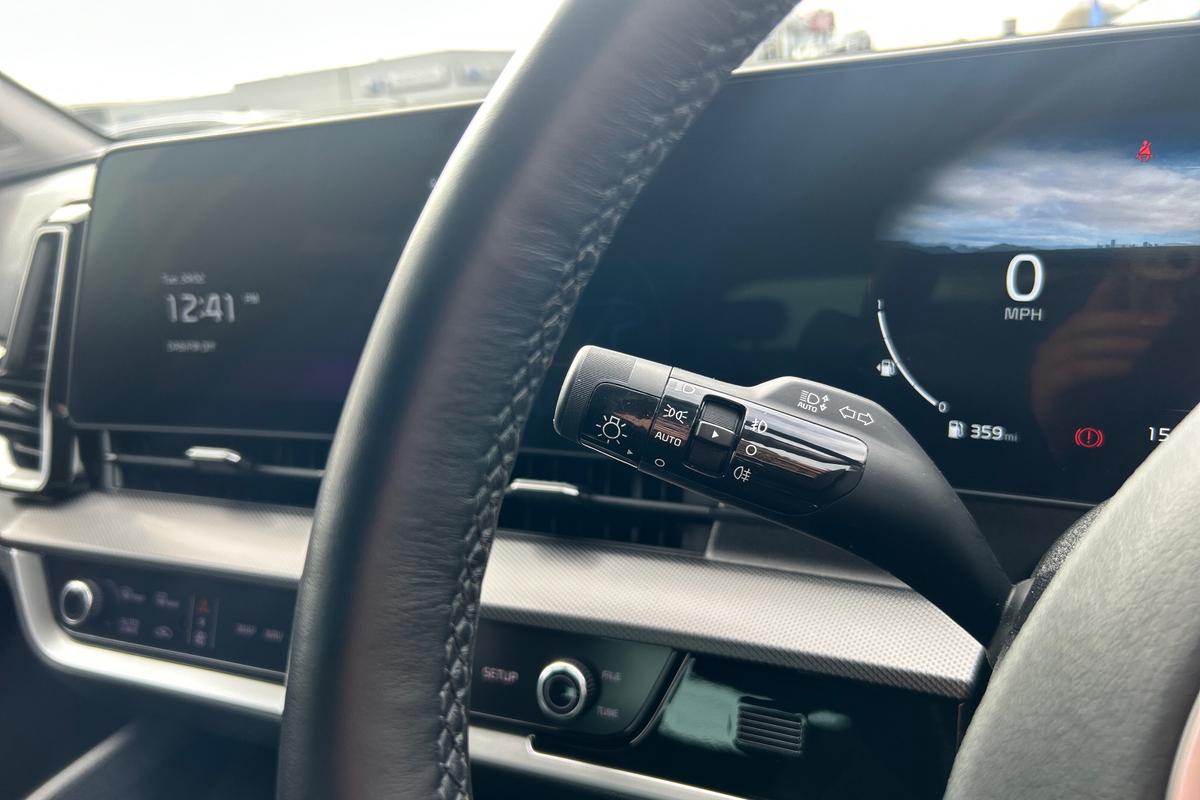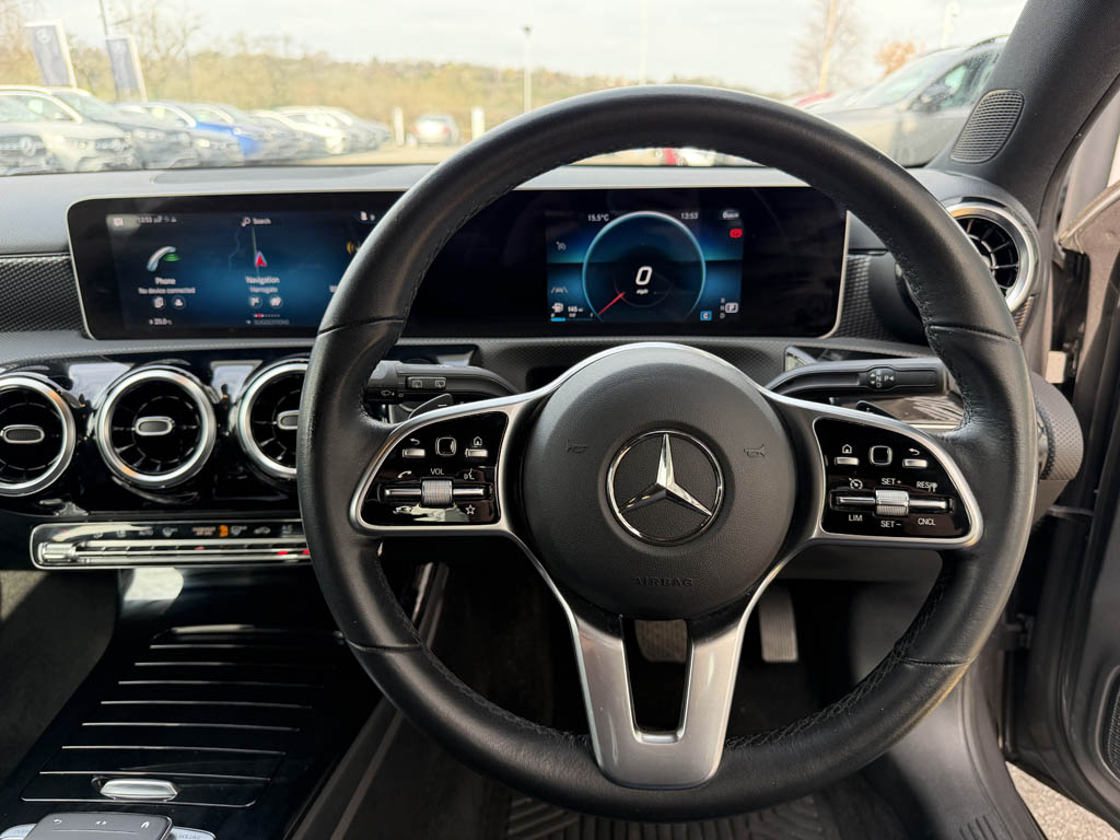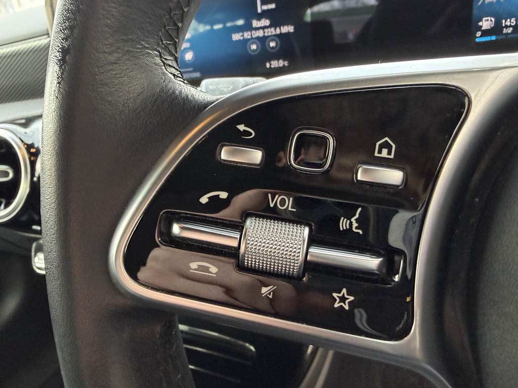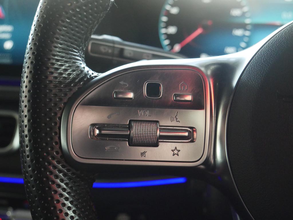 "Three spoke leather trimmed multifunction steering wheel with gear knob",