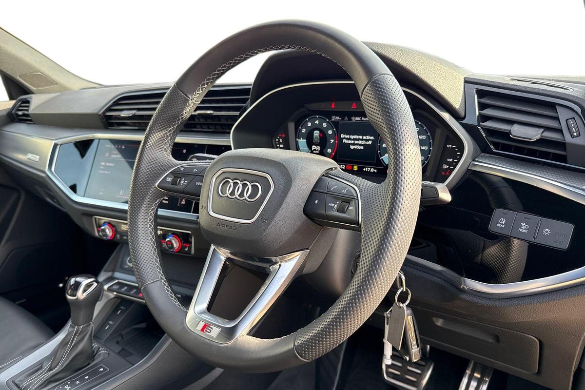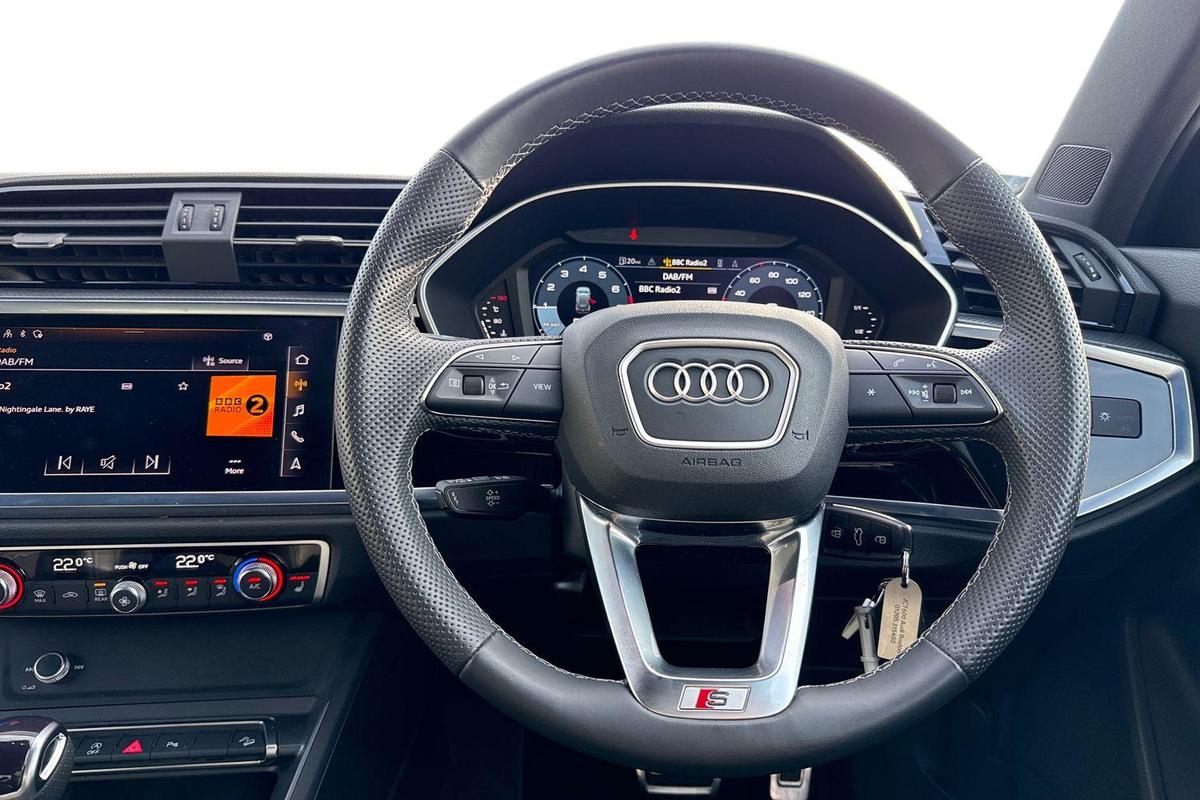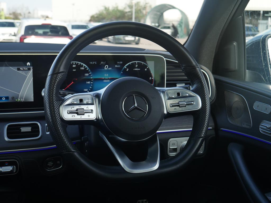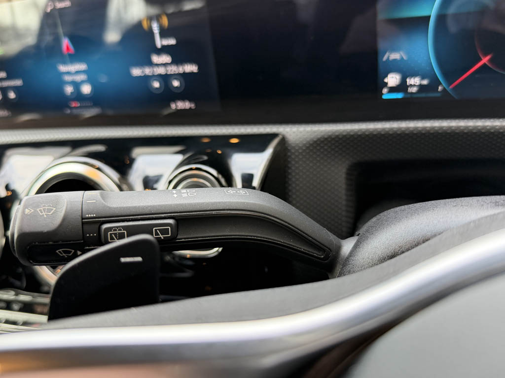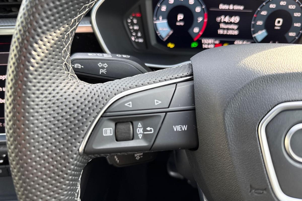 "Three spoke leather trimmed multifunction steering wheel with gear knob",