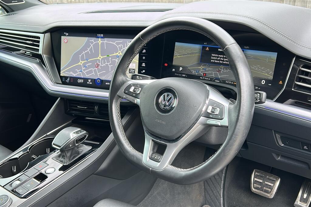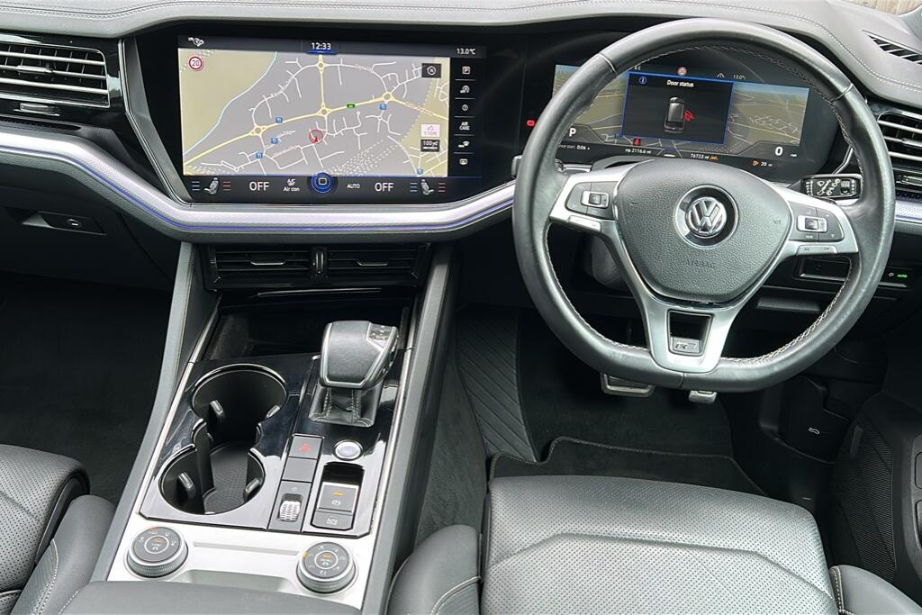 "features": "ACC - Adaptive cruise control with front assist, forward collision warning, distance monitoring, city emergency brake and speed limiter, Apple car play/Android Auto, Bluetooth hands free telephone connection, Drive select with Damper control, Driver alert system, Dynamic road sign display camera controlled system with visual warning for traffic and road signs, Instrument cluster, MirrorLink, Multifunction camera with lane assist, Multifunction computer, Park assist with rear view camera, Service interval indicator, Speed sensitive power steering, Start/stop system with regenerative braking, Tailgate power latch, Traffic sign recognition, Voice control system, Wireless Smartphone charger, Torsen limited slip differential, 2x SD card slot, DAB Digital radio, Gesture control for infotainment system, Auto dimming rear view mirror, Automatic coming/leaving home lighting function, Automatic headlights, Black rear diffuser, Body colour bumpers, Body colour door handles, Body colour door mirrors with integral indicators, Body coloured side skirts, Chrome exhaust tailpipes, Chrome protective strip on door sill, Chrome trimmed radiator grille and air intake, Chrome trimmed side windows, Front and rear electric windows, Headlight range control, Heated windscreen washer jets, LED cornering headlights, LED daytime running lights, LED Indicators, Puddle lights, Rear fog lights, Rear wiper, 12V Accessory socket in centre console, 3 rear head restraints, 4 load lashing points, 4 way adjustable front head restraints, 4 way electric lumbar support for driver and front passenger, 4 zone climate control, 60/40 split folding slide/recline rear seat, Driver/front passenger seat height adjustment, Electric luggage compartment cover, Folding rear centre armrest with 2 cupholders, Front + rear carpet mats, Front centre armrest with storage box, Gear shift indicator, Height/reach adjust steering wheel, Isofix preparation for 2 rear child seats, Jack and tool kit, Leather heated multifunction steering wheel with paddle shift, Leatherette door trim, Load through provision, Soul black headlining, Stainless steel load sill protection, Stainless steel pedals, Sunvisors with illuminated vanity mirrors, Innovision cockpit pack with Digital cockpit - Touareg, 3 point front seatbelts with pre-tensioners, ABS, Active bonnet, Automatic post collision braking system, Curtain airbags, Driver/Front Passenger airbags, EBD + Brake Assist, EDL, Electronic parking brake with auto hold, ESC with ASR, Front seat side impact airbags, Hill descent control, Passenger airbag deactivate switch, Seatbelt warning lamp and buzzer, Three 3 point rear seatbelts, Two tone horn, Warning triangle and first aid kit, Alarm with interior monitoring in cab, backup horn and towing protection, Anti-theft wheel bolts, Remote central locking, Aluminium dash and door panel inserts, High gloss black centre console, Temporary space saver steel spare wheel, ",