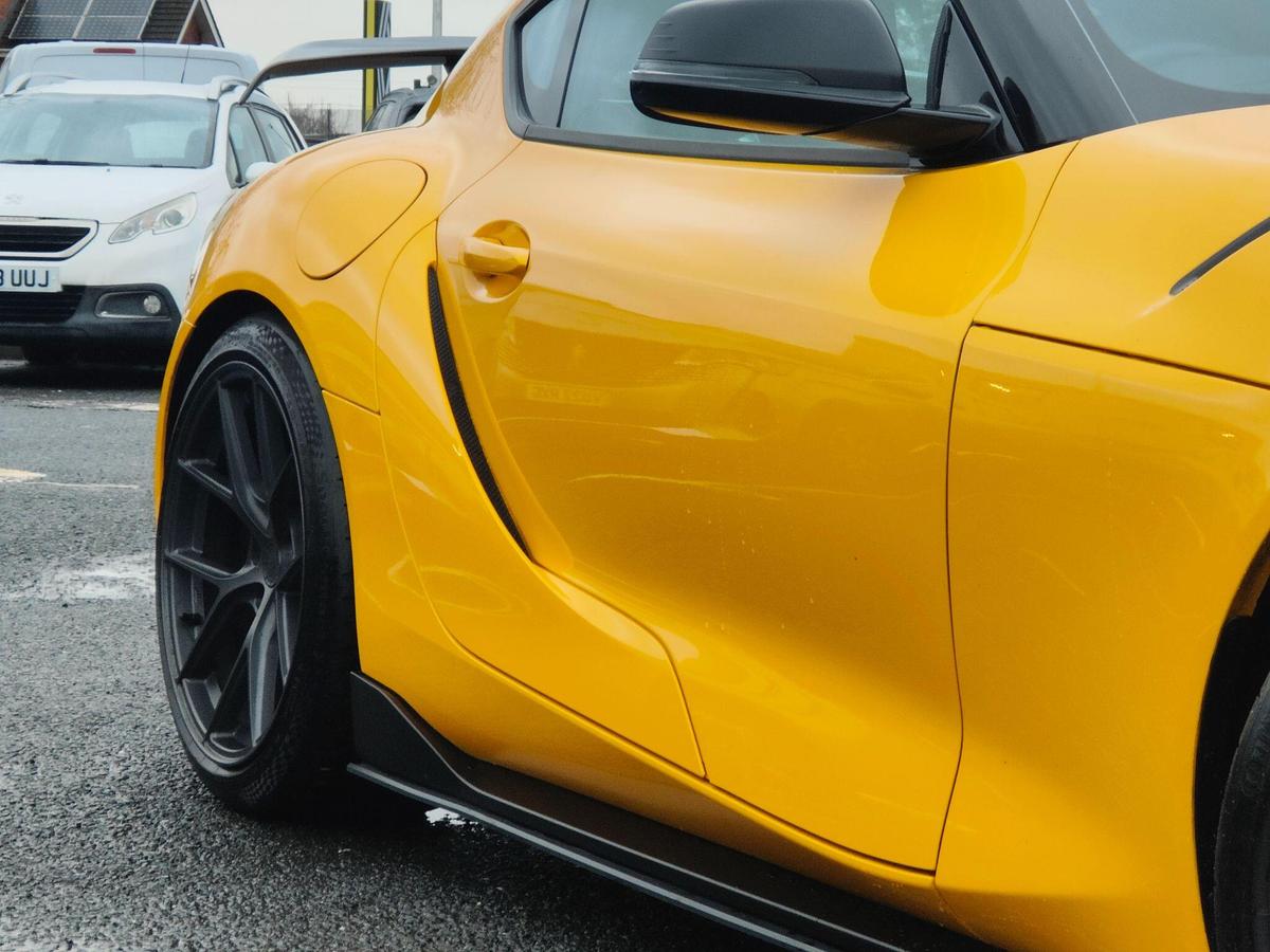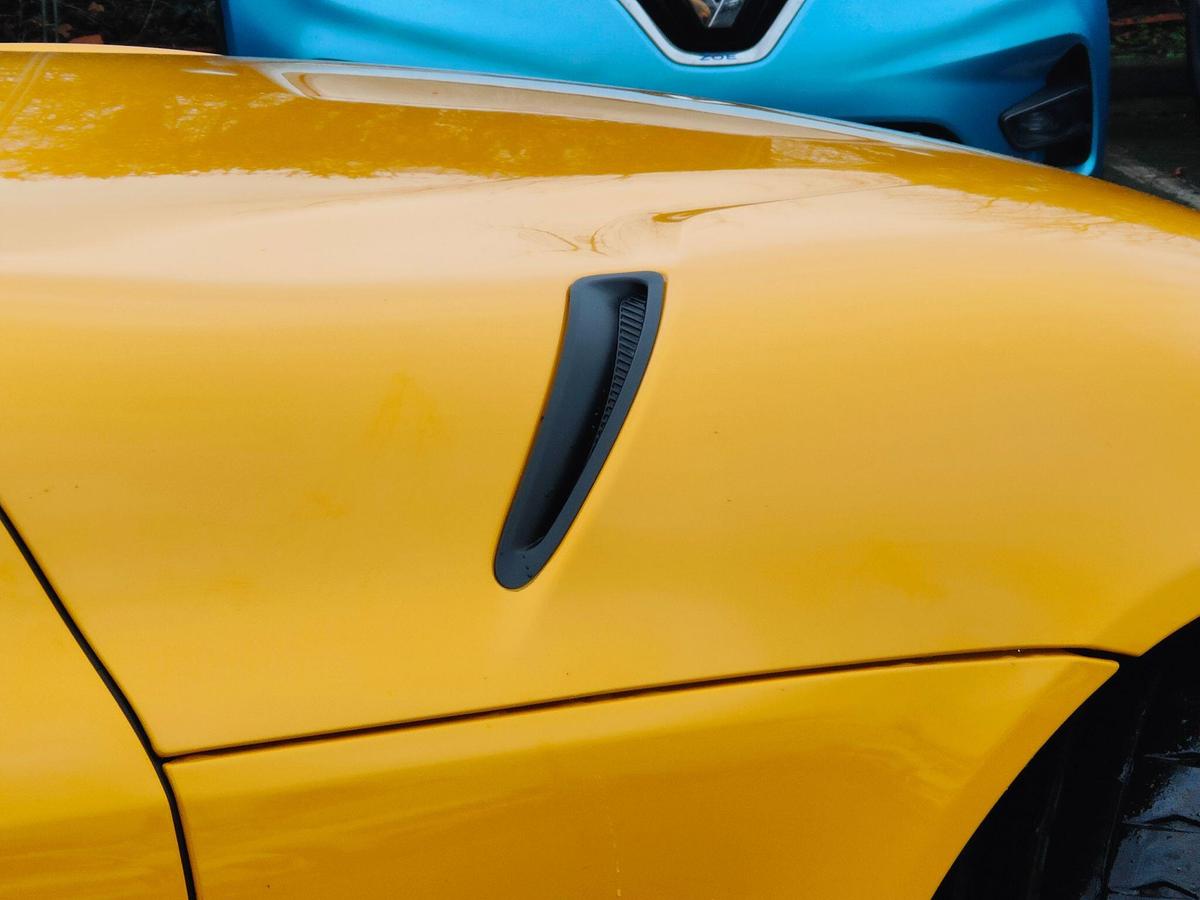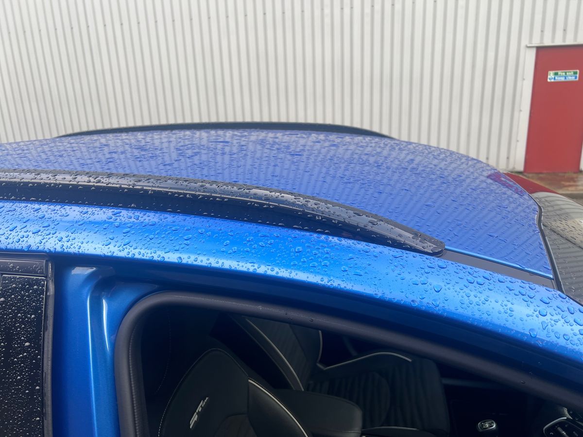 "High gloss black door mirrors and window surround",
