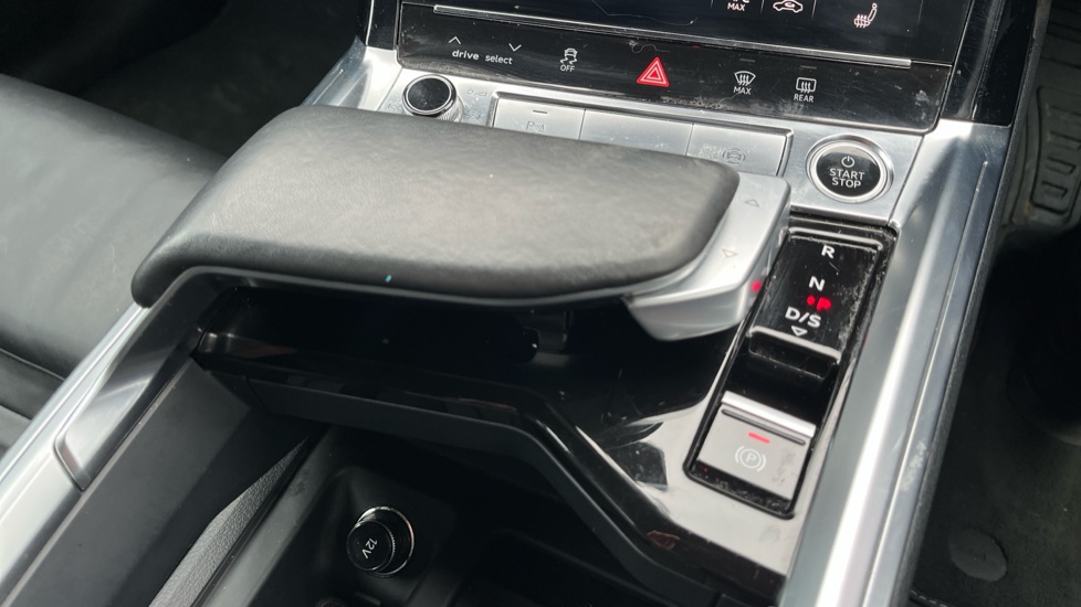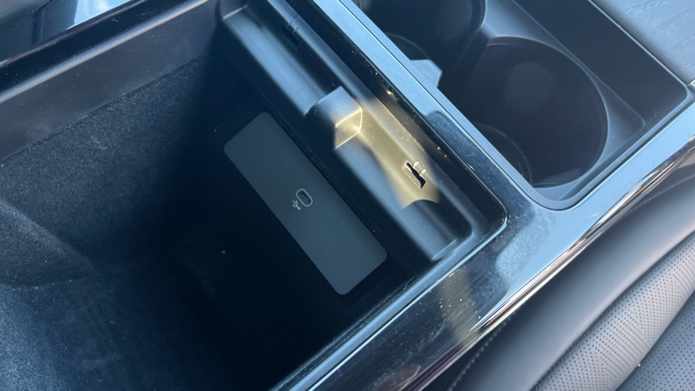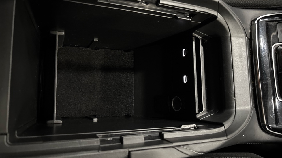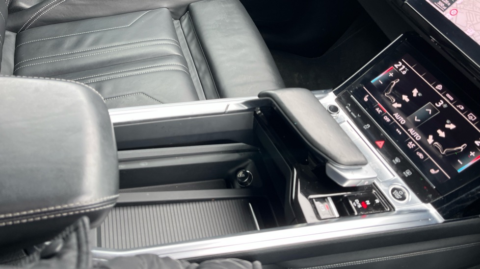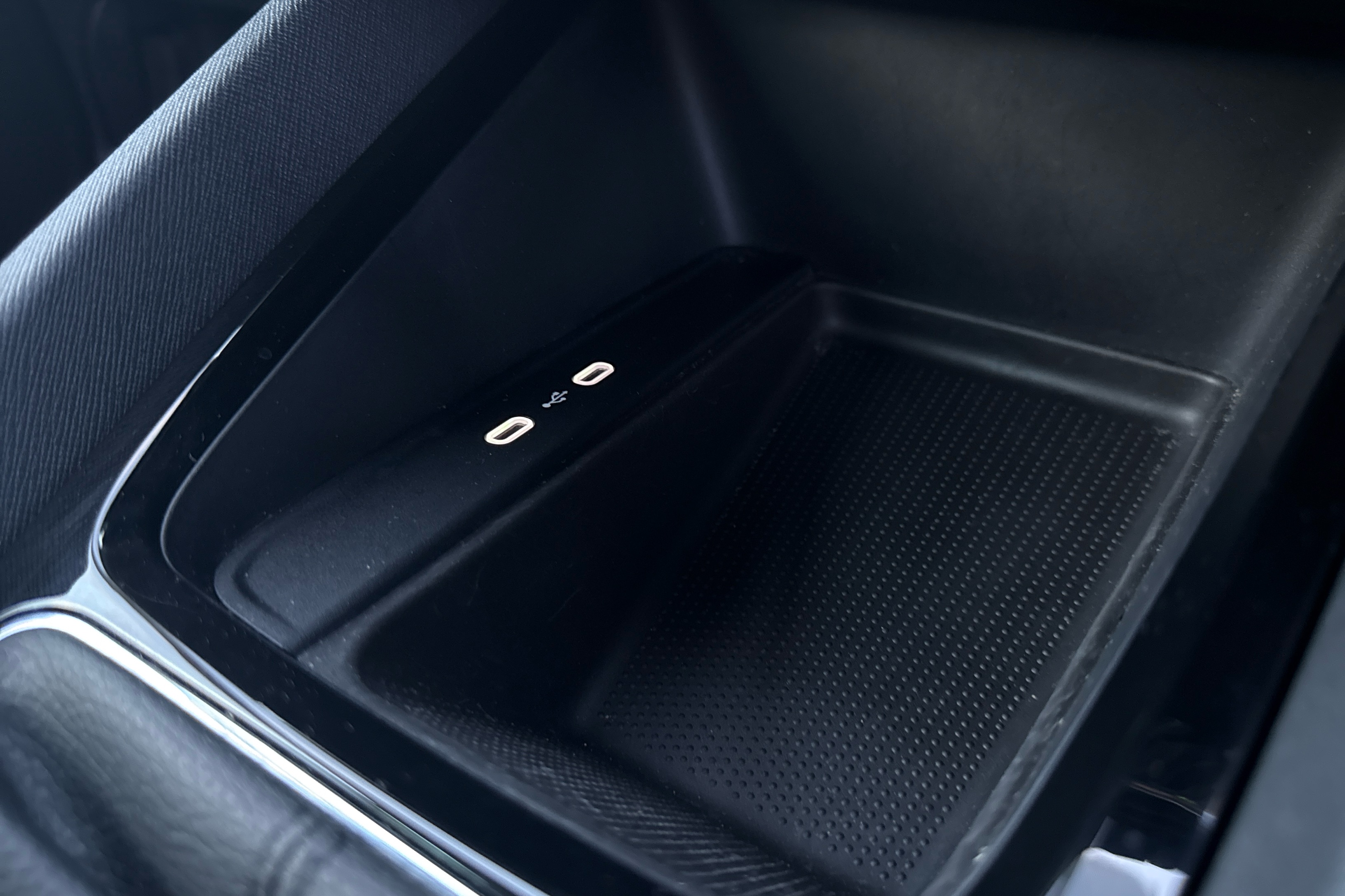 "Storage space under touchscreen with rubber mat",
