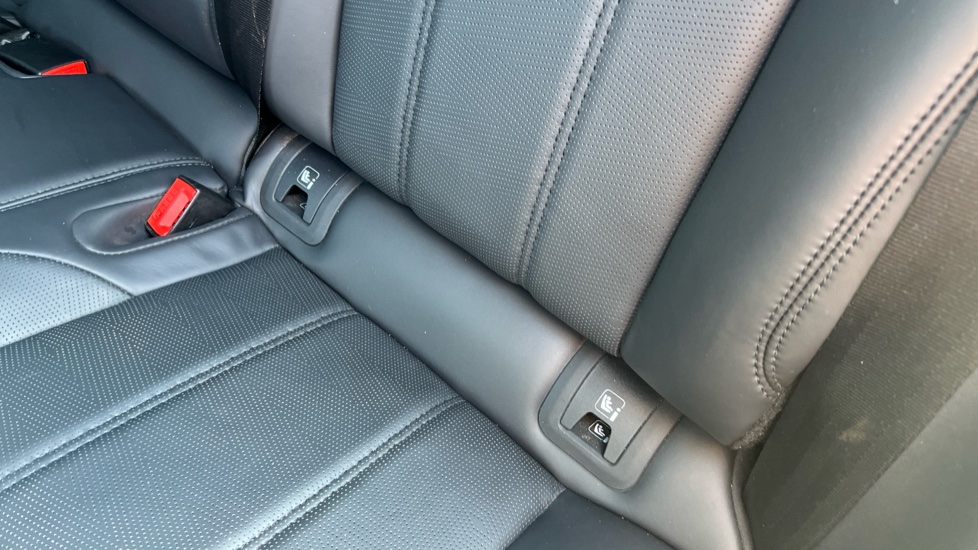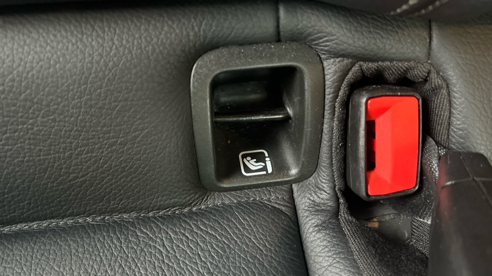 "ISOFIX mounting on outer rear seats with top tether and labels indicating fixing points",