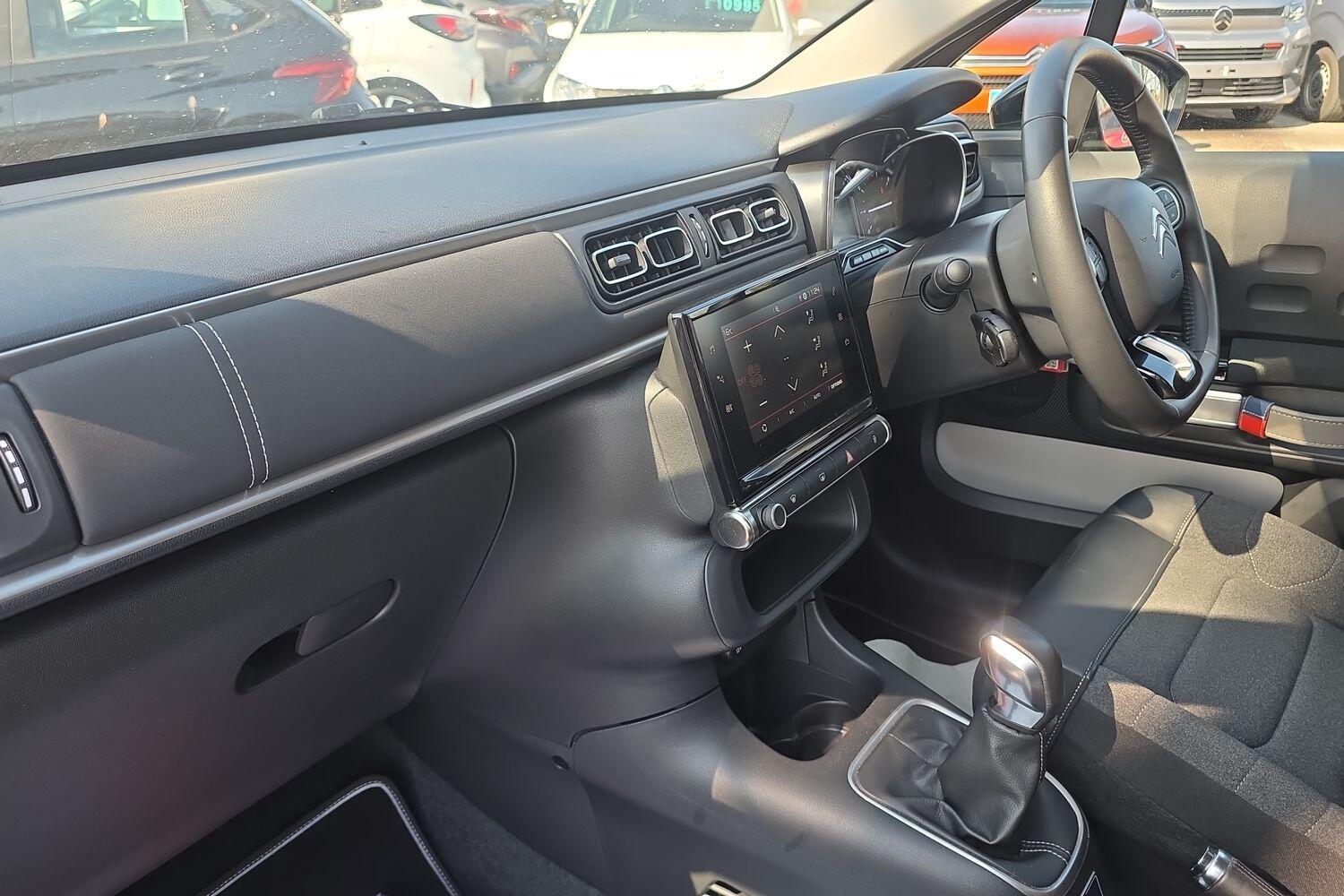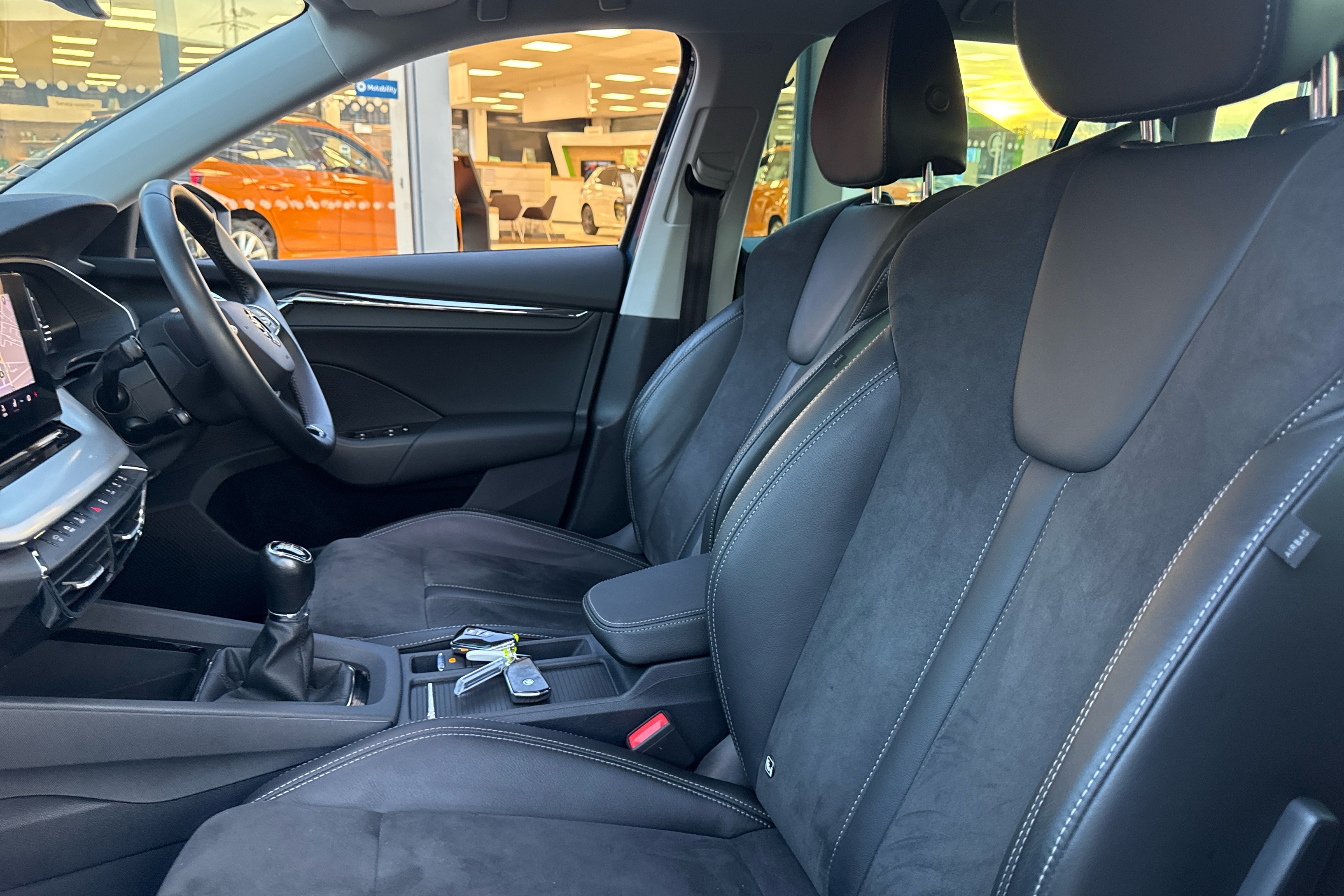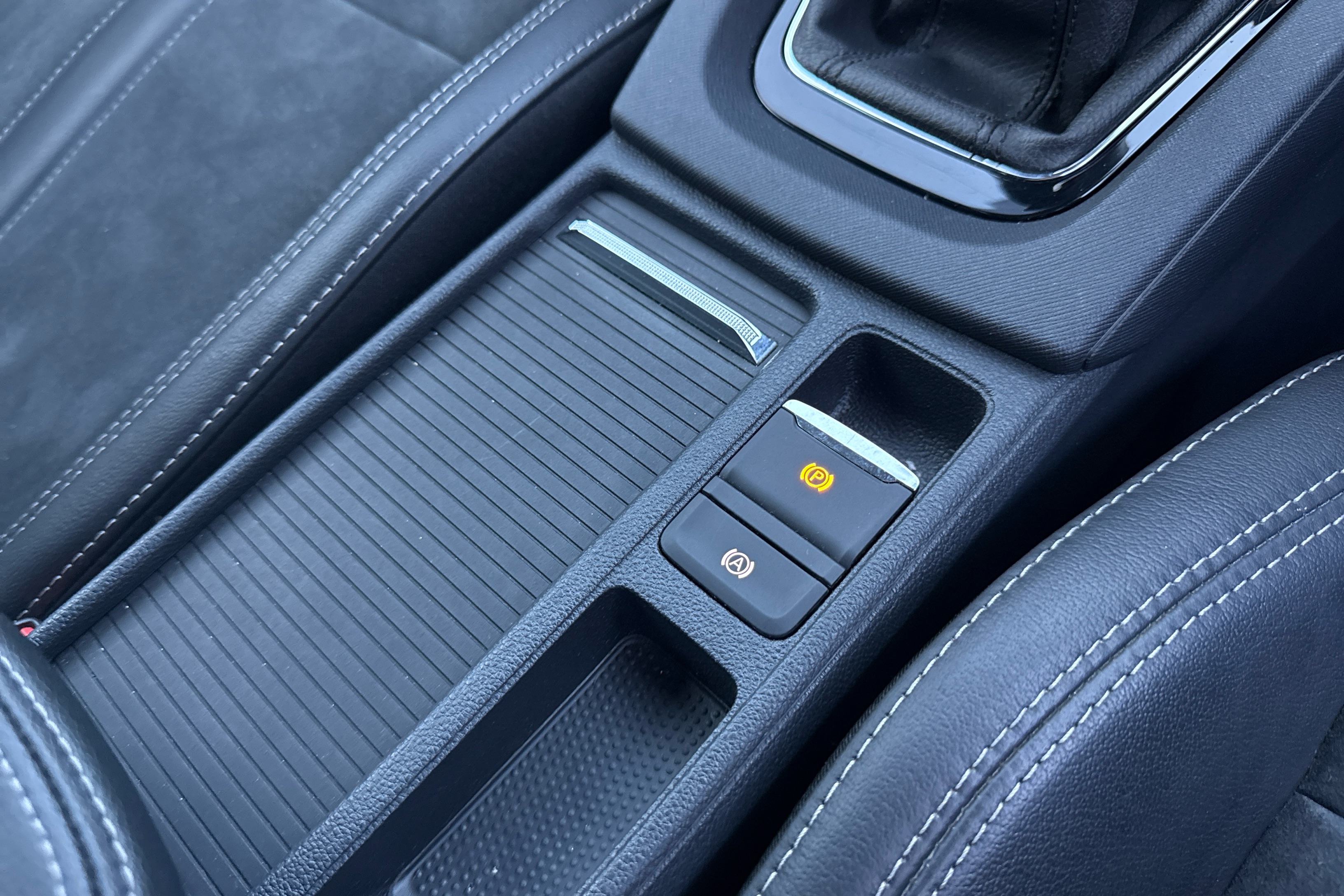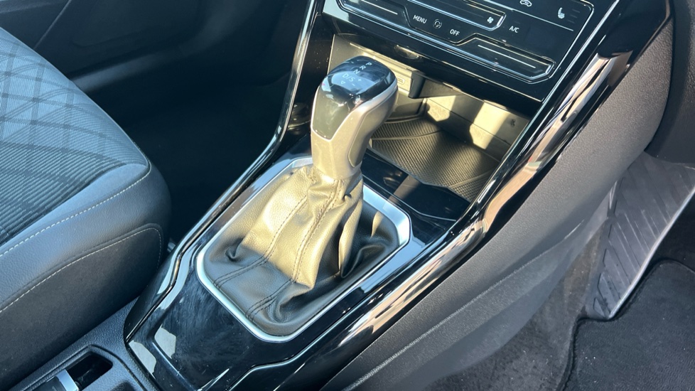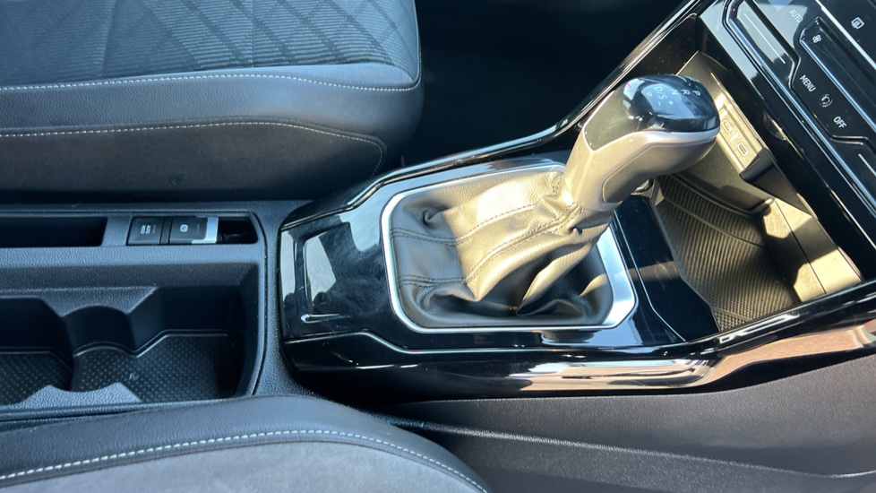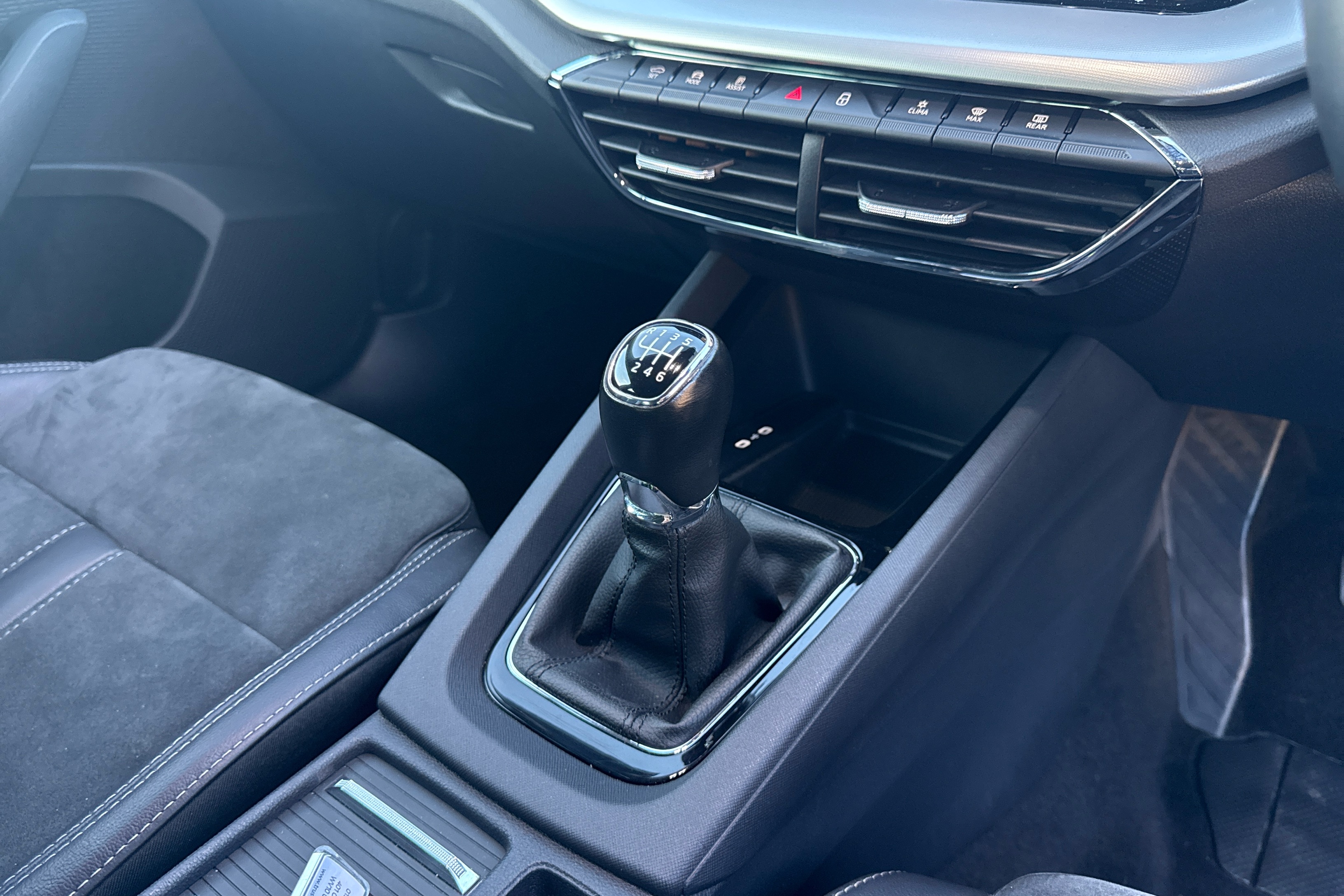 "Soft touch gear lever with leather effect gaiter and overstitching",