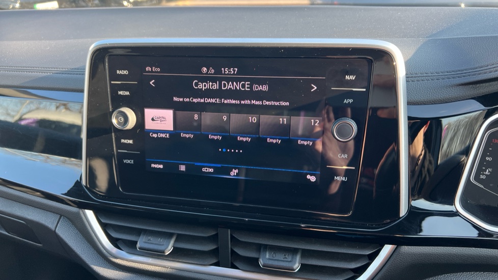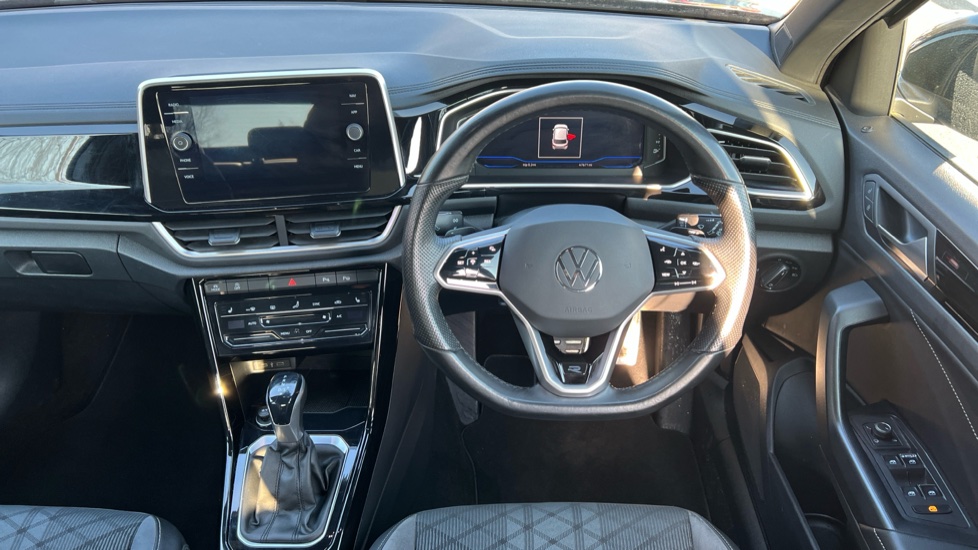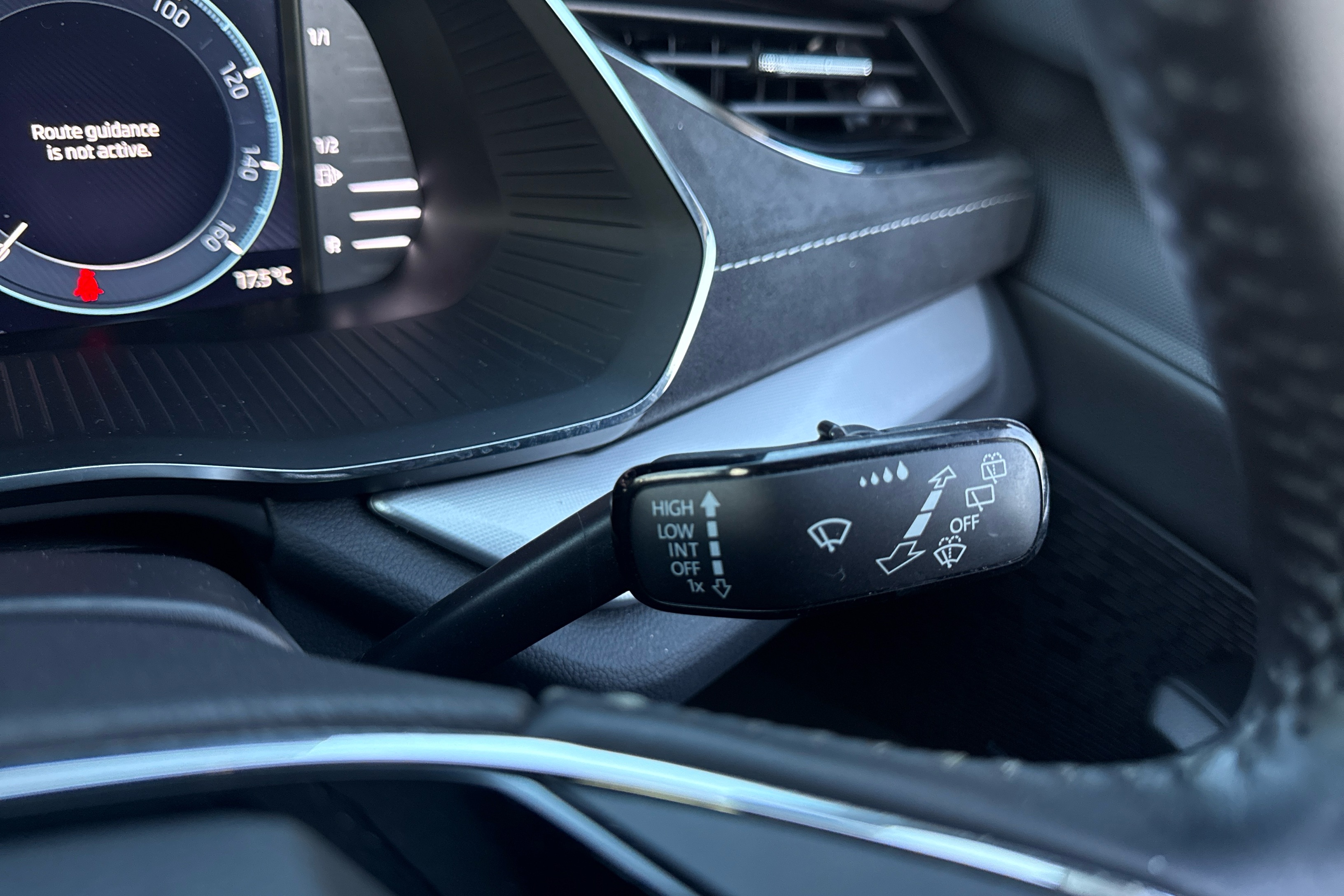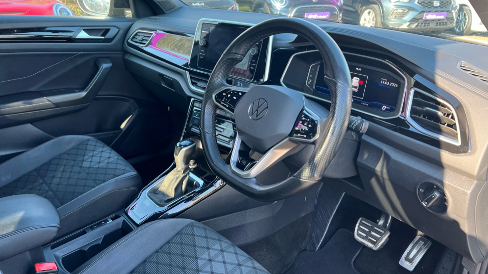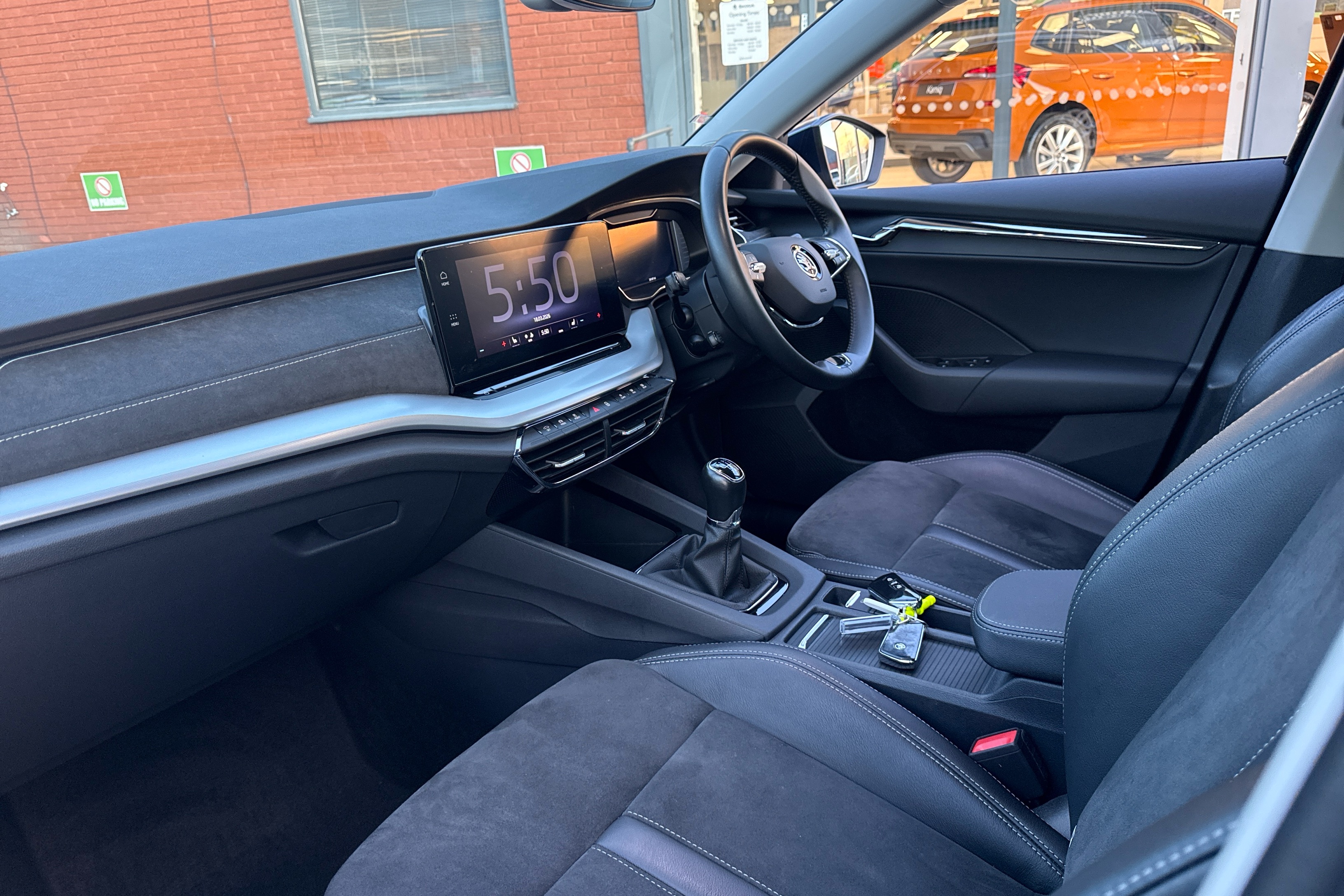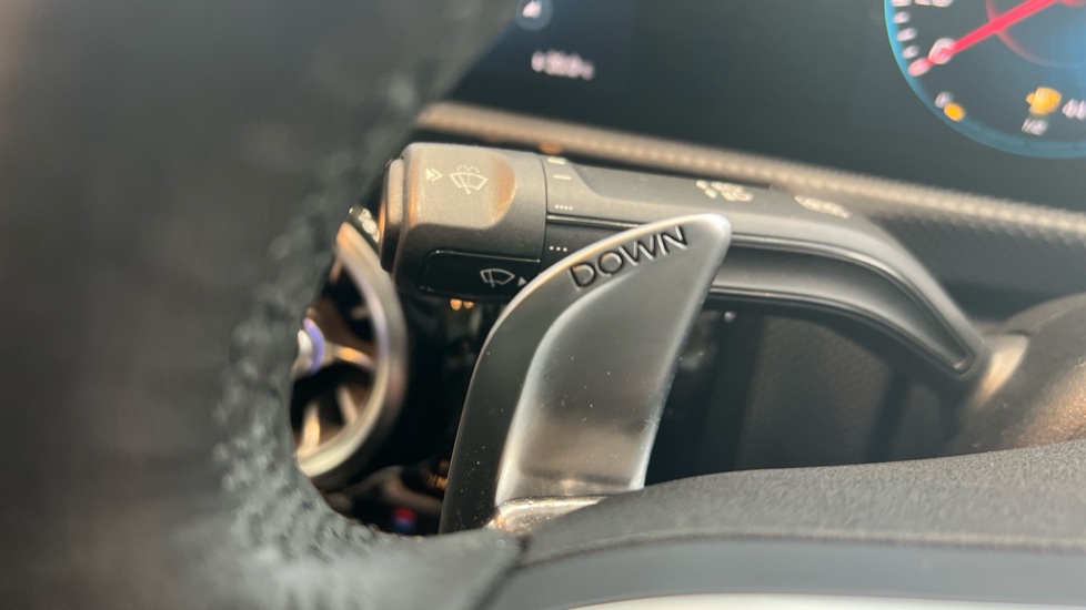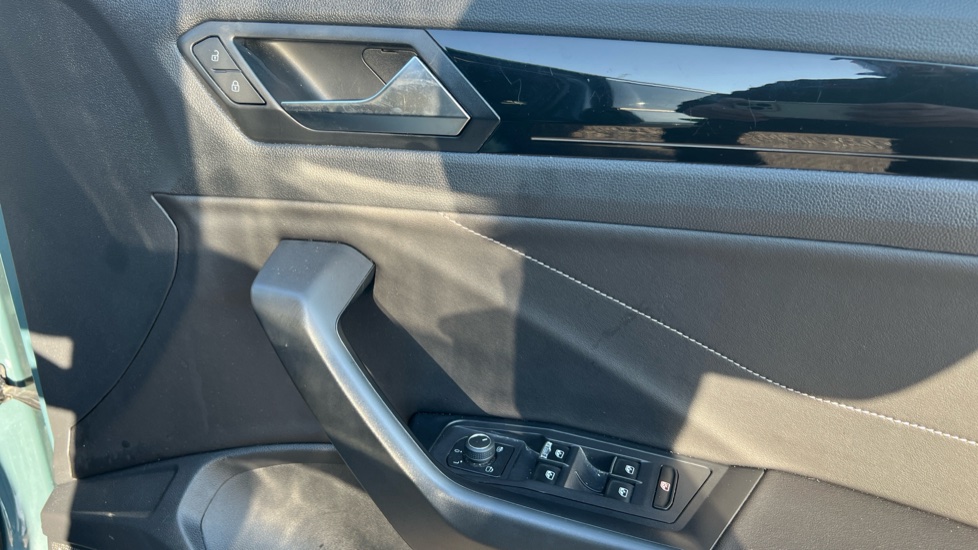 "Soft touch gear lever with leather effect gaiter and overstitching",