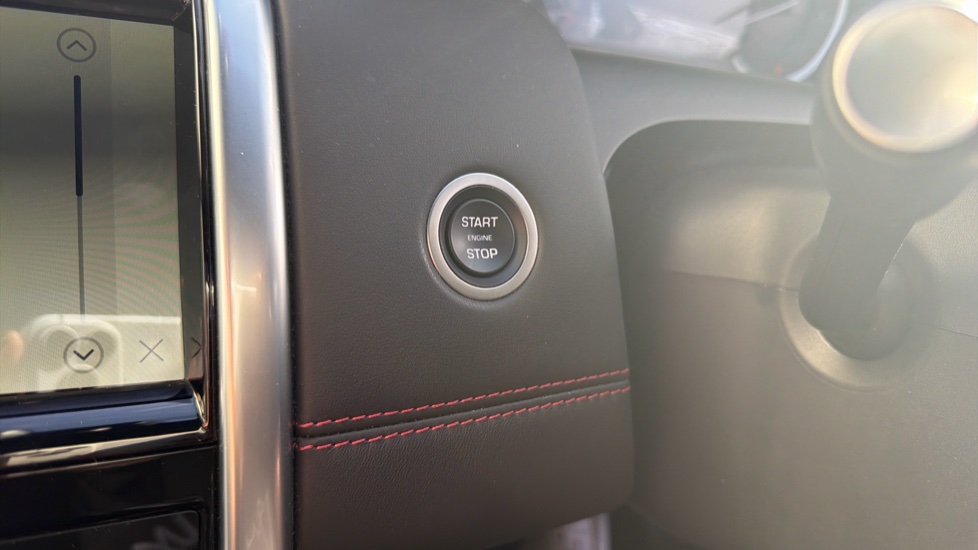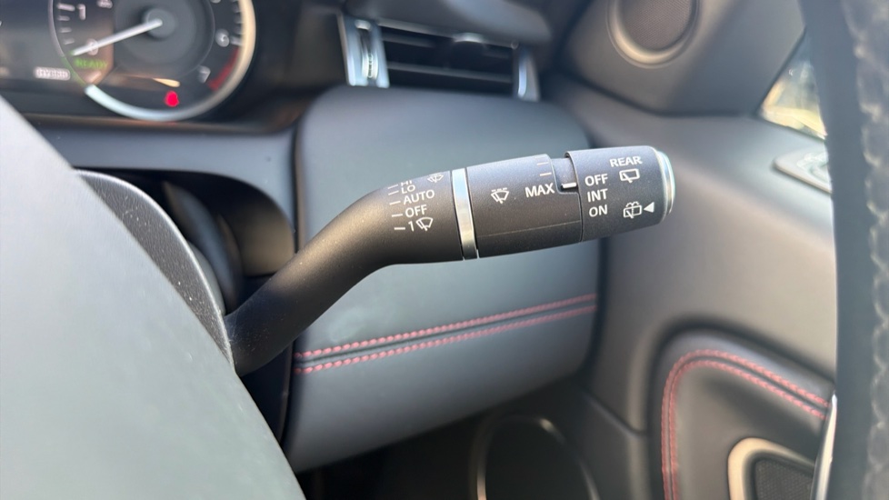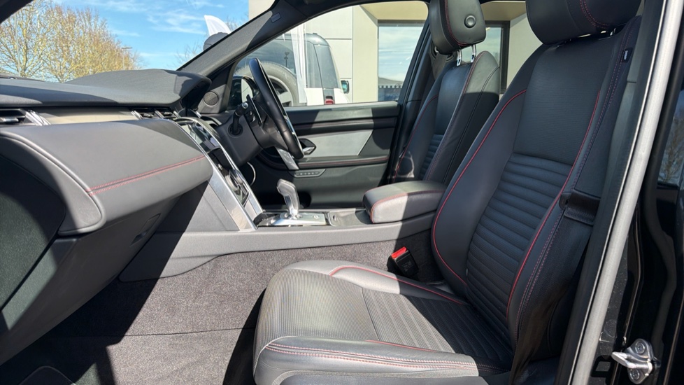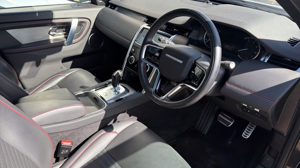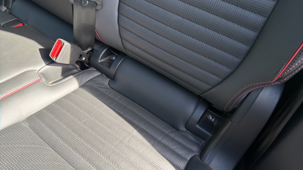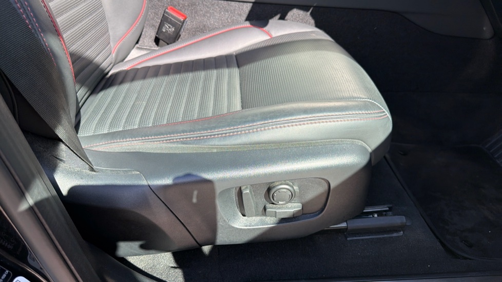 "Red stitching on steering wheel",