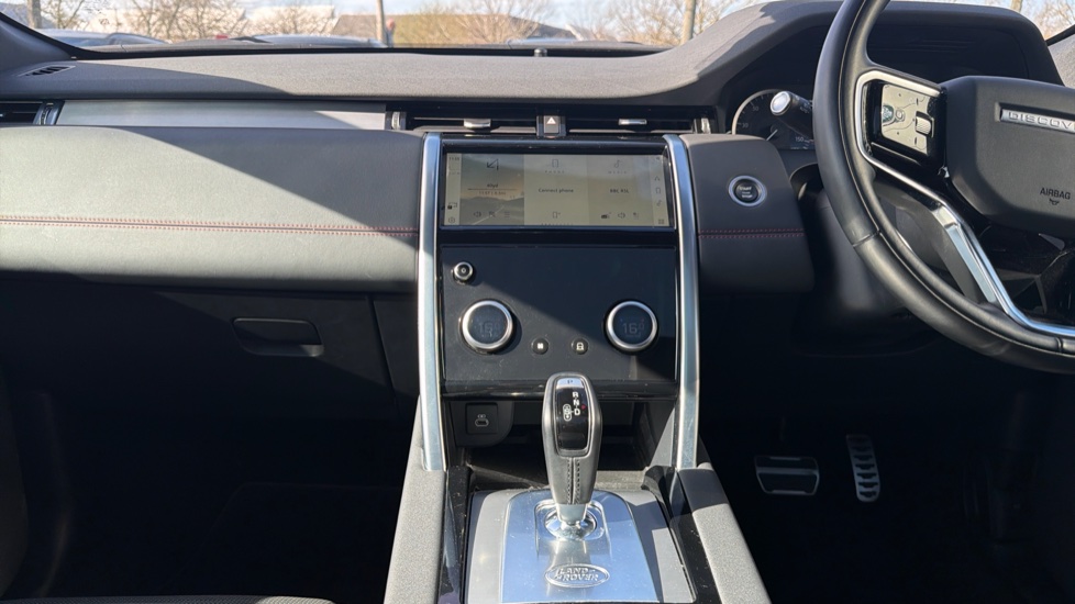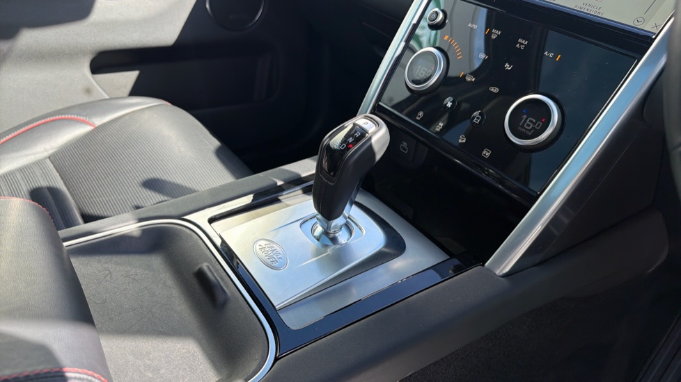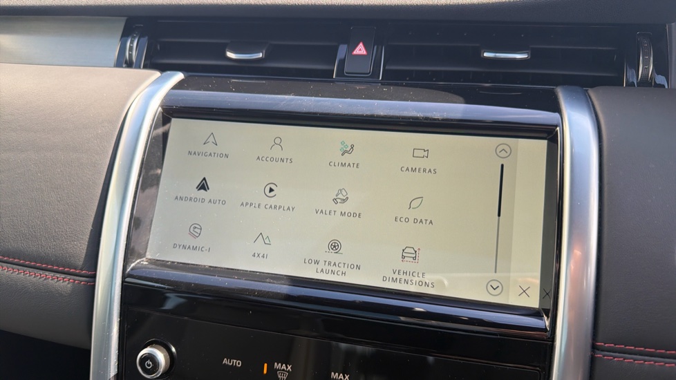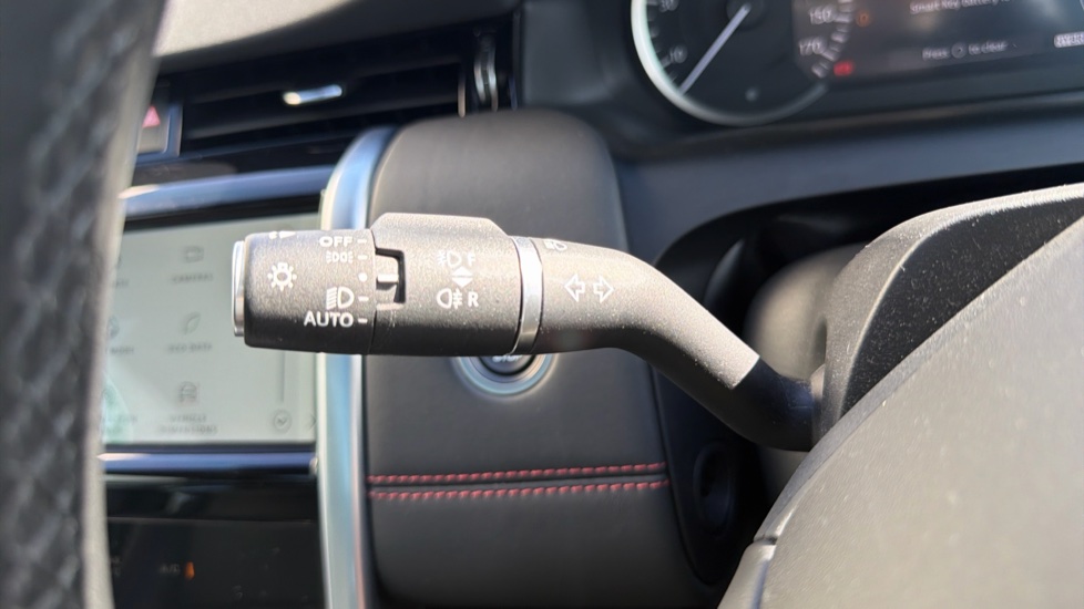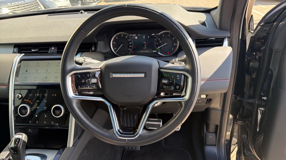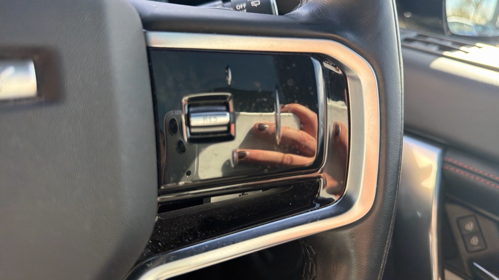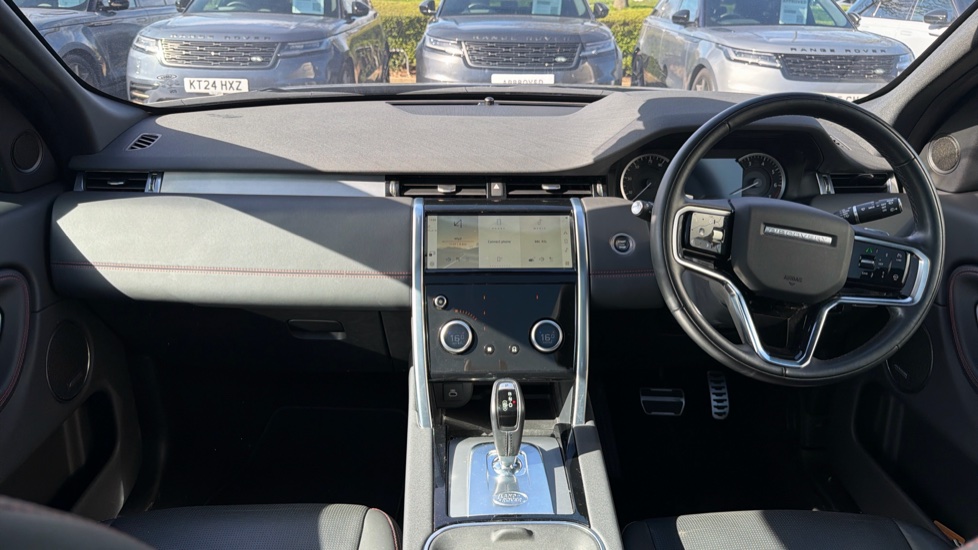 "Red stitching on steering wheel",
