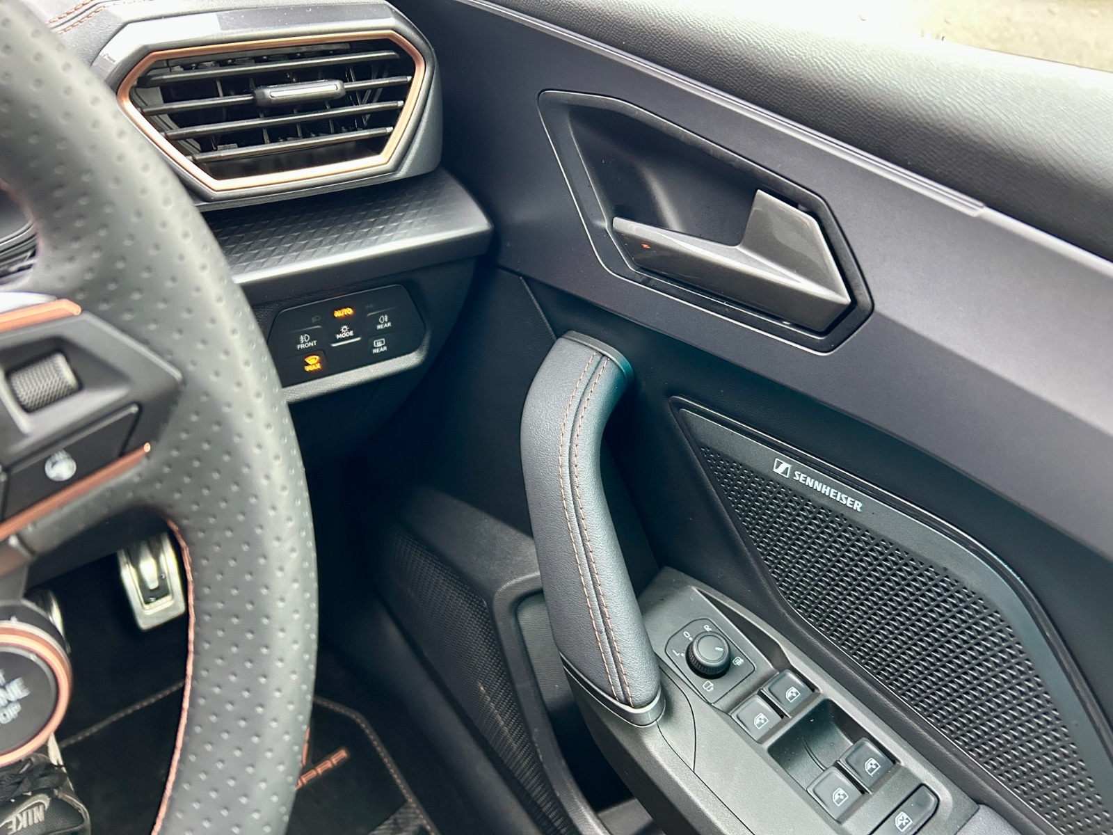"Electric front windows + one touch + anti-pinch",