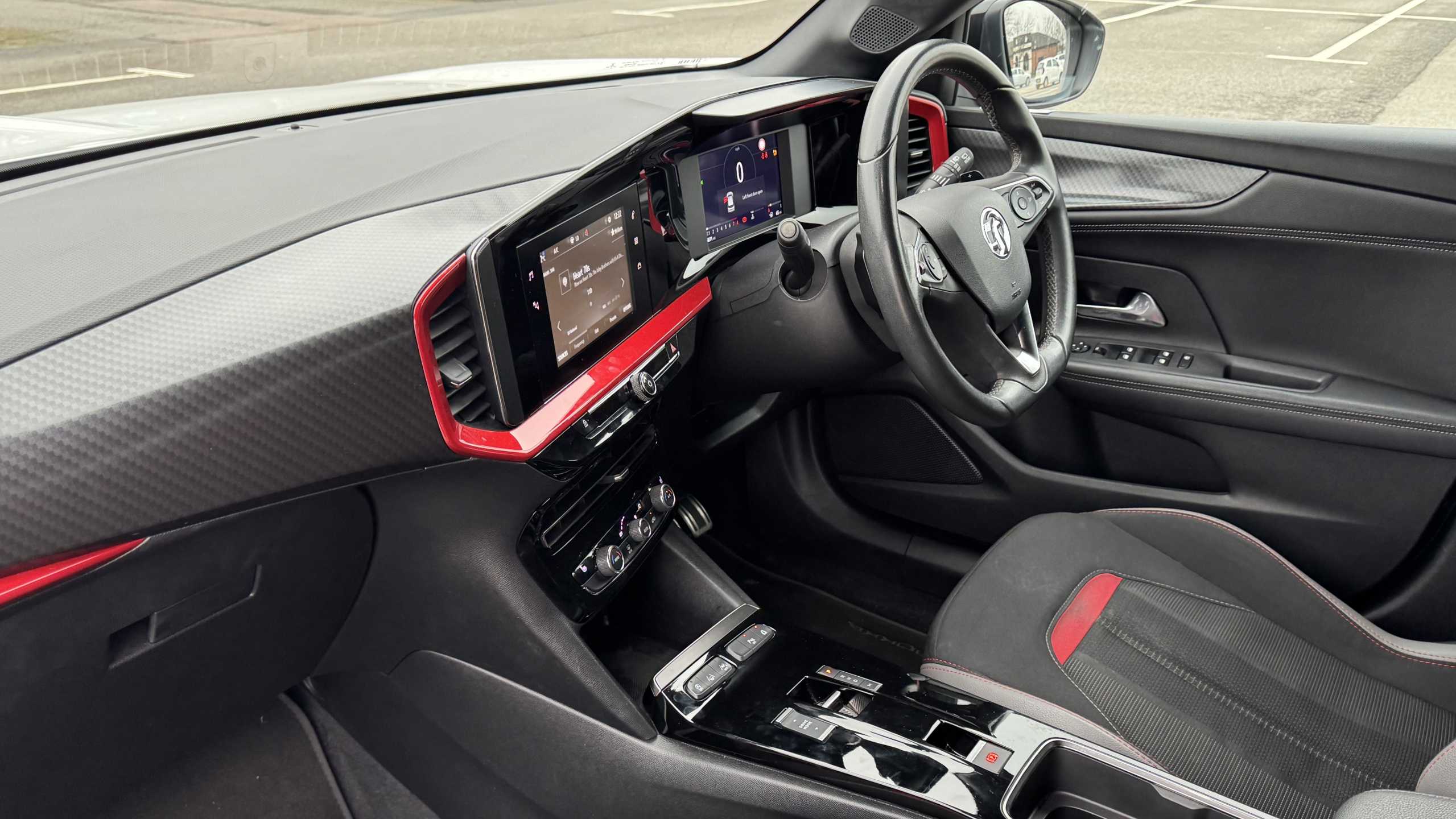 "features": "Automatic adaptive cruise control, Driver drowsiness alert system, Front camera system, Lane positioning assist, Lights on audible warning, Multi function trip computer, Panoramic rear view camera, Power assisted speed sensitive steering, Rear parking distance sensors, Smartphone integration compatible with Apple CarPlay and Android Auto, Speed sign recognition, Sports switch with engine sound enhancement, Start/stop system, Vauxhall connect with e-Call, 8 speed automatic transmission, Chassis drive line front wheel drive, Electronic fuel system, Front chassis equipment, Rear chassis equipment, Standard chassis suspension system ride handling, Bluetooth A2DP audio streaming function (Advanced audio distribuition profile), Flexible Roof Mounted Radio Aerial, Front USB connection, Mobile phone portal - bluetooth connect, vehicle microphone, handsfree calls, SMS read out and reply, phone book access, Multimedia infotainment systems with smartphone integration - 7\" touchscreen and instrument panel, 6 speaker, DAB radio, Apple carplay/Android auto, Steering wheel mounted controls, Two rear USB sockets, 3rd brake light, Adaptive brake lights, Automatic lighting control with tunnel detection, Automatically dimming anti dazzle rear view mirror, Black door mirror housings, Black Griffin logo and vizor frame, Black rear spoiler, Black skid plates, Body colour door handles, Body colour front and rear bumpers, Dark tinted rear side windows + tailgate window, Electrically adjustable and heated door mirrors, Electrically operated front and rear windows with safety auto reverse and one touch up/down facility, Hazard warning lights, Heated rear window+rear wash/wipe, High beam assist, LED daytime running lights, LED front fog lamps, LED side repeat indicators, LED tail lights, Manual headlamp level control, Rear foglight, Rear side wing doors, Rear wiper, Reversing light, Two speed rain-sensitive windscreen wipers with variable intermittent wipe, Windscreen and side window demist vents, 12V Accessory socket, 3 seat bench in 2nd row, 3 spoke flat bottomed leather steering wheel with satin chrome bezel, 4 speed fan with illuminated controls, 6 way manual adjustable driver fore/aft, up/down with reclining seatback, 6 way manual adjustable front passenger fore/aft, up/down with reclining seatback, Air recirculation system, Alloy sports pedals, Black headliner, Cabin particulate filter - removes dust, airborne particles and pollen, Centre console with two cup holders at front and one in rear, Chrome effect interior door handles, Door pockets with two litre capacity, Driver and passenger seat pocket, Driver and passenger sun visors with vanity mirror, Electronic climate control (ECC), Fabric/leather upholstery with jet black fabric side bolsters, Four adjustable facia vents, Four load restraint lashing eyes, Front centre armrest with storage, Front map reading lights, Front seat back storage pockets, Fully carpeted load area, Heated front seats, Height adjustable front/rear head restraints, Illuminated load area, Interior courtesy light, Interior tailgate handle, Luggage compartment cover, Luggage compartment lighting, Reach + rake adjustable steering column, Single front passenger seat, Twin gas assisted tailgate struts, 2x Isofix child seat fitting on outer rear seats, 3x3 point rear seat belts, Anti-lock braking system (ABS), Automatic emergency city braking, Child proof locks on rear doors, Cornering brake control, Deactivation switch for front passenger front and side impact airbags, Drag torque control, Driver and front passenger airbags, front seat side impact airbags, full size curtain airbags, Electronic brake force distribution, Electronic Stability Programme (ESP), Emergency brake assist, Forward collision alert at all speed, Hill start assist, Inertia reel lap and diagonal seatbelts for all seats, Seatbelt unfastened audible warning and warning light, Straight line stability control, Traction control, Tyre pressure monitoring system, Electronically protected audio equipment, Freewheeling door locks, Immobiliser, Key left in ignition audible warning, Locking wheel nuts, Remote control central locking, Visible vehicle identification number, Atlantis black trim inserts of front doors, Black facia with red trim insert, Instrument panel bar in Light Gravel, 18\" bi colour alloy wheels with red accents, ",