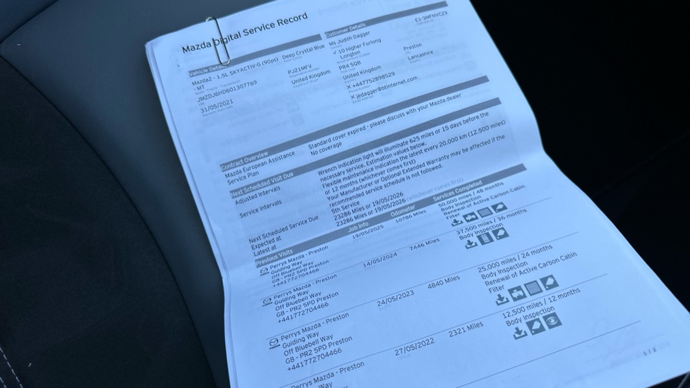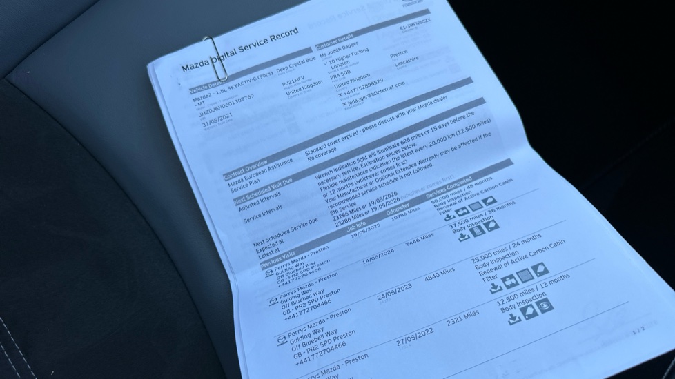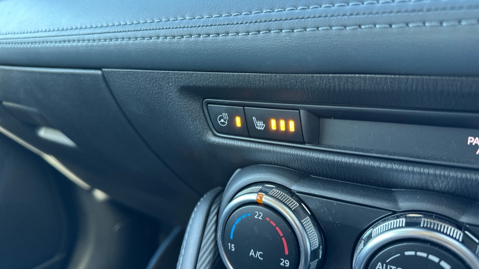 "features": "Adjustable speed limiter, Apple car play/Android Auto, Colour active driving display, Cruise control, Digital instrument cluster, Digital speed display meter, Driver attention alert system, Emergency stop signalling system, Integrated bluetooth with hands-free calling, bluetooth audio and easy access to phone contacts, Lane departure warning system, Lane keep assist, Mazda connect with 7\" colour touch screen, Multimedia Commander, Navigation system, PAS, Rear parking sensor, Reversing camera, Service indicator, Trip computer, i-stop, 2 USB interfaces and Aux-In jack, Audio system with 6 speakers with 2 in driver headrest, AM/FM/DAB radio and single CD/MP3, Steering wheel mounted audio/bluetooth controls, Auto dimming rear view mirror, Body coloured bumpers, Chrome exhaust tailpipes, Chrome front lower bezel, Chrome rear lower bezel, Coming/leaving home lighting function, Dusk sensing headlights, Electric adjustable/heated/folding door mirrors, Electric front/rear windows with one touch, Gloss black front grille, LED indicator lights, LED third brake light, Privacy glass, Rain sensing front wipers, Rear wiper, Shark fin antenna, Signature LED headlights with LED daytime running lights, 60/40 split rear seats, Climate control air conditioning, Driver, Front passenger and two rear grab handles with coathooks, Drivers seat manual slide recline and height adjustment, Drivers/front passengers covered vanity mirrors and drivers ticket holder, Folding rear seats, Front head restraints, Front passenger and driver door pockets, Front passenger seatback pockets, Gear shift indicator, Glovebox, Heated front seats, Heated leather steering wheel, Interior courtesy light with integrated spotlight, ISOFIX child seat anchorage points attached on outer rear seats, Leather handbrake, Luggage compartment light, Passenger seat manual slide and height adjustment, Three height adjustable rear head restraints, Tilt/telescopic adjustable steering wheel, 3 point seatbelts on all seats, Anti-lock braking system (ABS), Collision mitigation braking system, Dual front airbags, Dynamic stability control + Traction control, ESP, Front and rear curtain airbags, Front driver, passenger and rear seat seatbelt warning, Front side airbags, Front smart city brake support, G-Vectoring control plus, Hill hold assist, Passenger airbag cut-off switch, Tyre pressure monitoring system, Alarm, Immobiliser, Remote central locking, Smart keyless entry, Blue/grey soft touch dashboard, 16\" alloy wheels, Emergency tyre repair kit, ",