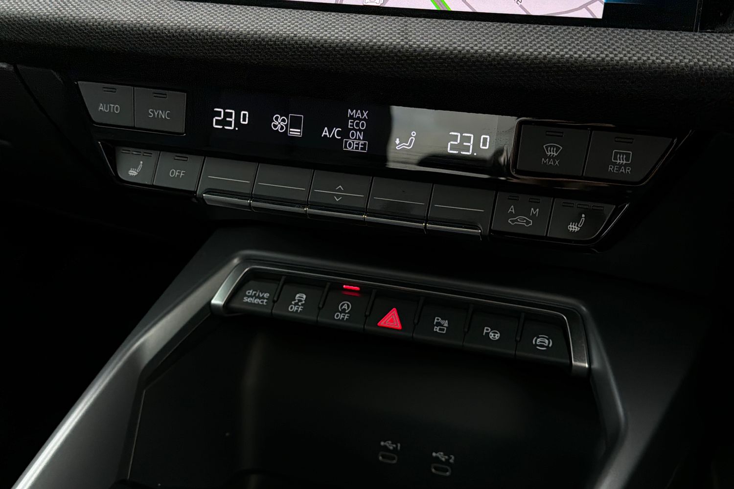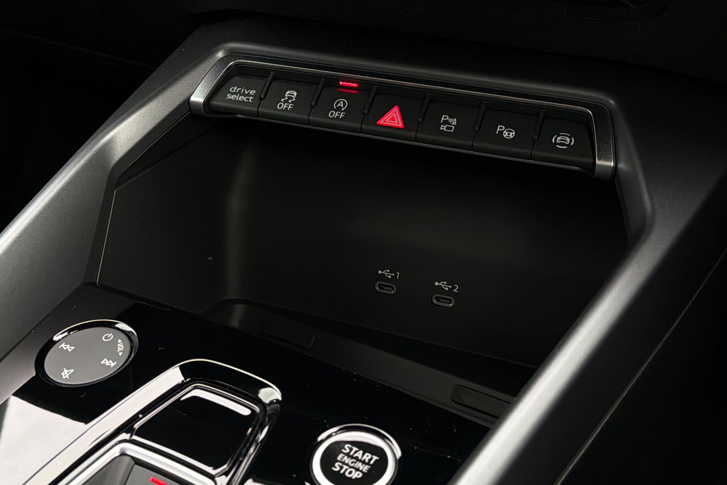"2 USB-C ports in the front, 2 USB-C charging sockets on the center console in the rear",