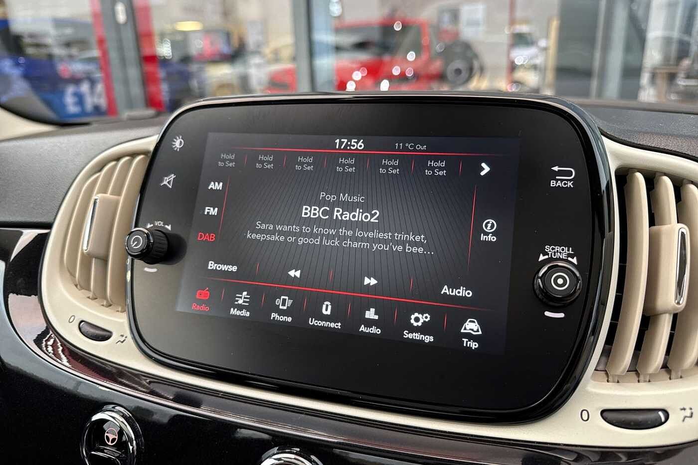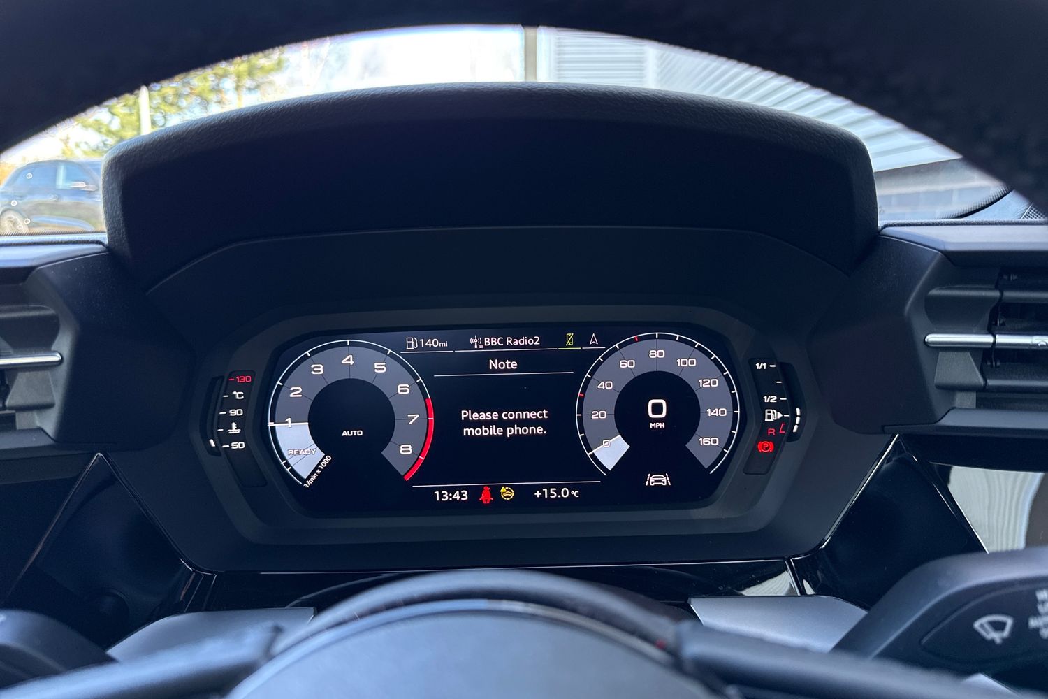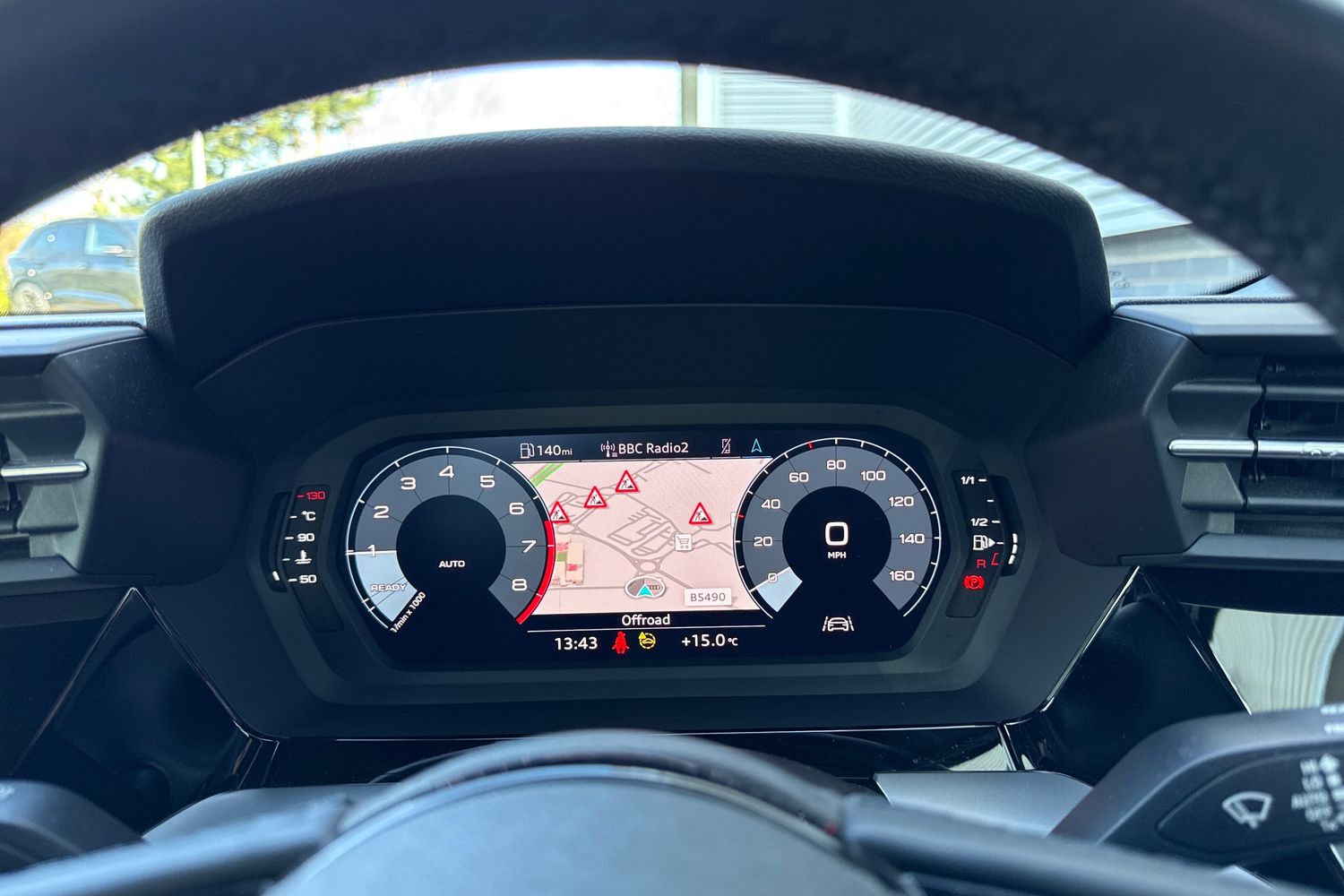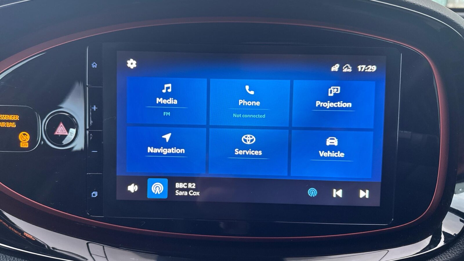 "Central facia display with digital clock, outside air temperature and audio information",