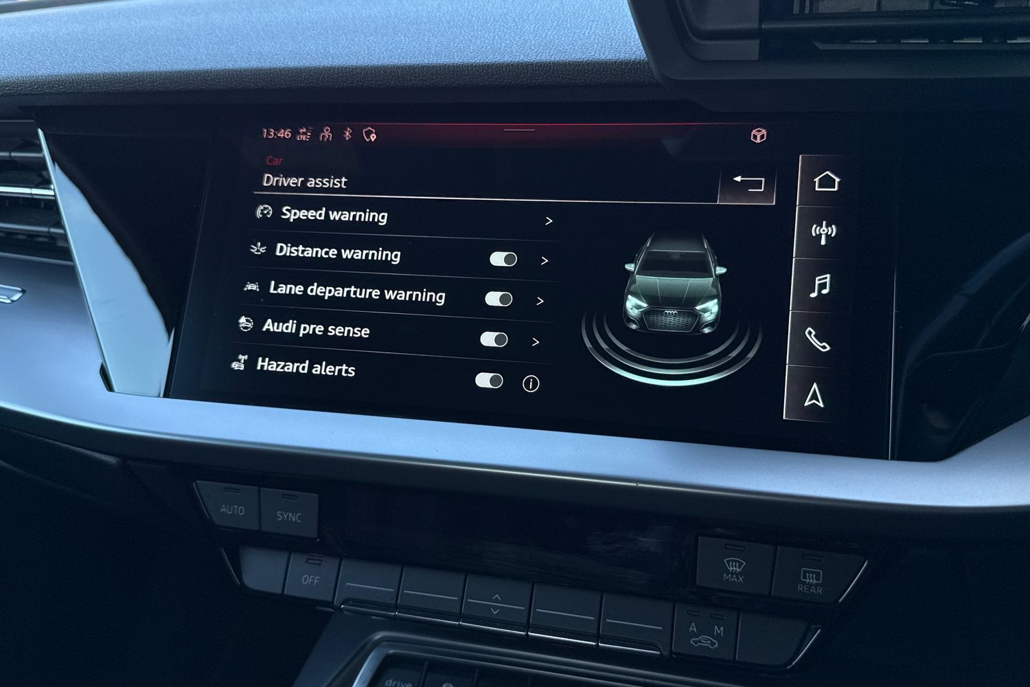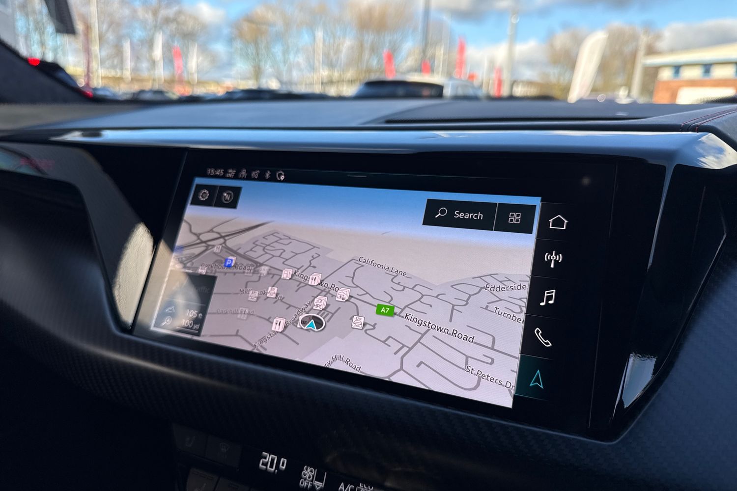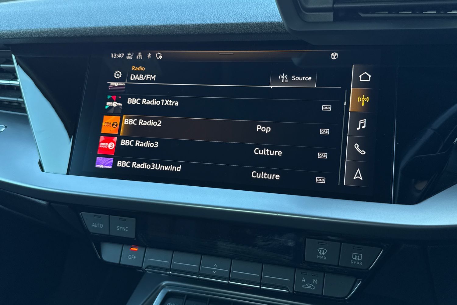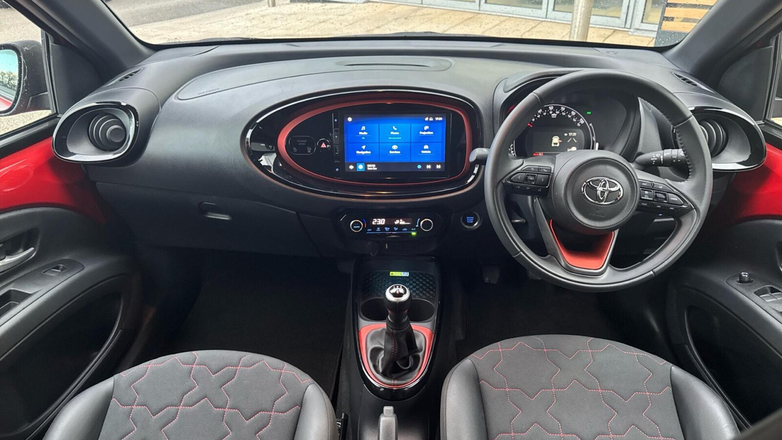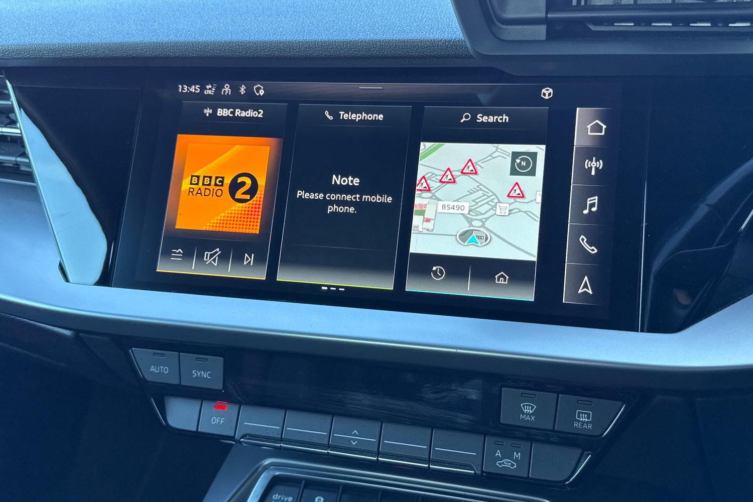 "Central facia display with digital clock, outside air temperature and audio information",
