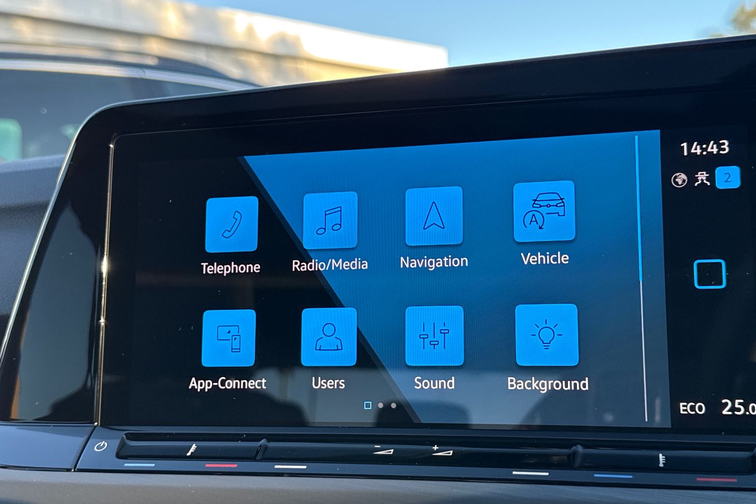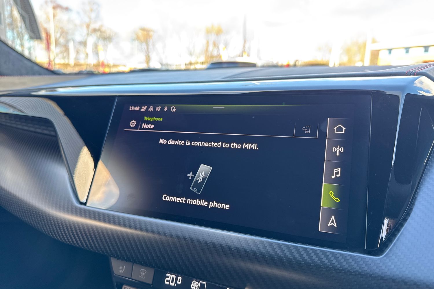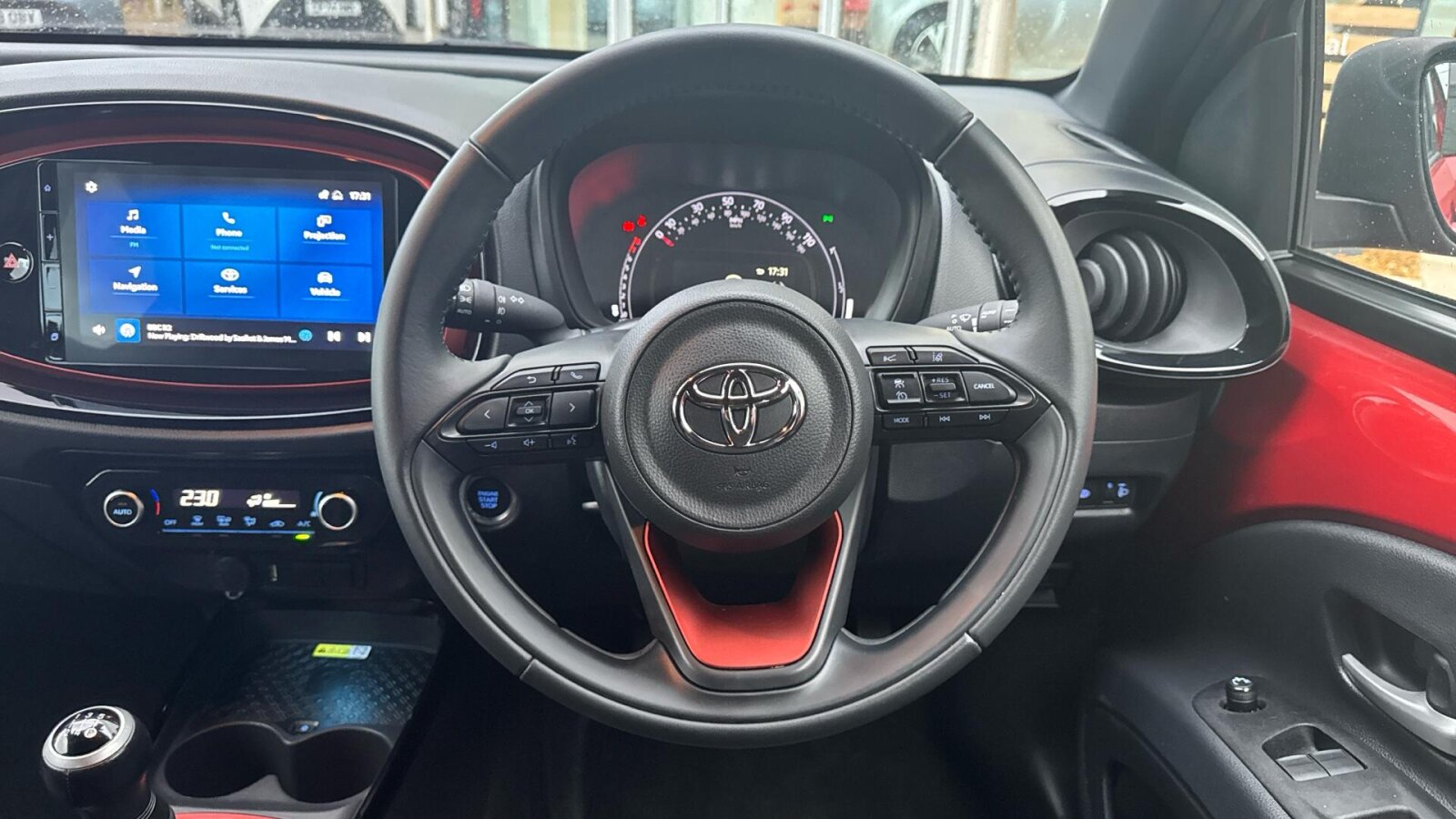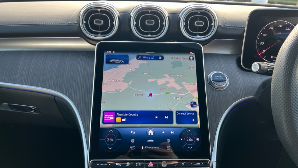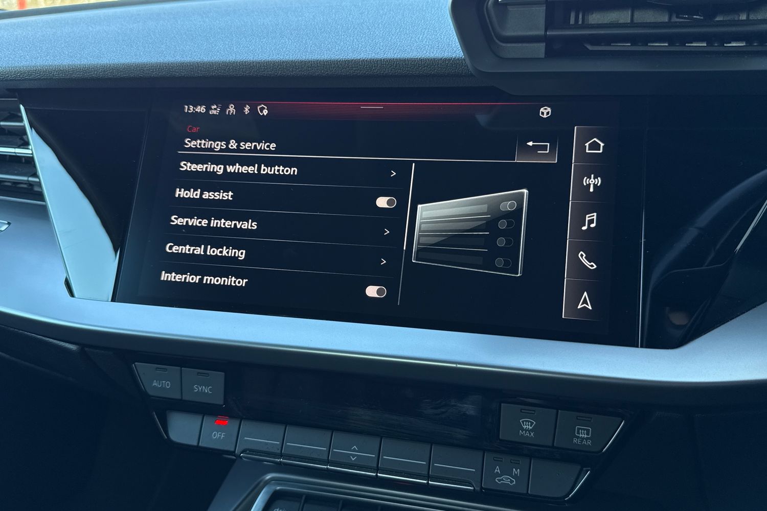 "Central facia display with digital clock, outside air temperature and audio information",