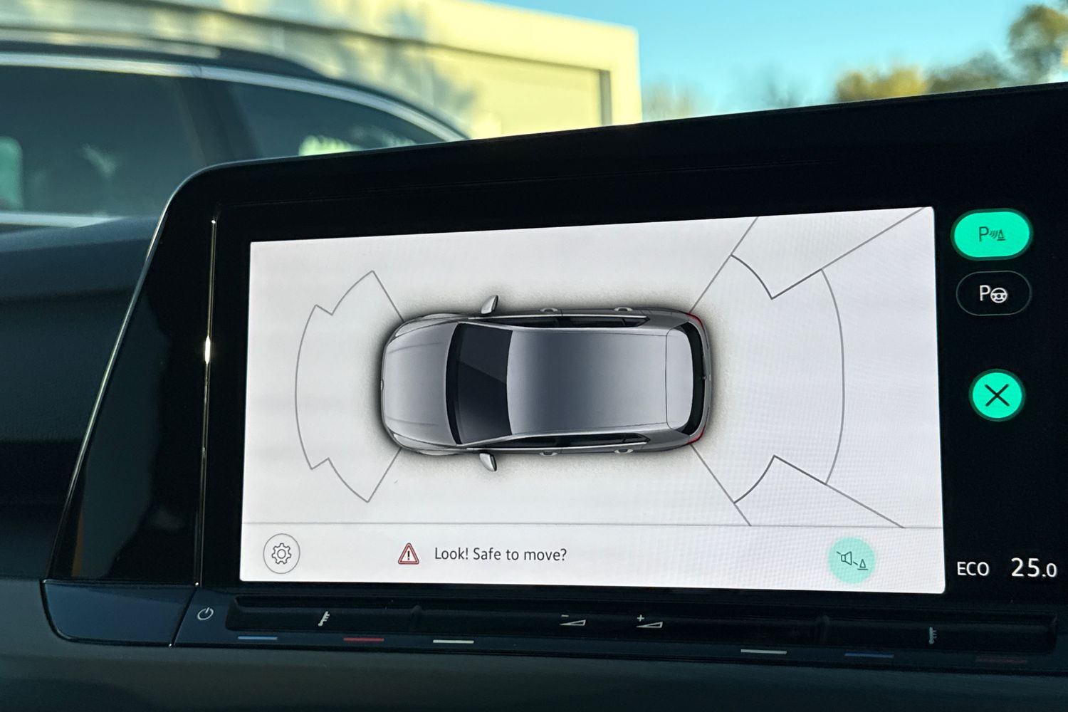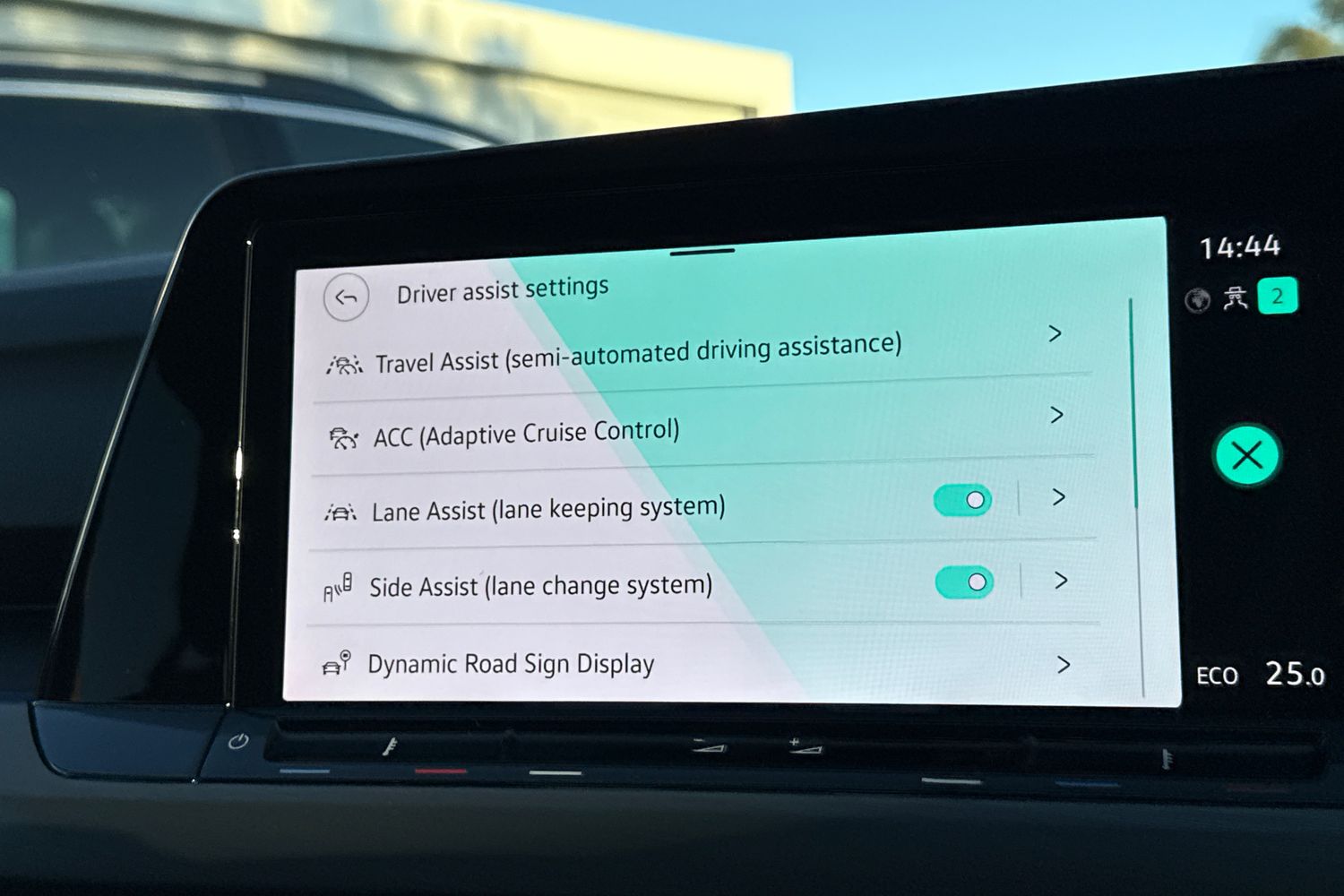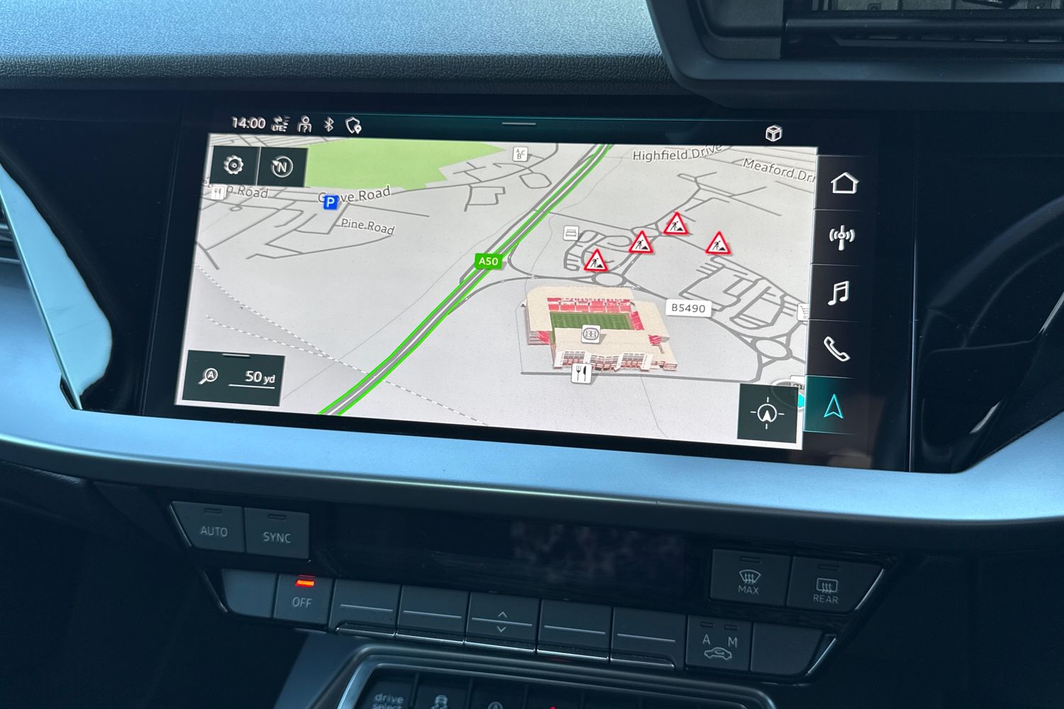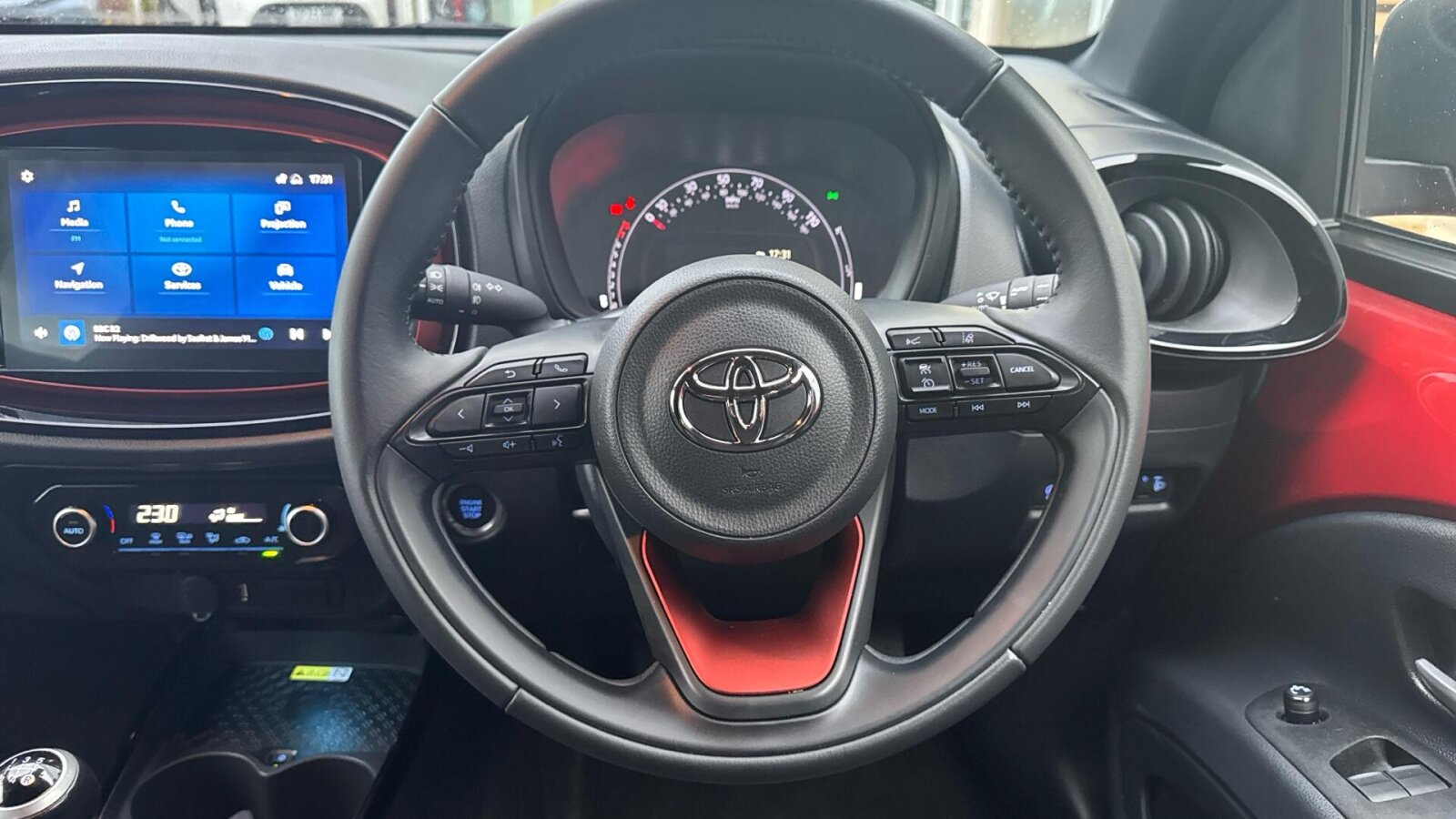 "Central facia display with digital clock, outside air temperature and audio information",