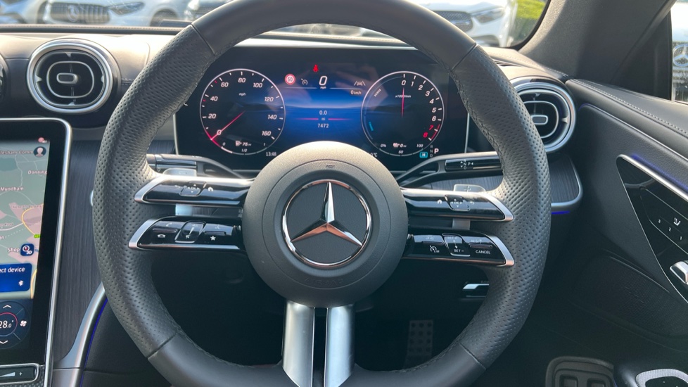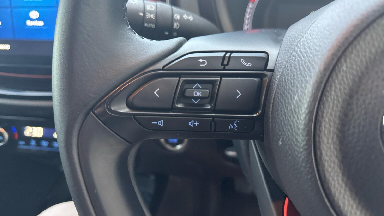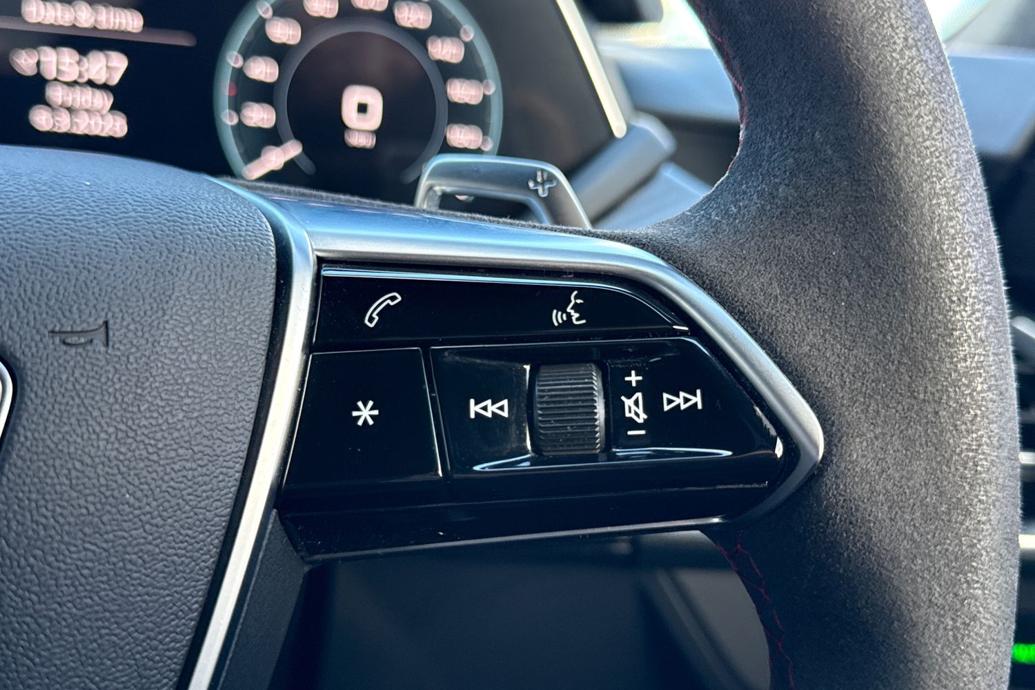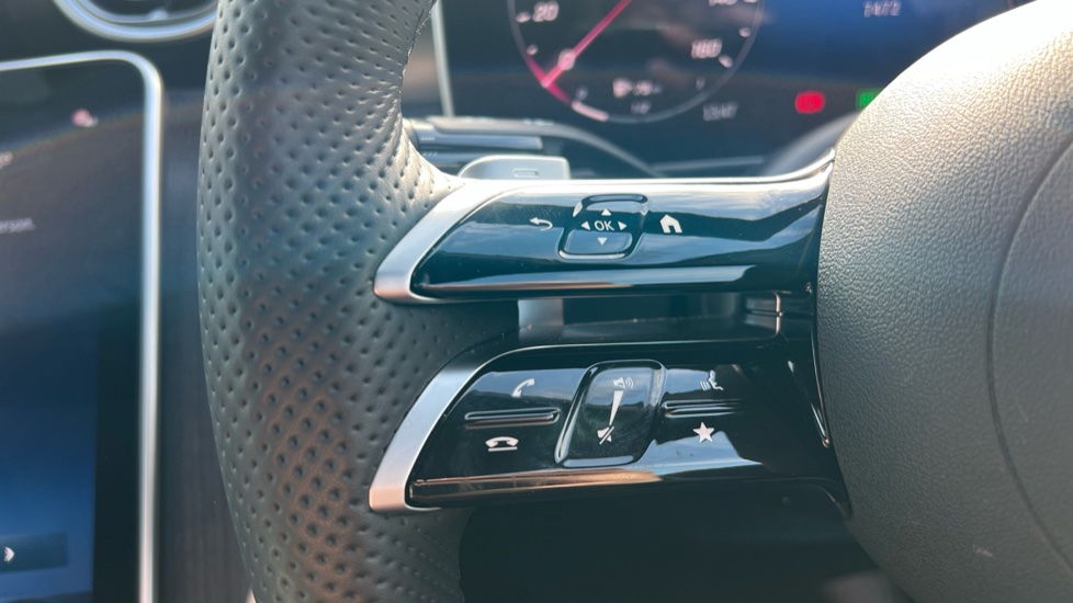 "Satin chrome effect bezel on steering wheel",