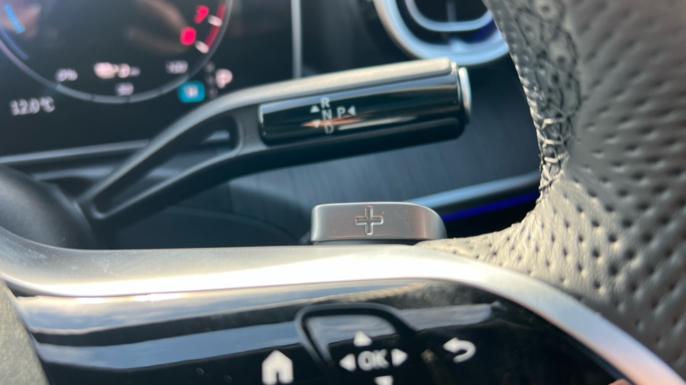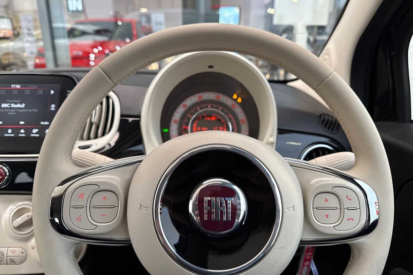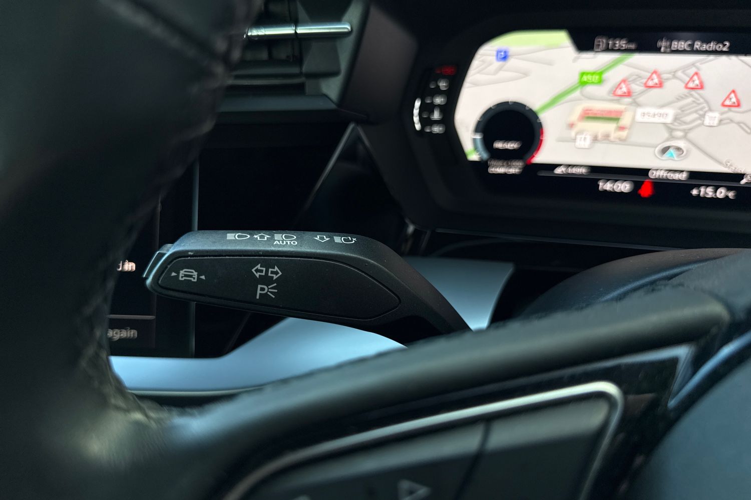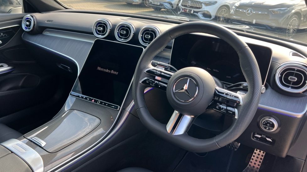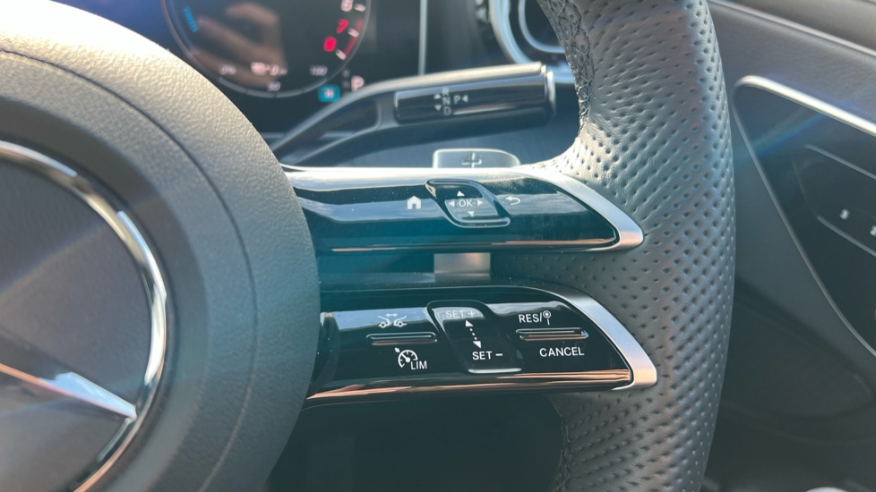 "Satin chrome effect bezel on steering wheel",
