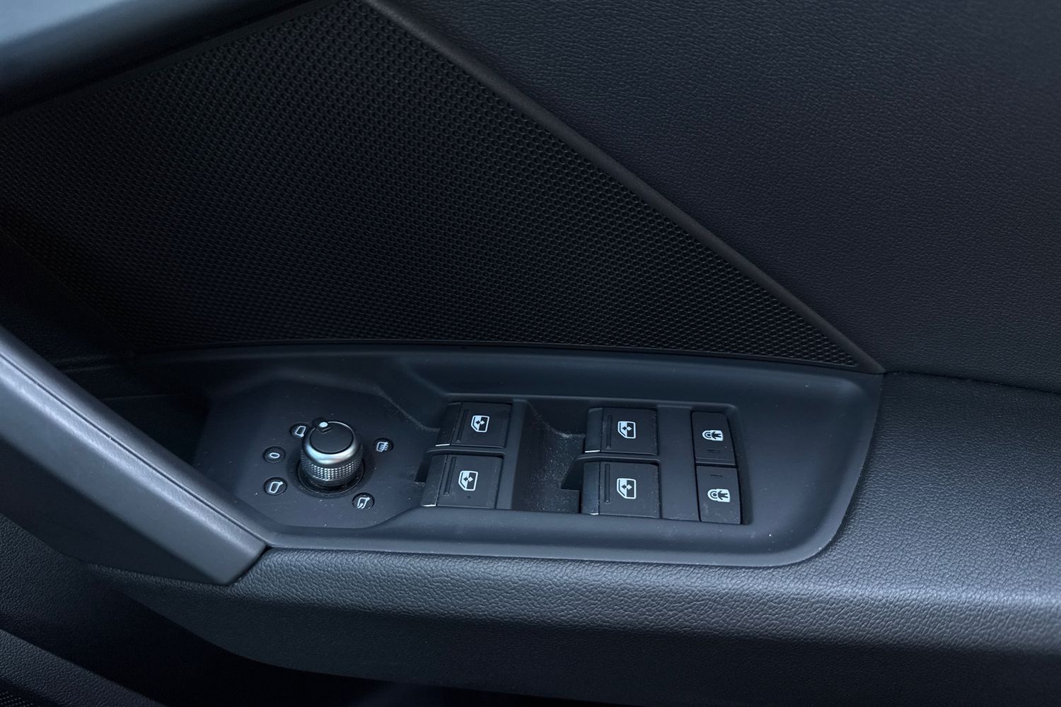 "Black door panels with black atlantis cloth inserts",