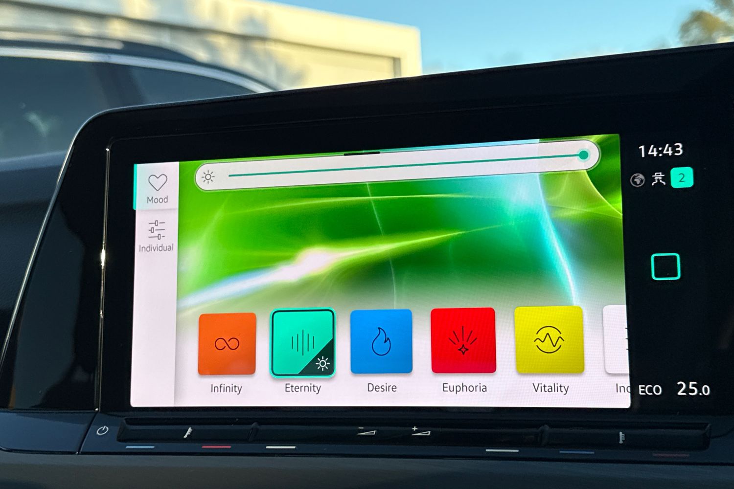 "Ambient LED downlighter in facia/centre console",