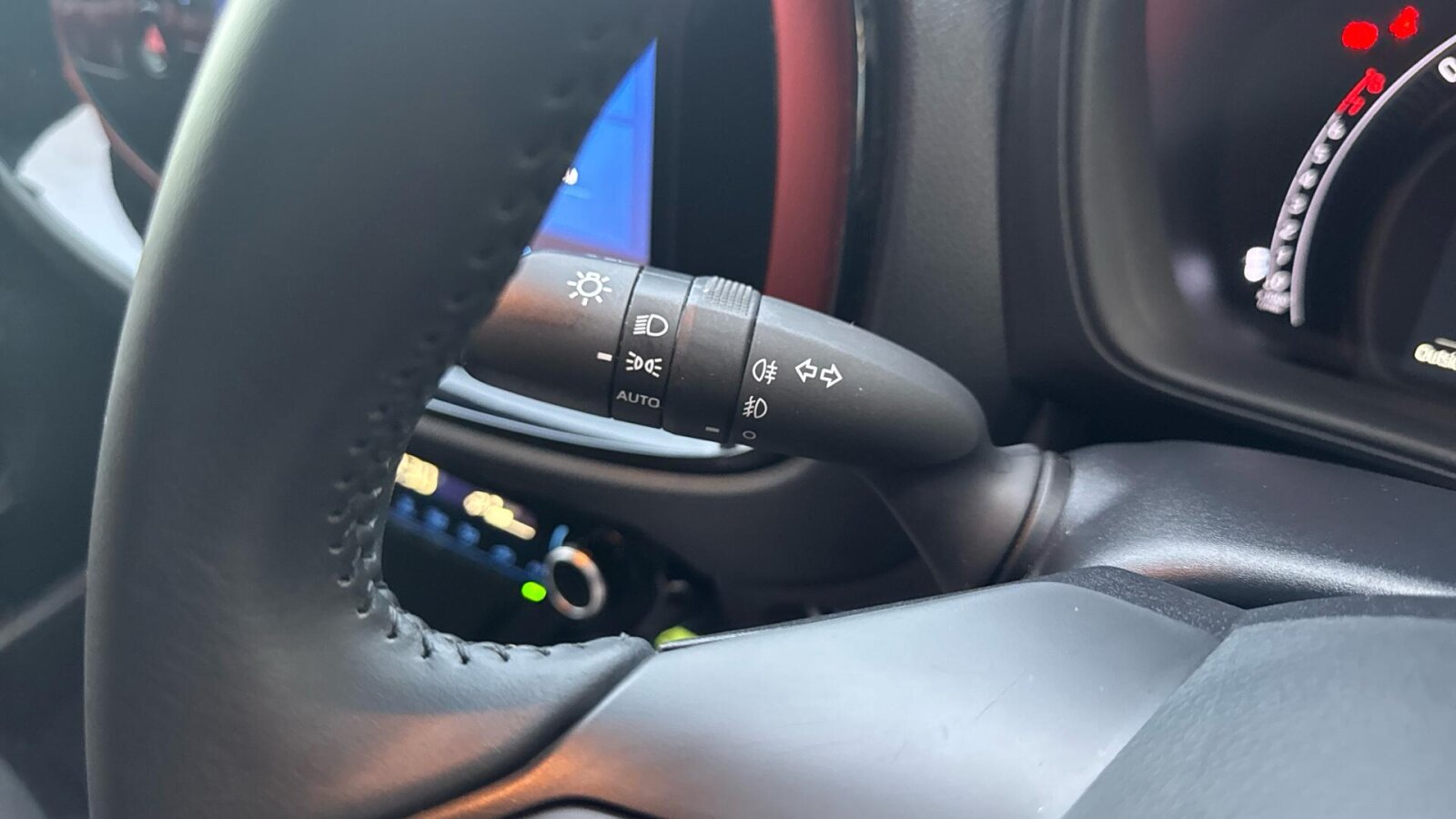 "3 spoke leather covered steering wheel with accent stitching",