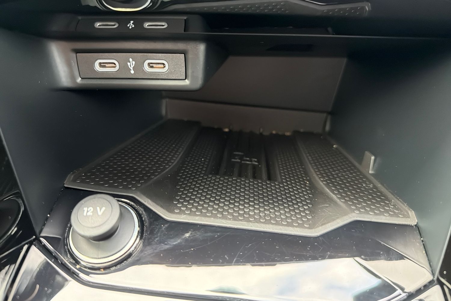 "12V outlet in front and tray",