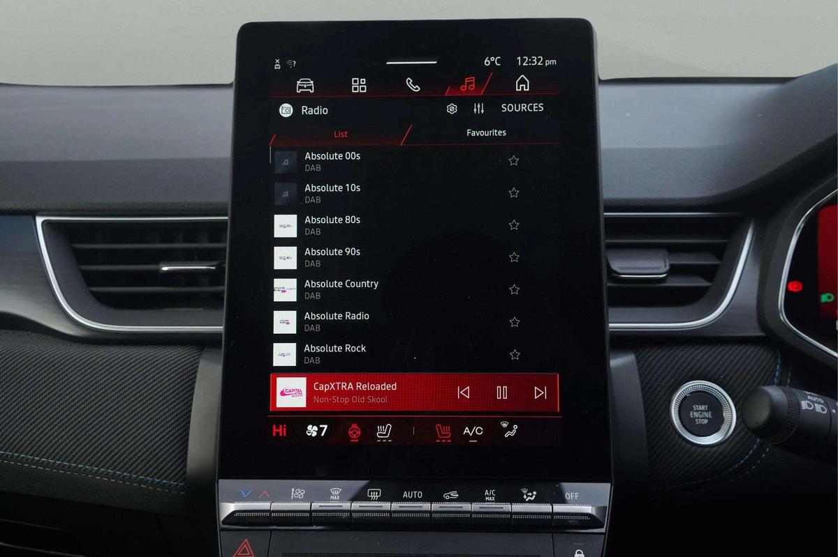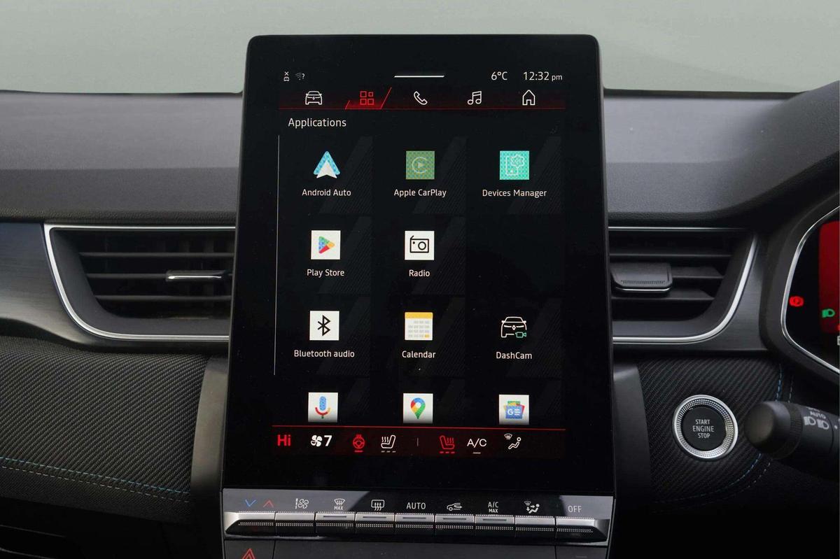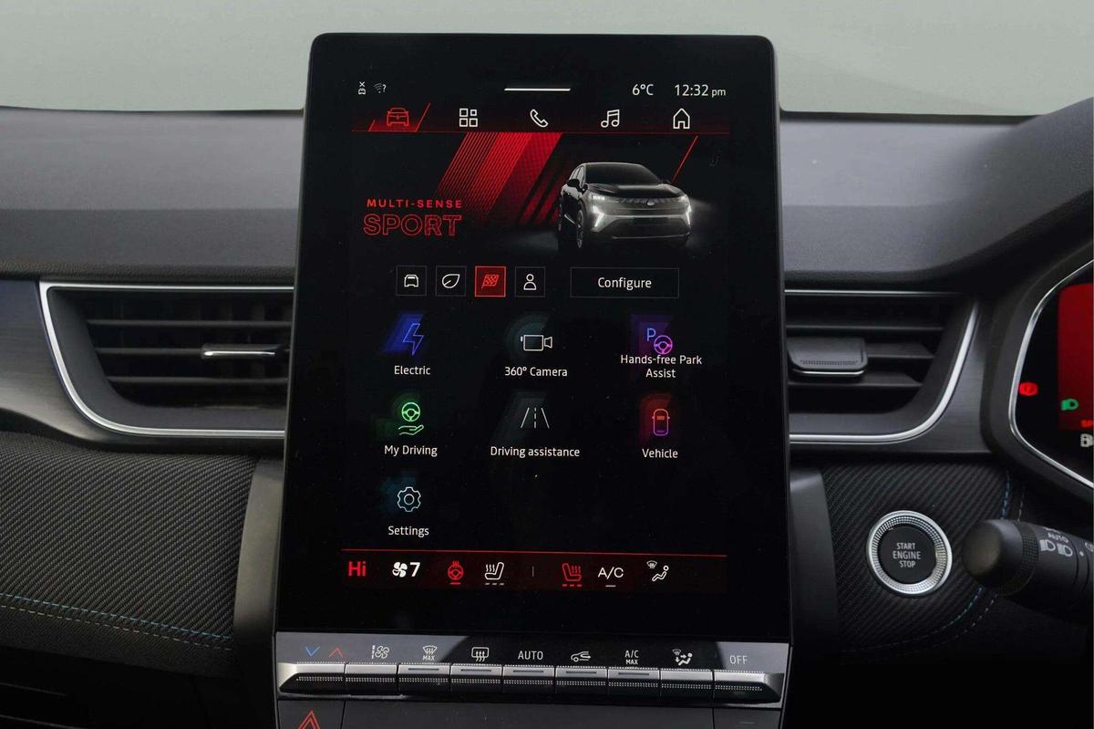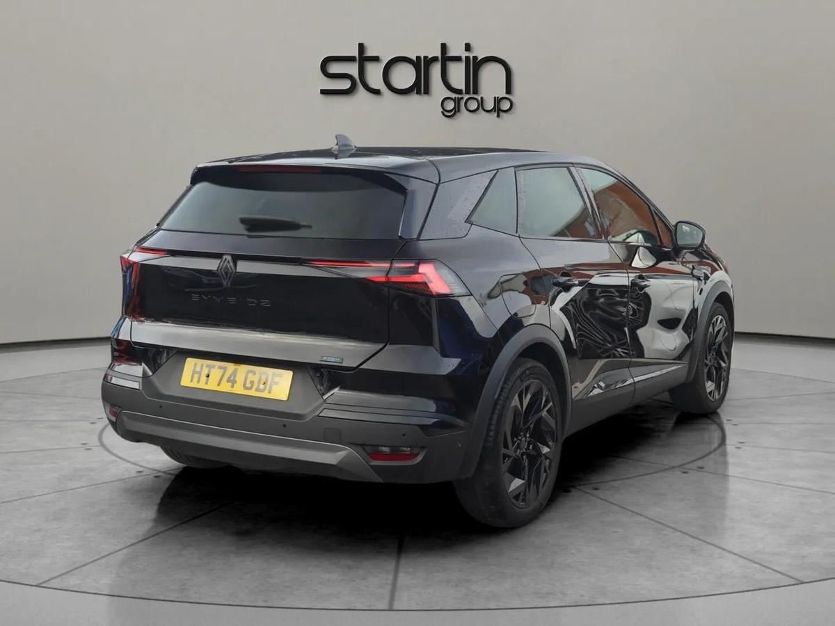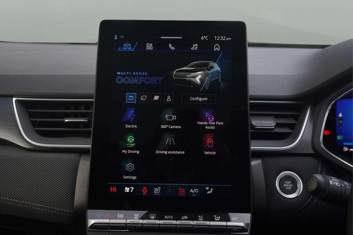 "features": "10.25\" digital driver display, 10.4\" OpenR link touchscreen with with built in Google Automotive Services,9-speaker premium Harman Kardon audio system and navigation, 360 around view 3D camera, Adaptive cruise control with speed limiter, Blind spot warning and rear detection, Driver attention alert system, Eco mode driving function, Front, rear and side parking sensors, Front/rear detection with emergency lane keep assist incl. solid line, oncoming traffic and road edge detection, Gear change indicator, Hands free parking, Lane centering assist, Multi Sense - 3 driving modes and up to 48 ambient lighting colours, My safety switch - ability to personalise ADAS features at press of a button, PAS, Power hands-free tailgate opening, Rear cross traffic/pedestrian alert with rear braking assitance, Renault automatic emergency assist, Traffic sign recognition with overspeed prevention, Trip computer, Wifi smartphone integration compatible with Apple CarPlay and Android Auto, Wireless phone charger, 2 front and 2 rear USB-C ports, DAB radio with Bluetooth, Automatic headlights, Automatic high / low beam, Automatic windscreen wipers with rain sensor, Dark tinted rear windows and tailgate, Electric adjustable/heated/auto folding door mirrors, Esprit alpine exterior styling, Frameless auto dimming rear view mirror, Front and rear electric windows with driver window one touch facility and anti pitch function, Front matte grey and rear skid plates, Full LED front and rear lights, Gloss black window surround, Heated rear window, LED daytime running lights, LED rear fog lights, LED third brake light, Radiator grille with 3D graphics in black upper part with grey graphics and body tone lower part, Rear side wing doors, Rear wiper, Shark fin antenna, Solarbay opacifying panoramic sunroof, 2 front roof LED lights and central rear rooflight with 3 reading LED lights, 3 seat bench in 2nd row, Aluminium sports pedals, Automatic air conditioning with one touch quick demist function and air quality regulator, Driver and front passenger seat with electric height adjustment, Esprit alpine interior styling, Flying console with central storage, sliding armrest and 2 rear air vents, Front and rear head restraints, Heated front seats, Heated synthetic leather steering wheel, Height and depth adjustable steering wheel, ISOFIX child seat fixing points on rear outermost seats, Modular boot floor, Rear seats - 1/3:2/3 foldable sliding bench, Recycled fabric upholstery, Single front passenger seat, Sunvisor with mirror and light, 3x3 point rear seatbelts, Abs with emergency brake assist, Active emergency braking system - Urban and pedestrian/cyclist, Distance warning alert, Driver and front passenger and 3 rear passengers seatbelt reminder, Driver and front passenger, side, head and curtain airbags, Driver height adjustable seat belt, Electronic parking brake with auto hold function, Front passenger airbag deactivation, Hill start assist, Occupant safe exit, Rear window and door child locking function, Tyre pressure warning light, Central door locking, Hands free keycard with Keyless access and start, Brushed blue decorative upper strip, Lower textile strip on dashboard with red, white and blue flag, 19\" Esprit alpine elixir alloys wheels, ",