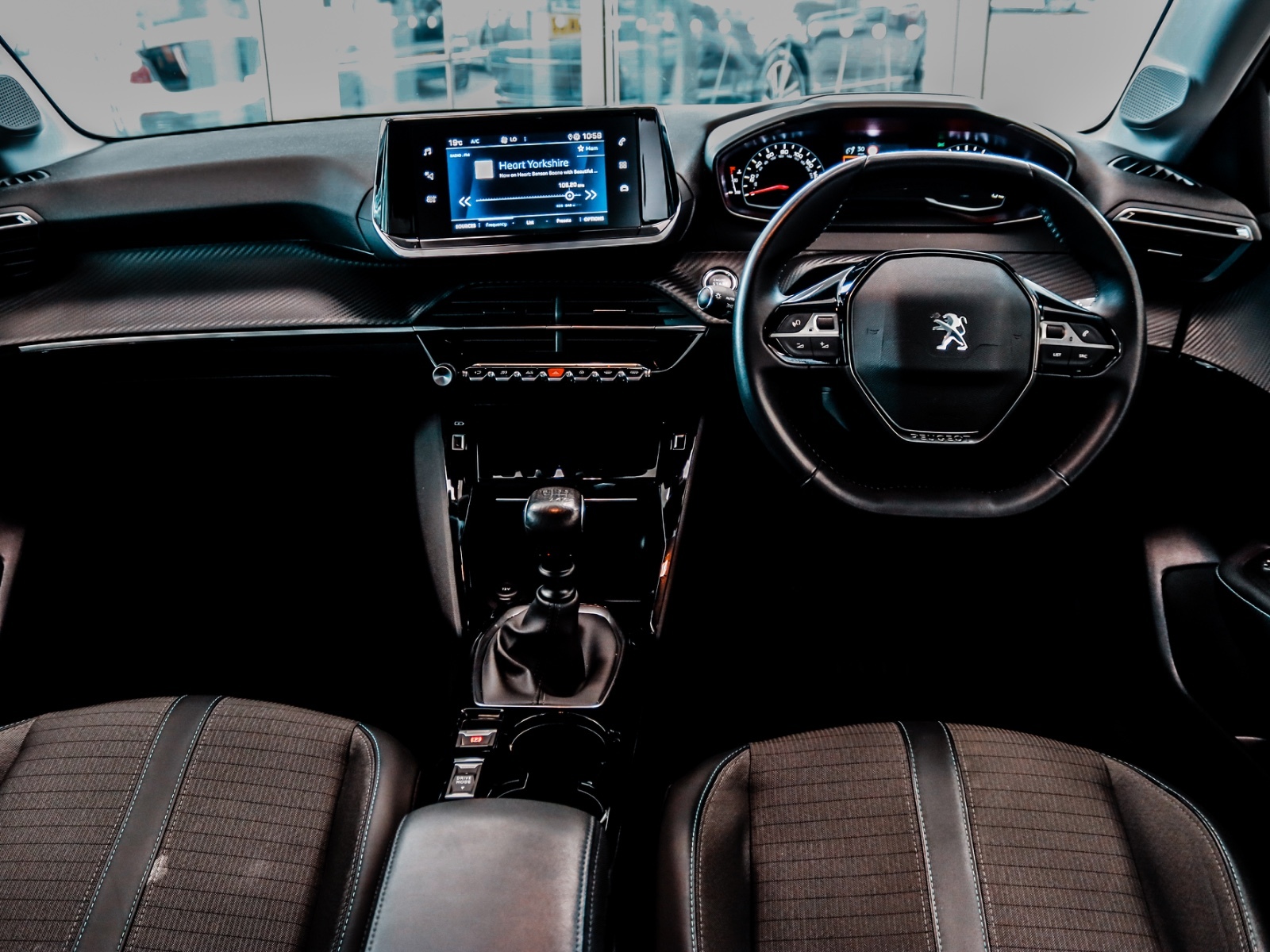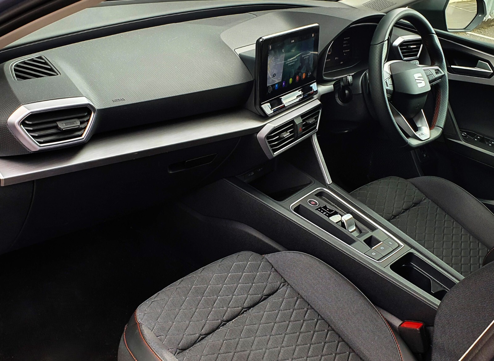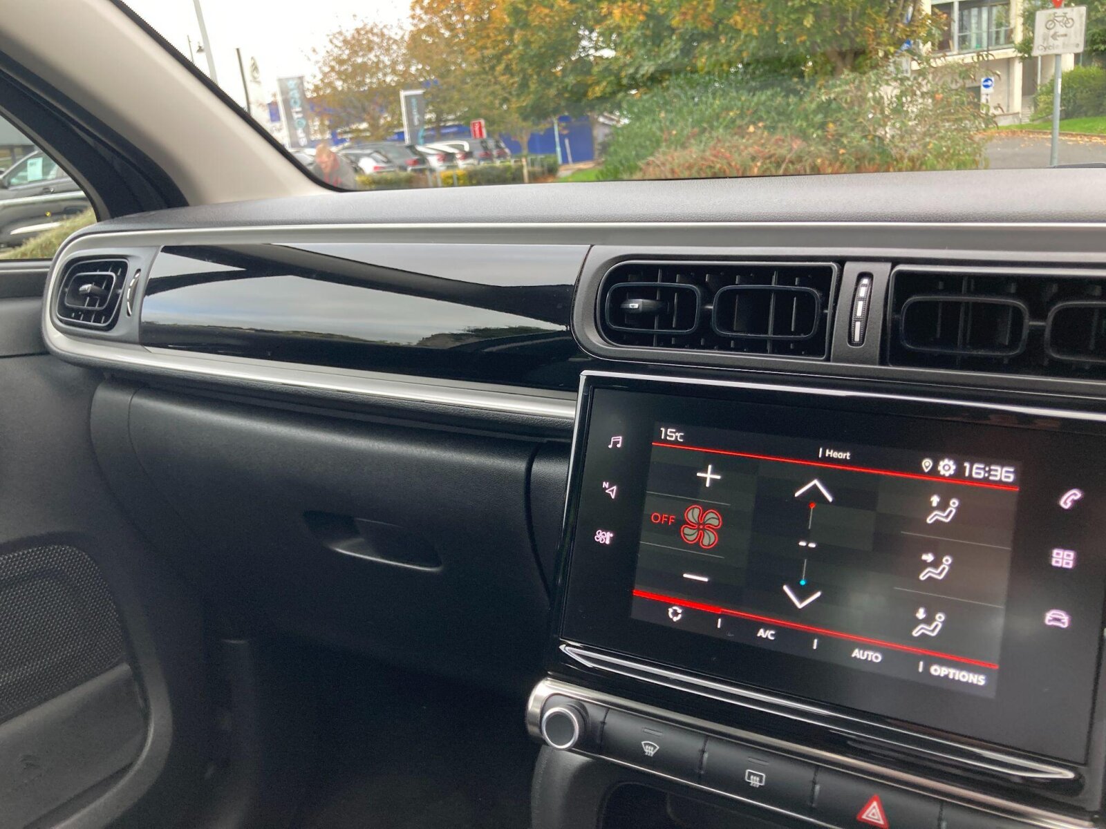 "Gloss black dashboard finish with grey surround"