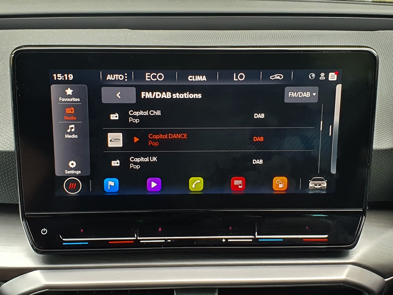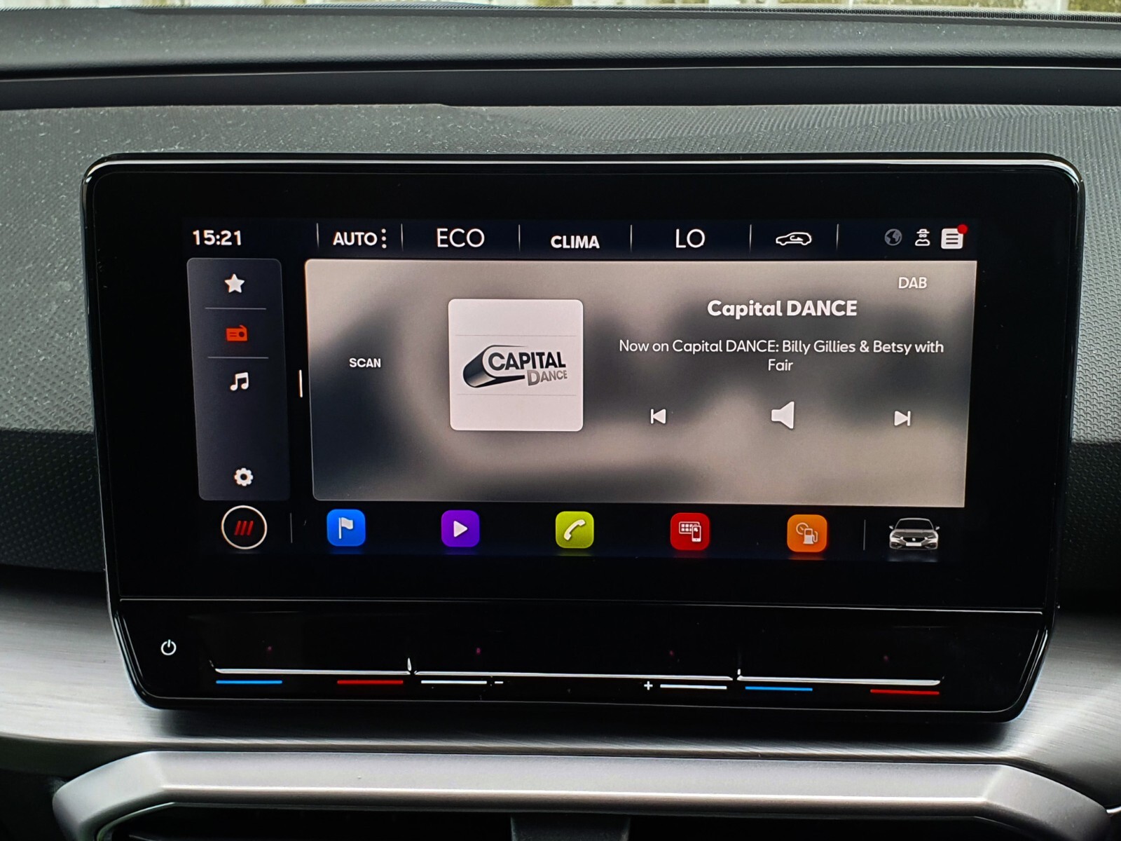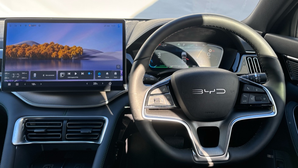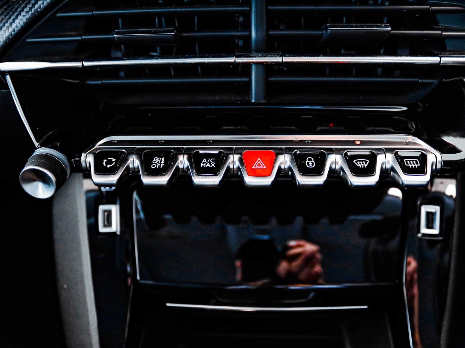 "Gloss black dashboard finish with grey surround"