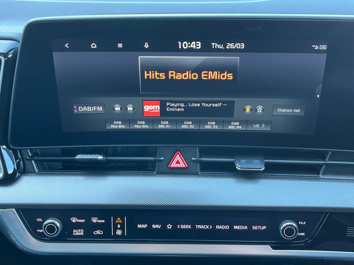 "features": "12.3\" Driver display screen, 12.3\" Touchscreen navigation system, Apple car play/Android Auto, Cruise control + speed limiter, Drive mode selector, Driver attention warning, E-call, Emergency stop signalling system, Forward collision avoidance assist (FCA) - city/pedestrian/cyclist/junction covering, Front and rear parking sensors, Intelligent speed limit assist, Kia Connect (UVO), Lane Following Assist (LFA), Lane keep assist, Low washer fluid warning, Motor driven power steering, Rear view monitor, Reversing camera system integrated into centre fascia screen, Tailgate, Trip computer, Windscreen washer level indicator, 1x USB-C port in front, 2 rear USB-C ports, 6 speaker audio system, Bluetooth audio streaming, DAB Radio with MP3, Steering wheel mounted audio controls, USB C type charging ports on centre console, USB port for connection of a media device, All round electric windows with drivers and front passenger auto up/down function, Auto dimming rear view mirror, Automatic headlight control system, Automatic window defogger, Black bumpers with silver accents, Black radiator grille with silver surround, Black side sill and wheel arch body mouldings, Body colour door mirrors, Body colour exterior door handles, Electrically adjustable/heated/folding door mirrors with LED indicators, Heated rear window, High beam assist, Interior electrochromic mirror, LED daytime running lights, LED front fog lamps, LED headlamps (low and high beam - MFR type), LED High mounted stop light, LED rear combination lamp, Rain sensing wipers with aero blades, Rear fog lamp, Rear privacy glass, Rear side wing doors, Rear spoiler, Rear wiper, Satin finished beltline, Silver front and rear skid plate, Silver roof rack, Silver window surround, Tinted rear glass, Trailer stability assist, 12V power socket in front centre fascia and luggage compartment, 2nd row personal lamps, 3 seat bench in 2nd row, 3 x passenger assist grips, 40/20/40 split folding rear seat, All-round height adjustable headrests, Automatic air conditioning, Centre console storage box, Cloth/artificial leather upholstery, Cupholders in rear armrest, Door courtesy lamps, Drink holder at centre armrest, Driver and front passenger side sunvisors with illuminated vanity mirrors, Drivers seat power lumbar support, Electric height adjustable front seats, Front and rear door storage, Front cabin, rear & luggage compartment lights, Front seat and rear pockets, Gear shift indicator, Glovebox illumination, Heated front and outer rear seats, Heated steering wheel, ISOFIX Child seat top tethers and anchor fixings outer rear seats, Leather steering wheel, Luggage area load cover, Luggage area parcel shelf, Luggage board, Luggage compartment under floor storage, Luggage net with hooks, Manual adjust steering wheel, Metal paint interior door handles, Overhead console lamp, Rear air conditioning, Rear cabin light, Rear coat hooks, Single front passenger seat, Ventilation ducts to rear compartment, Active front headrests, All round 3-point seatbelts, Anti-lock braking system (ABS), Dual front side airbags, Dual horn, Dynamic brake control, Electronic parking brake with auto hold function, Electronic stability control with downhill brake control, Front passenger airbag cut-off switch, Front seatbelt pretensioners + load limiters, Height adjustable front seatbelts, Hill start assist control (HAC), Impact sensing auto door unlocking, Multi collision brake assist, Rear airbags, Rear door child safety locks, Rear seat alert system, Seatbelt reminder warning, Traction control, Twin curtain airbags, Twin front airbags, Tyre pressure monitoring system, Vehicle stability management, Customisable automatic door locking, Customisable automatic door unlocking, Door deadlocks, Engine Start/Stop Button with Smart Entry System, Locking wheel nuts, Smart key with motion sensor, Speed sensitive auto door locking, Thatcham category 2 security alarm and immobiliser, Visible vehicle identification number, Aluminium pattern finish centre fascia and door garnish, 18\" Alloy wheels, Tyre mobility kit, ",