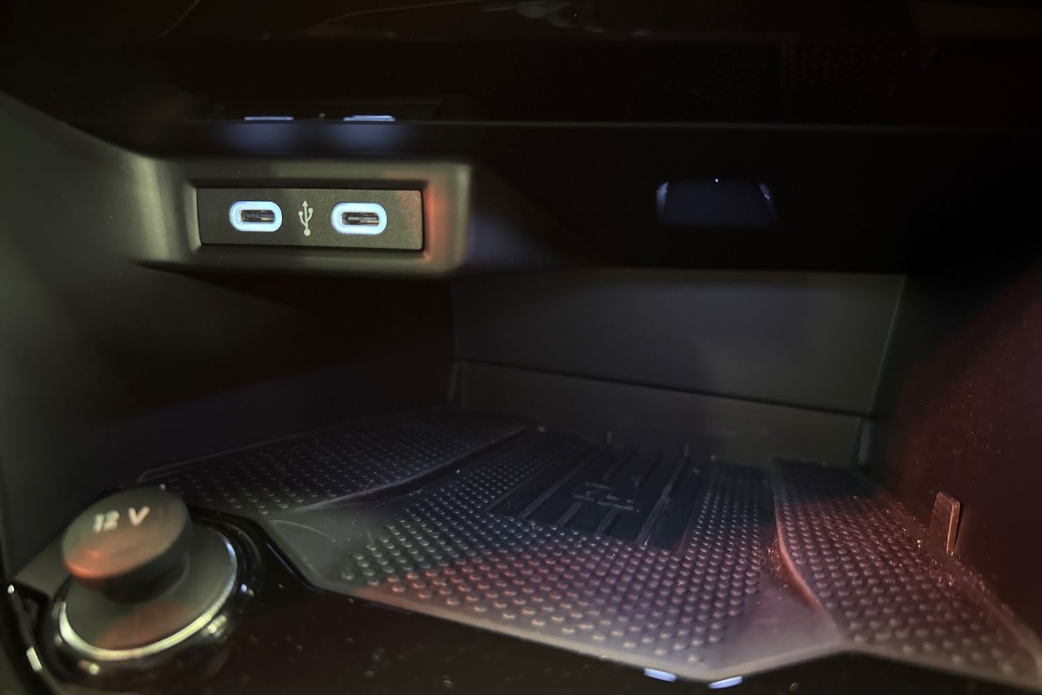 "Storage compartment in front centre console"