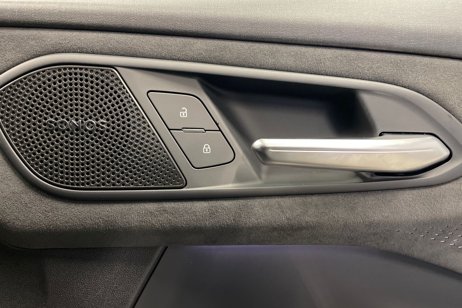 "Illuminated door sills with aluminium inserts at the front with S logo",