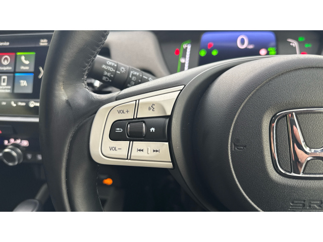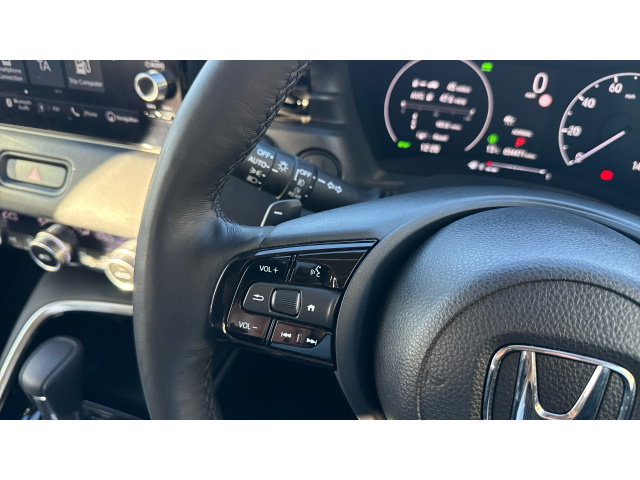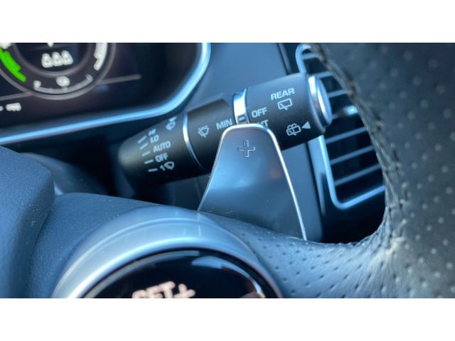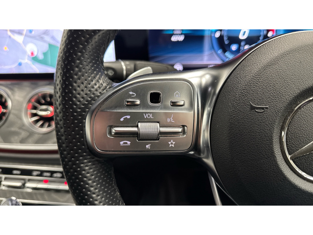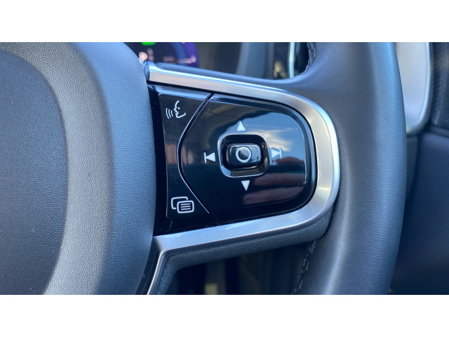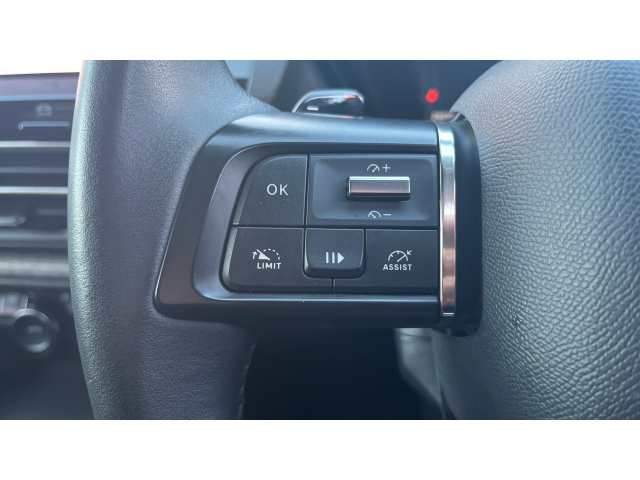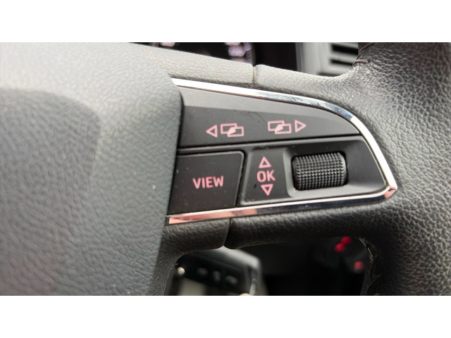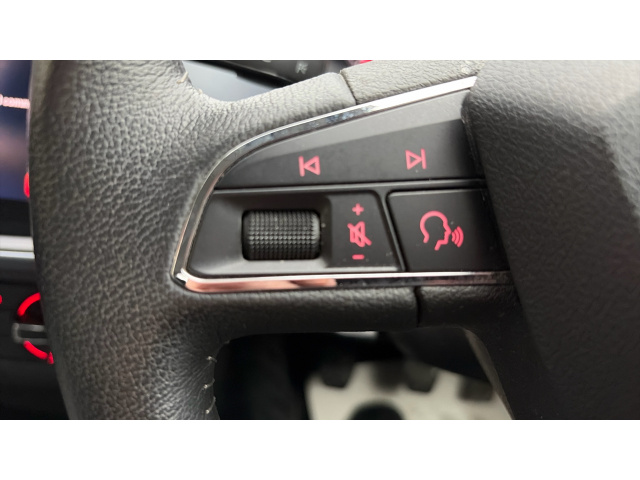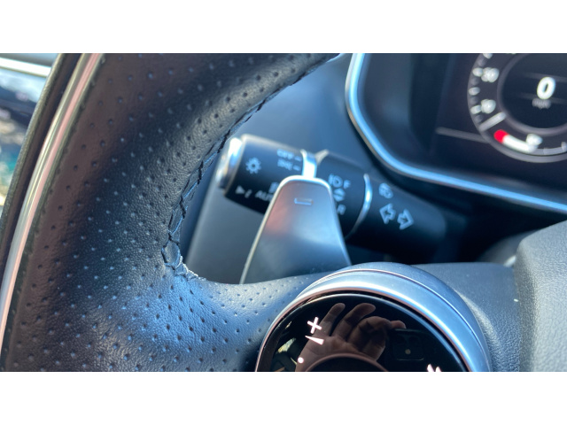 "Grained leather steering wheel with two command blocks",