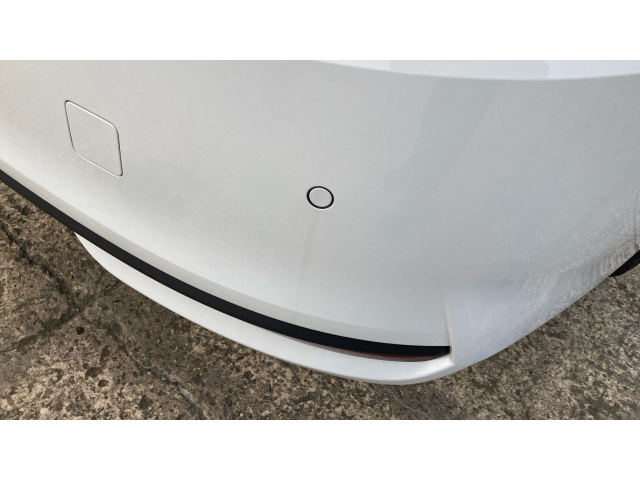 "Metallic blue rear bumper accent",