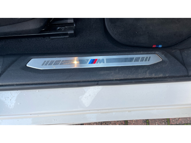 "Front door sill finishers in black plastic with BMW designation",