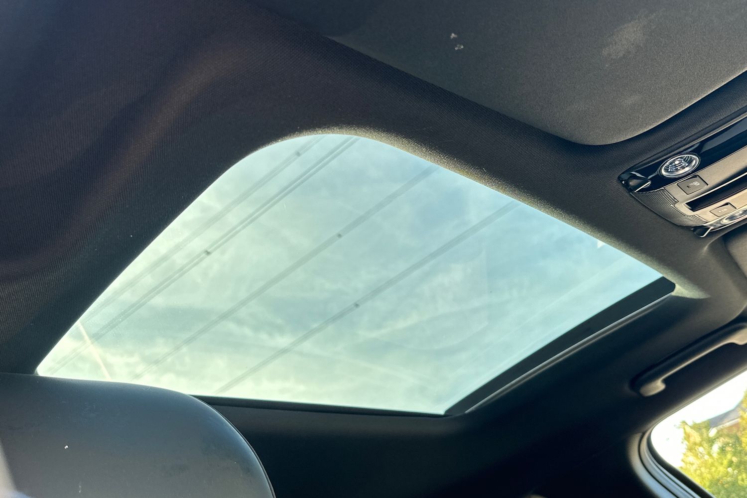 "Light grey roof lining",