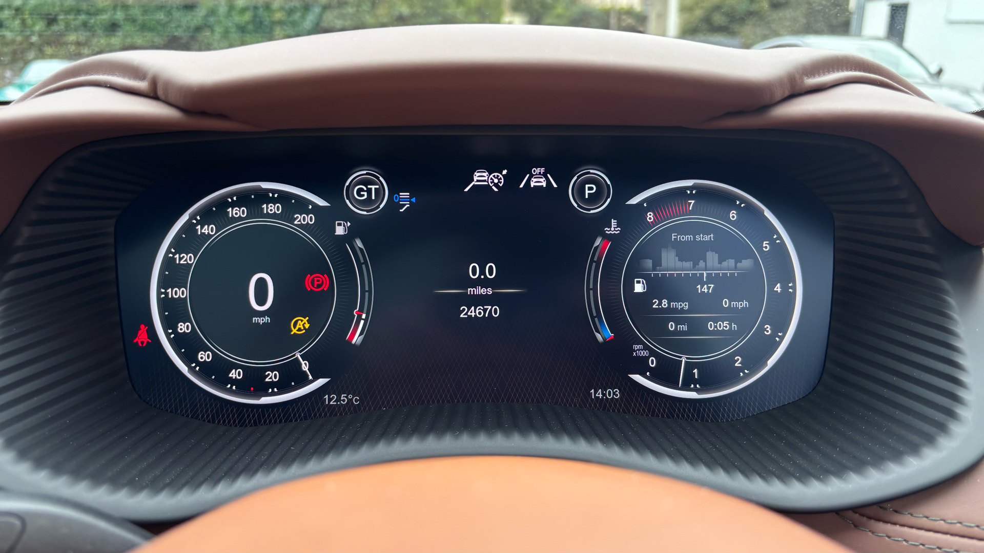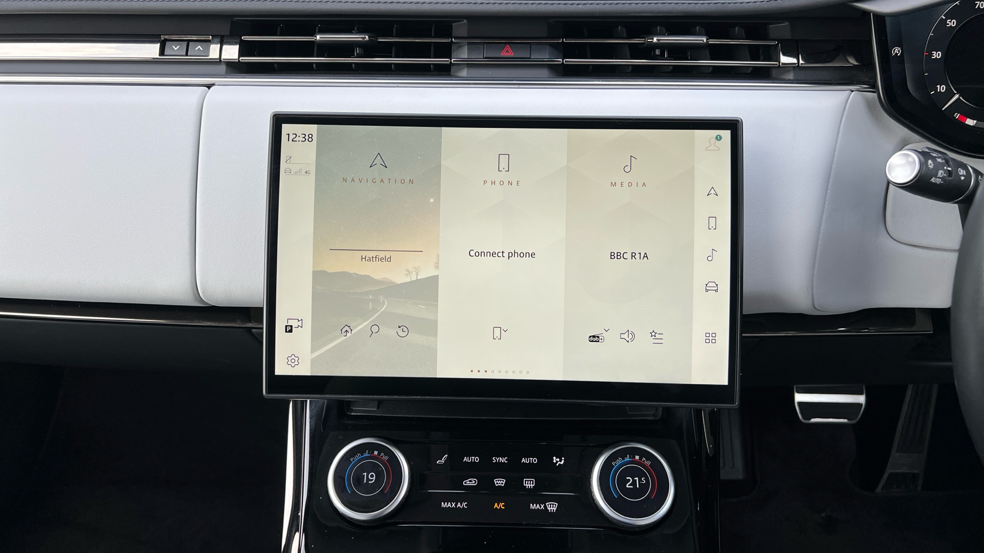 "Start up sequence with movement in dials and lighting",