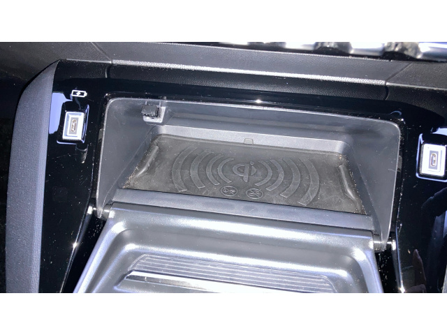 "Large open storage pocket behind infotainment screen",