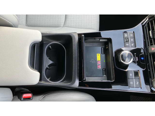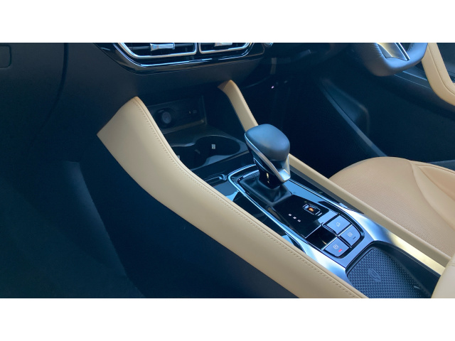 "Small open storage compartment behind gear knob",