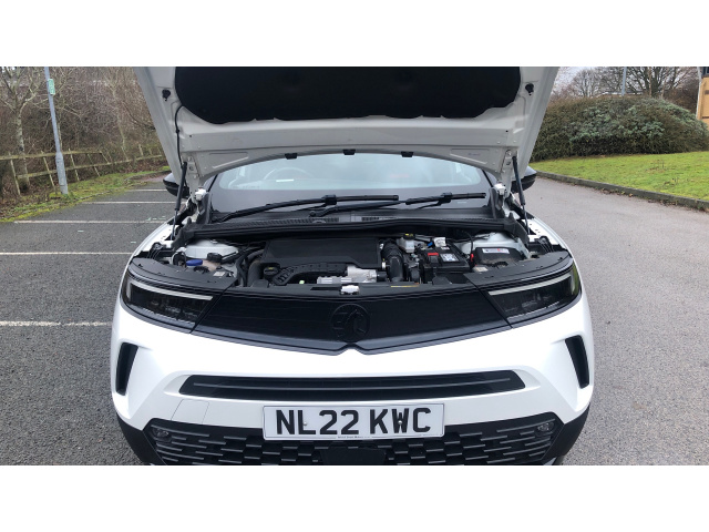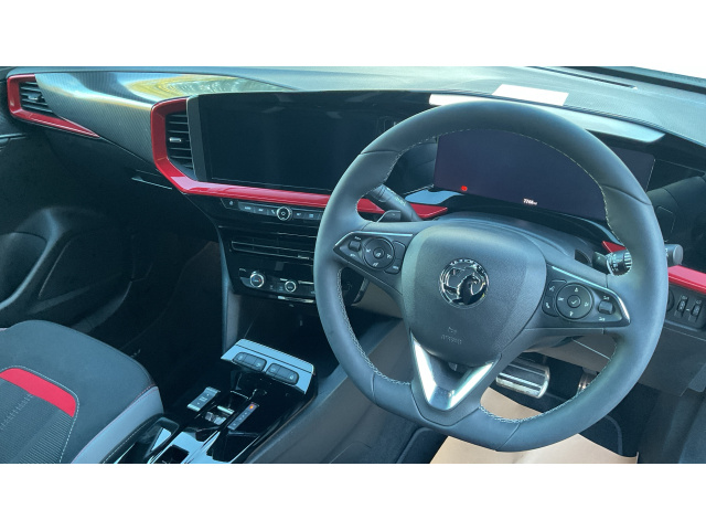 "features": "12\" digital instrument cluster, Cruise control with intelligent speed limiter, Digital instrumentation with digital speedometer, rev counter, fuel and water temperature gauge, Driver drowsiness alert system, Driver information display with multi function trip computer, audio info, digital clock and outside air temperature with ice warning function, Emergency services call system, EV information display, Extended traffic sign recognition, Front camera and radar system, Lane keep assist system (LAS) with Lane departure warning system (LDWS), Lights on audible warning, Panoramic rear view camera, Power assisted speed sensitive steering, RDS with traffic programme, Rear parking distance sensors, Smartphone integration compatible with Apple CarPlay and Android Auto, Sports switch with engine sound enhancement, Start/stop system, Vauxhall connect with e-Call, 8 speed automatic transmission, 6 speakers, AM/FM stereo radio with 36 station presets, DAB Digital radio, Flexible Roof Mounted Radio Aerial, Front USB connection, Mobile phone portal - bluetooth connect, vehicle microphone, handsfree calls, SMS read out and reply, phone book access, Multimedia Navi Pro with 10\" colour touchscreen, Steering wheel mounted controls, Two rear USB sockets, Adaptive brake lights, Automatic lighting control with tunnel detection, Automatically dimming anti dazzle rear view mirror, Black door mirror housings, Black front and rear bumper inserts, Black Griffin logo and vizor frame, Black skid plates, Body colour door handles, Body colour front and rear bumpers, Dark tinted rear side windows + tailgate window, Electrically adjustable and heated door mirrors, Electrically operated front and rear windows with safety auto reverse and one touch up/down facility, Hazard warning lights, Heated rear window+rear wash/wipe, High beam assist, Integrated black tailgate spoiler, LED 3rd brake light, LED daytime running lights, LED Headlights, LED side repeat indicators, LED tail lights, Manual headlamp level control, Rear foglight, Rear side wing doors, Reversing light, Solar heat absorbing windscreen and windows, Two speed rain-sensitive windscreen wipers with variable intermittent wipe, Windscreen and side window demist vents, 12V Accessory socket, 3 seat bench in 2nd row, 3 spoke flat bottomed leather effect steering wheel with satin chrome effect bezel, 4 speed fan with illuminated controls, 6 way manual adjustable driver fore/aft, up/down with reclining seatback, 6 way manual adjustable front passenger fore/aft, up/down with reclining seatback, 60/40 split folding rear seat, Air recirculation system, Alloy sports pedals, Black headliner, Cabin particulate filter - removes dust, airborne particles and pollen, Centre console with two cup holders at front and one in rear, Chrome effect interior door handles, Door pockets with two litre capacity, Driver and passenger sun visors with vanity mirror, Electronic climate control (ECC), Fabric/Leather effect upholstery, Four adjustable facia vents, Four load restraint lashing eyes, Front centre armrest with storage, Front head restraints, Front map reading lights, Front seat back storage pockets, Fully carpeted load area, Heated front seats, Heated steering wheel, Interior courtesy light, Interior tailgate handle, Luggage compartment cover, Luggage compartment lighting, Reach + rake adjustable steering column, Single front passenger seat, Steering wheel mounted paddle shift, Three height adjustable rear seat head restraints, Twin gas assisted tailgate struts, 2x Isofix child seat fitting on outer rear seats, 3x3 point rear seat belts, Anti-lock braking system (ABS), Child proof locks on rear doors, Cornering brake control, Deactivation switch for front passenger front and side impact airbags, Drag torque control, Driver and front passenger airbags, front seat side impact airbags, full size curtain airbags, Electronic brake force distribution, Electronic Stability Programme (ESP), Emergency brake assist, Enhanced automatic emergency braking with pedestrian detection, Forward collision alert at low speed, Hill start assist, Inertia reel lap and diagonal seatbelts for all seats, Seatbelt unfastened audible warning and warning light, Straight line stability control, Traction control, Tyre pressure monitoring system, Electronically protected audio equipment, Engine deadlock immobiliser, Freewheeling door locks, Key left in ignition audible warning, Locking wheel nuts, Remote control central locking, Remote control ultrasonic security alarm system, Visible vehicle identification number, Atlantis black trim inserts of front doors, Black facia with red trim insert, Instrument panel bar in Light Gravel, Light grey trim inserts on front doors, ",